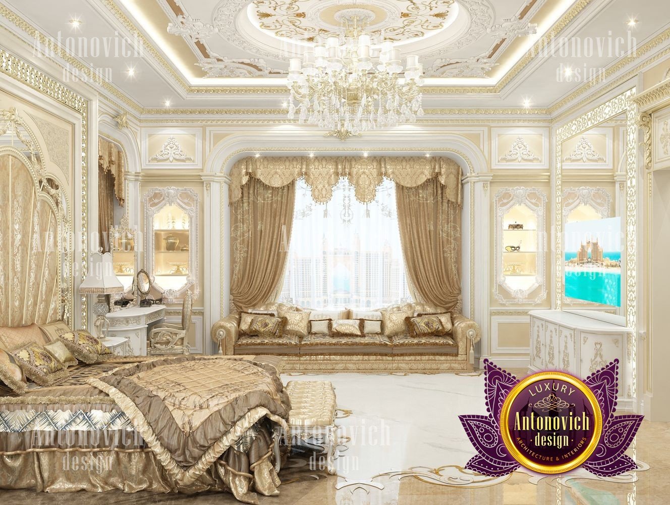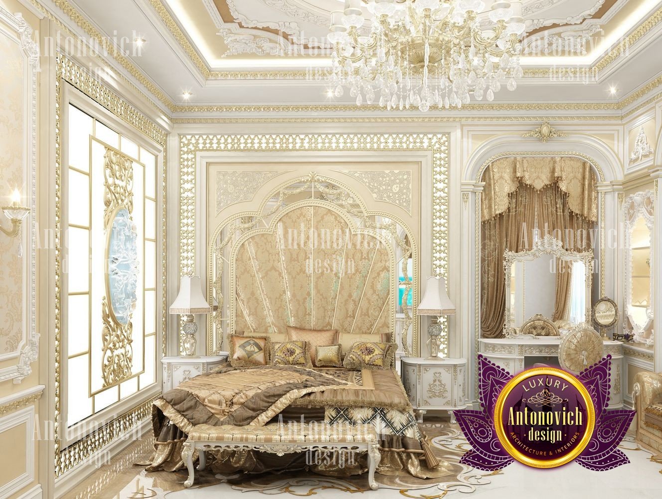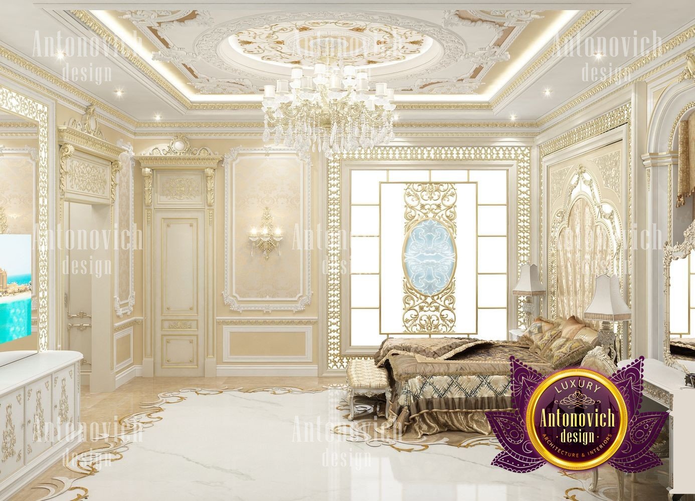 Luxury Antonovich Design always believes that every creative and successful Design of a Bedroom always depend and begins with the very proper developments of the floor plans and systematically organizing all important details and materials to be implemented. With the help of our very professional Architects and designers, the entire team has been accomplished another successful work of art and we are very proud to present this luxurious Classic Bedroom design. Let us start from the Ceiling Design, as we have carefully studied and considered all the important points of the Ceiling scheme, we have come up with the idea to install a very magnificent Chandelier, Combination of Crystals and Metallic gild material, we have creatively designed it with a golden linings and creative ceiling carvings. Wall schemes was indeed very unique that aside from continuing the very detailed design matches with the ceiling, we have created a one of a kind glass decoration with back lightings. The Luxurious bed was the main centre of the attraction of this Bedroom, aside from the correct high and size of it it has been completed with premium class fabrics and materials. We have made up a very creative flooring design with the neutral colour associated with golden details in every edge of the floor. Across the bed is a very wonderful mirror TV which adds up the entertainment on this bedroom. A magnificent couch has been well presented towards the window with a very nice matte gold design fabrics. We have managed to exert an effort to provide a walk-in closet inside this luxurious bedroom. All the Cabinet design has been well associated with the luxurious Classic style of the entire bedroom. From the best creation of the Bedroom Floor plan, This Classic Bedroom Design is another masterpiece that something to be proud of to present by Luxury Antonovich Design as we have accomplished the very successful and Luxurious result that end up to achieve the highest satisfaction from the Client.