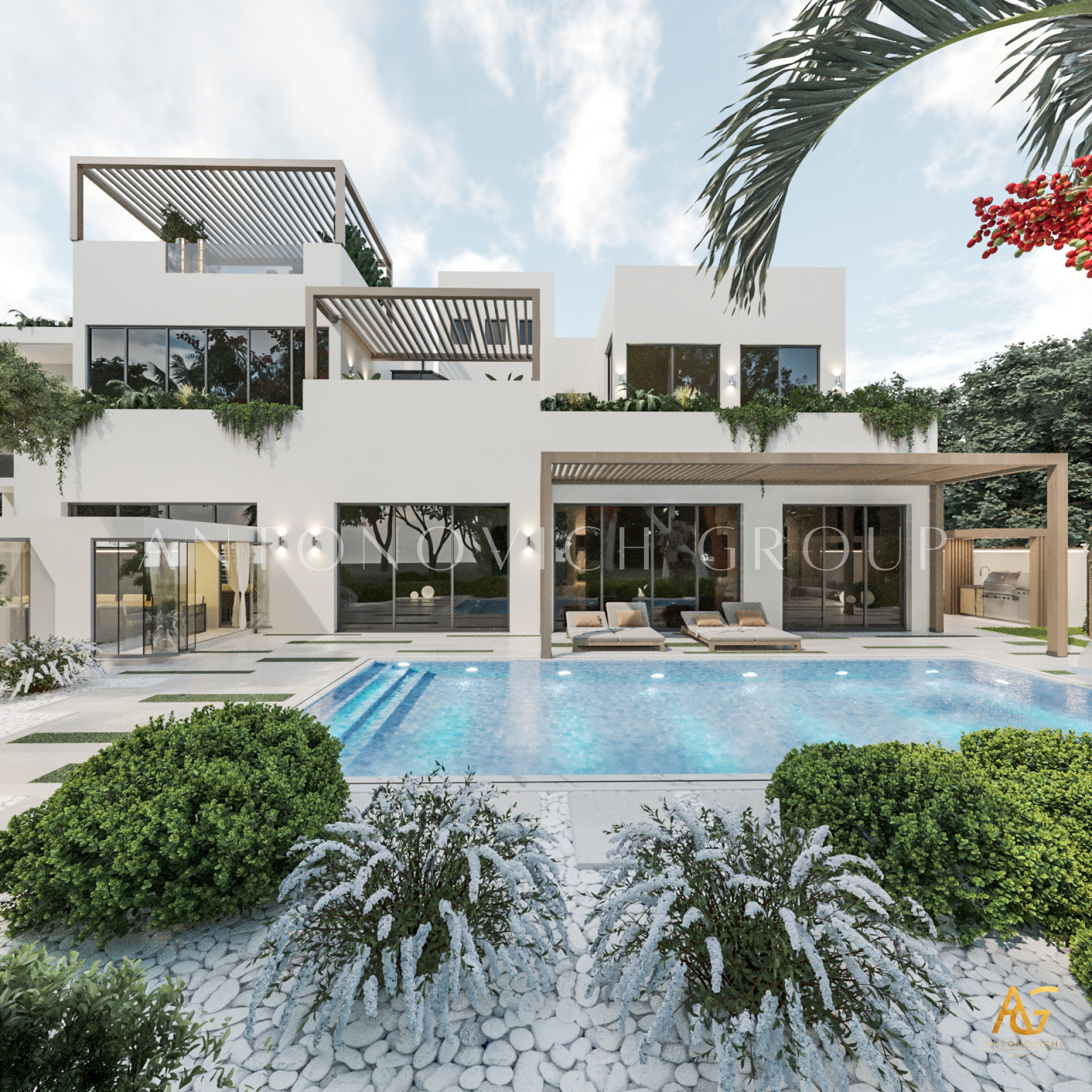 Antonovich Group's commitment to innovation extends beyond aesthetics to incorporate cutting-edge technology and sustainable practices. From energy-efficient lighting and irrigation systems to smart automation features, every aspect of the villa's exterior design is carefully planned to minimize environmental impact while maximizing comfort and convenience for its residents.