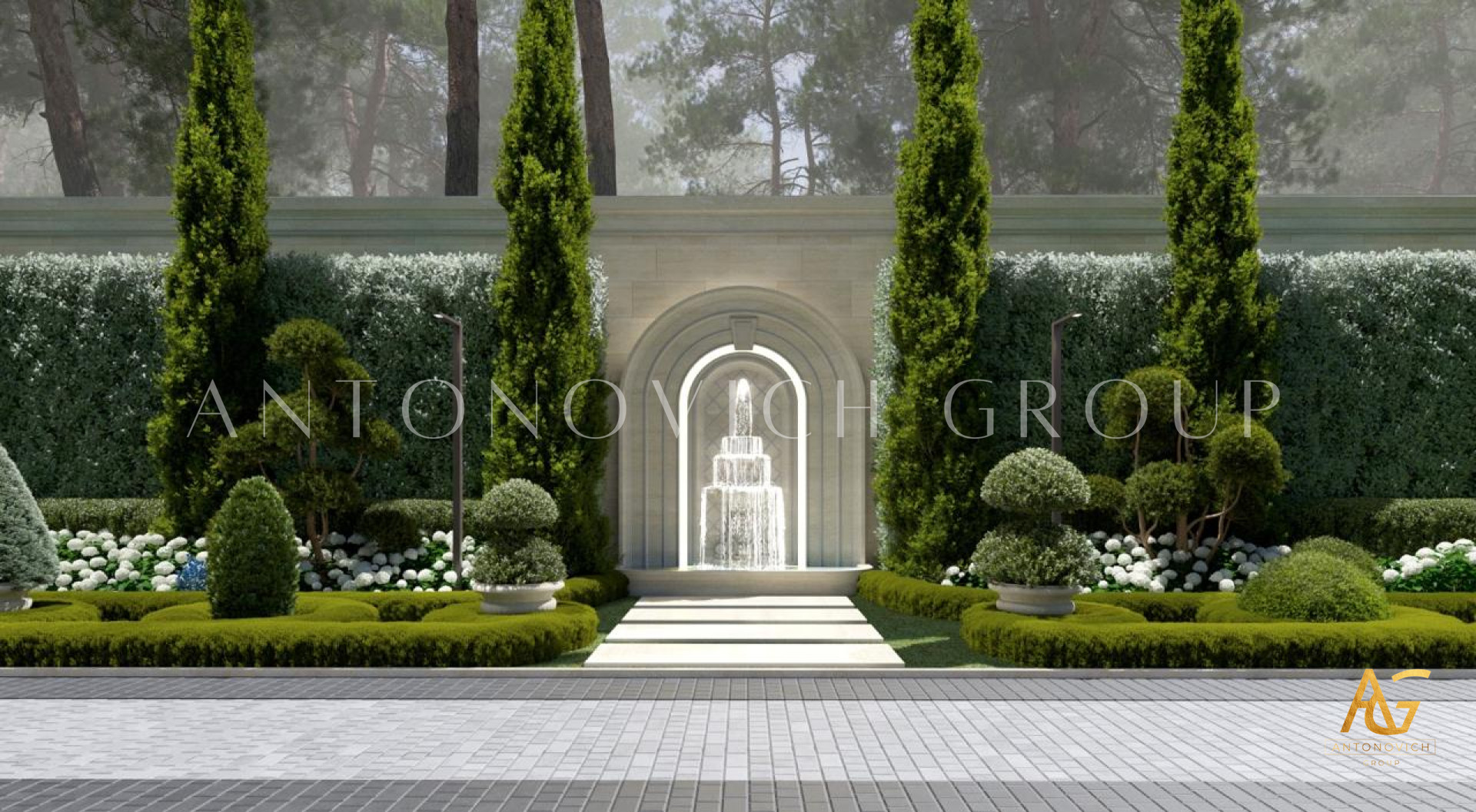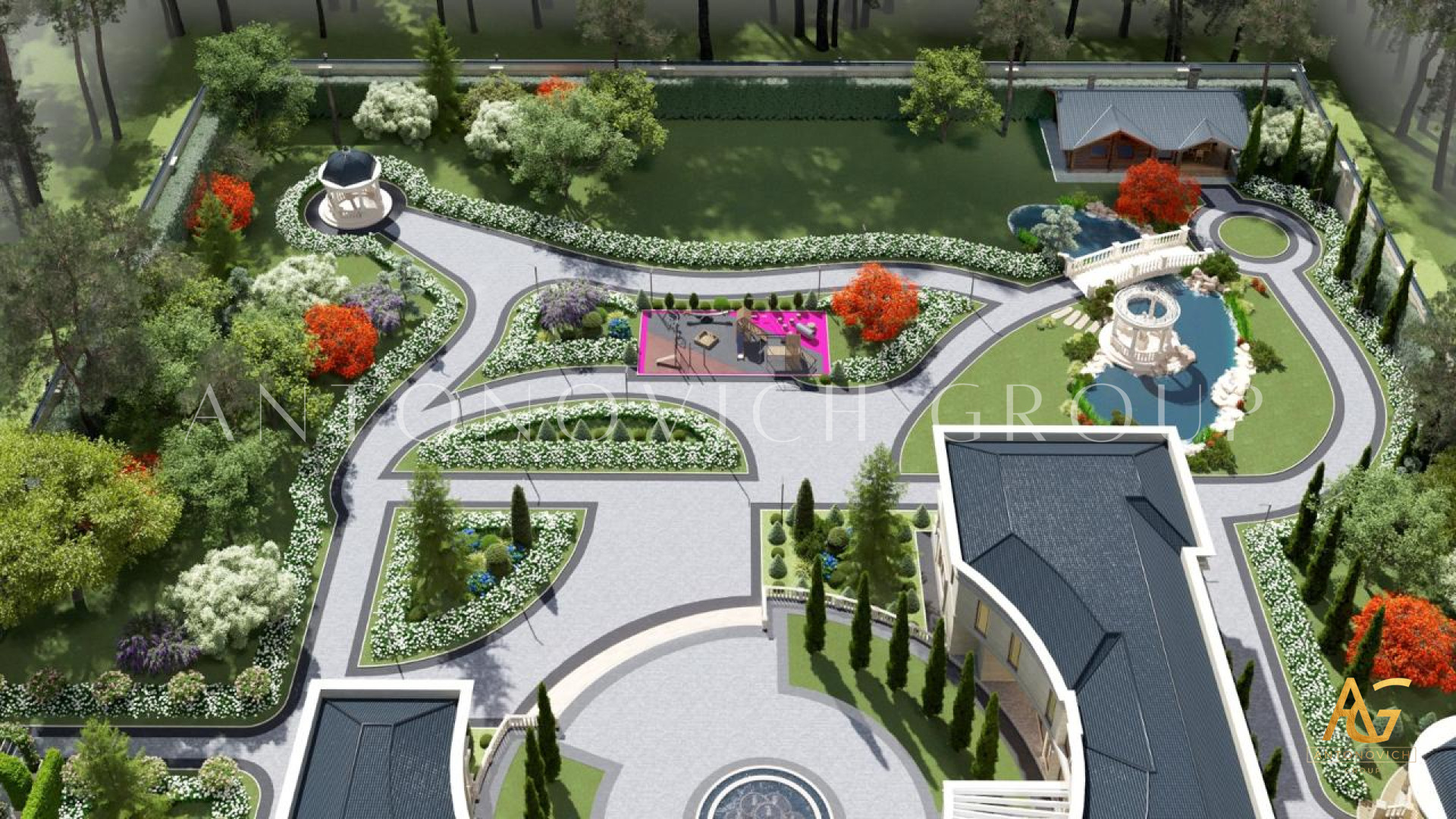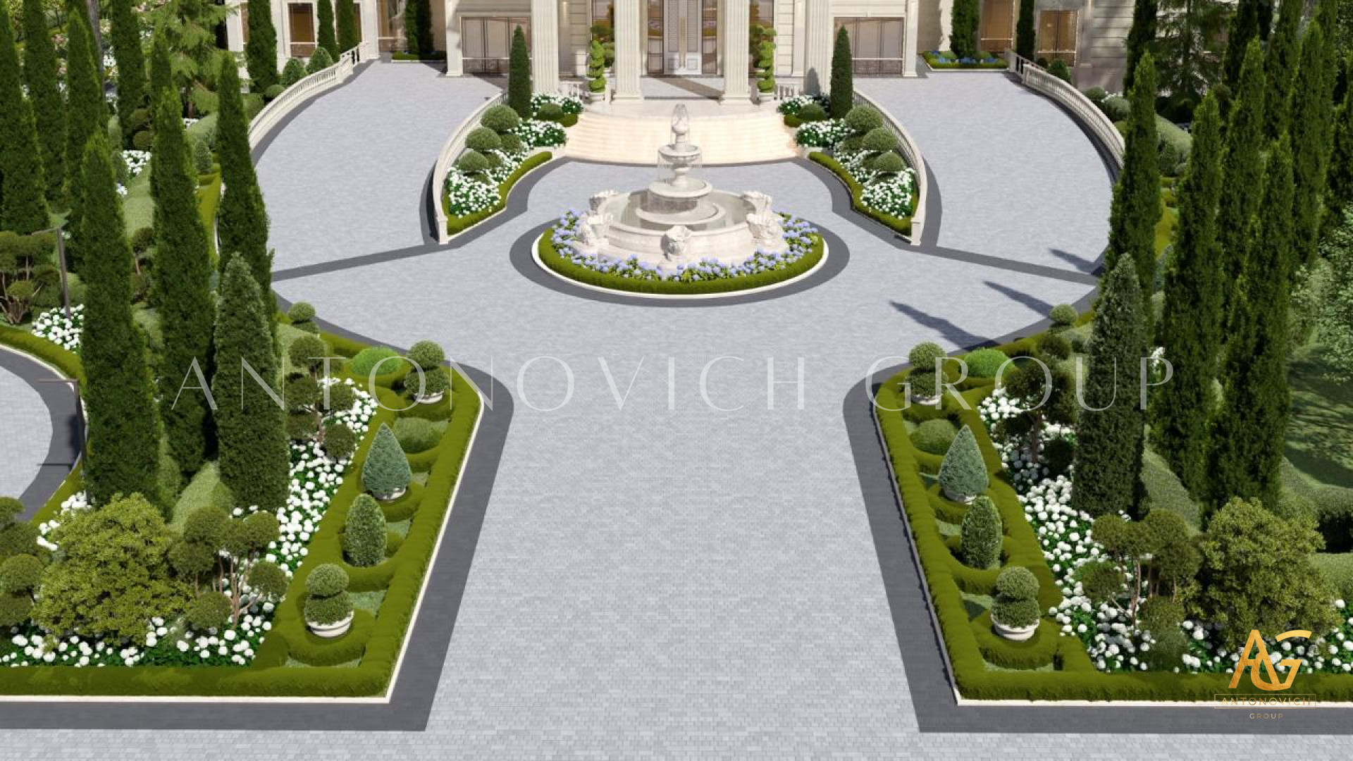 Luxury Antonovich Design accomplishes every landscape design project is intimately tied to building design and villa exterior style. The luxury villa in a modern design represents the current trends of the comfortable dwelling development. We consider each family members desires, habits, and lifestyle throughout the early phases of planning. A huge swimming pool and a large playground design represent these characteristics. The residence is owned by a young family who leads an active lifestyle.