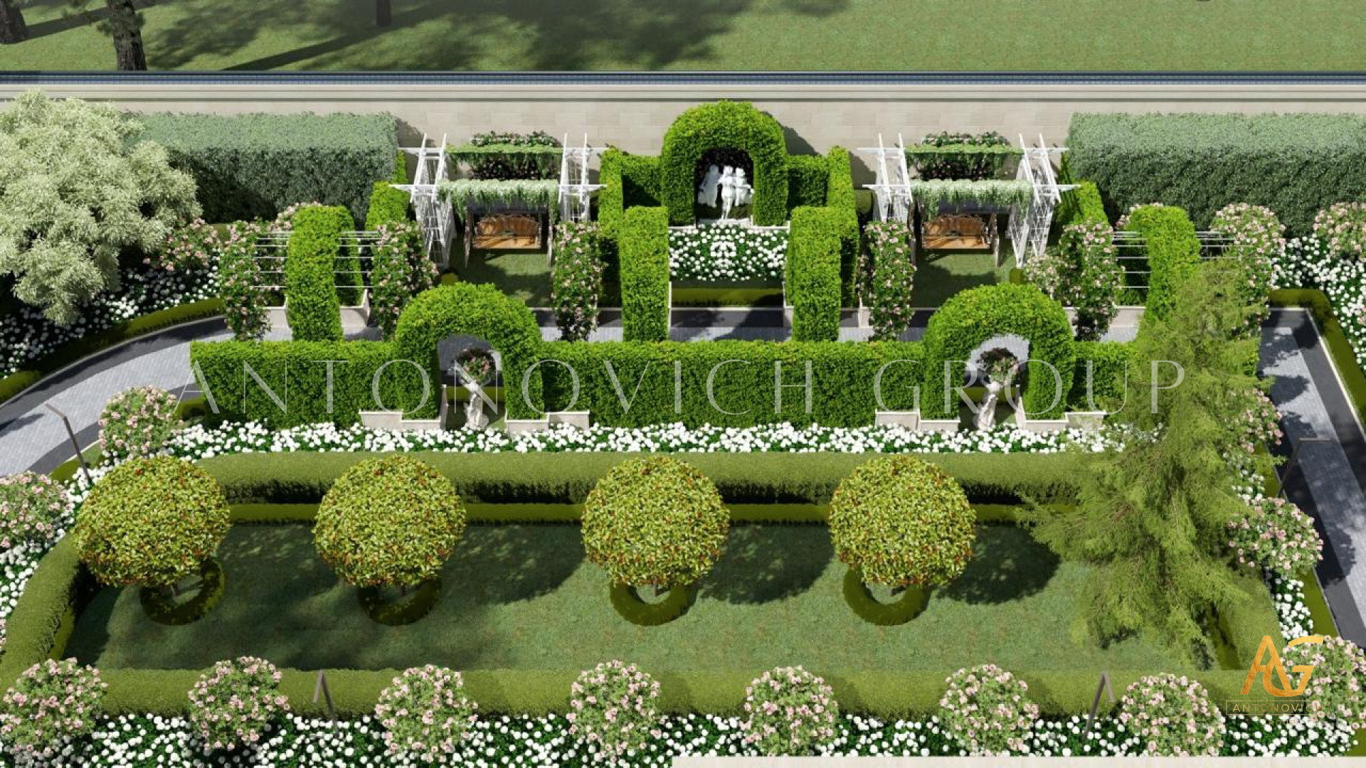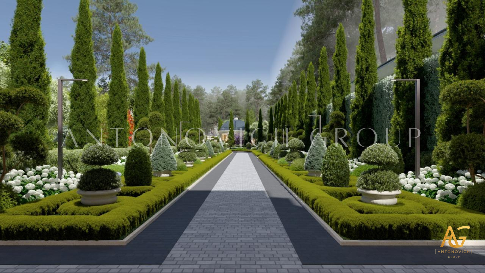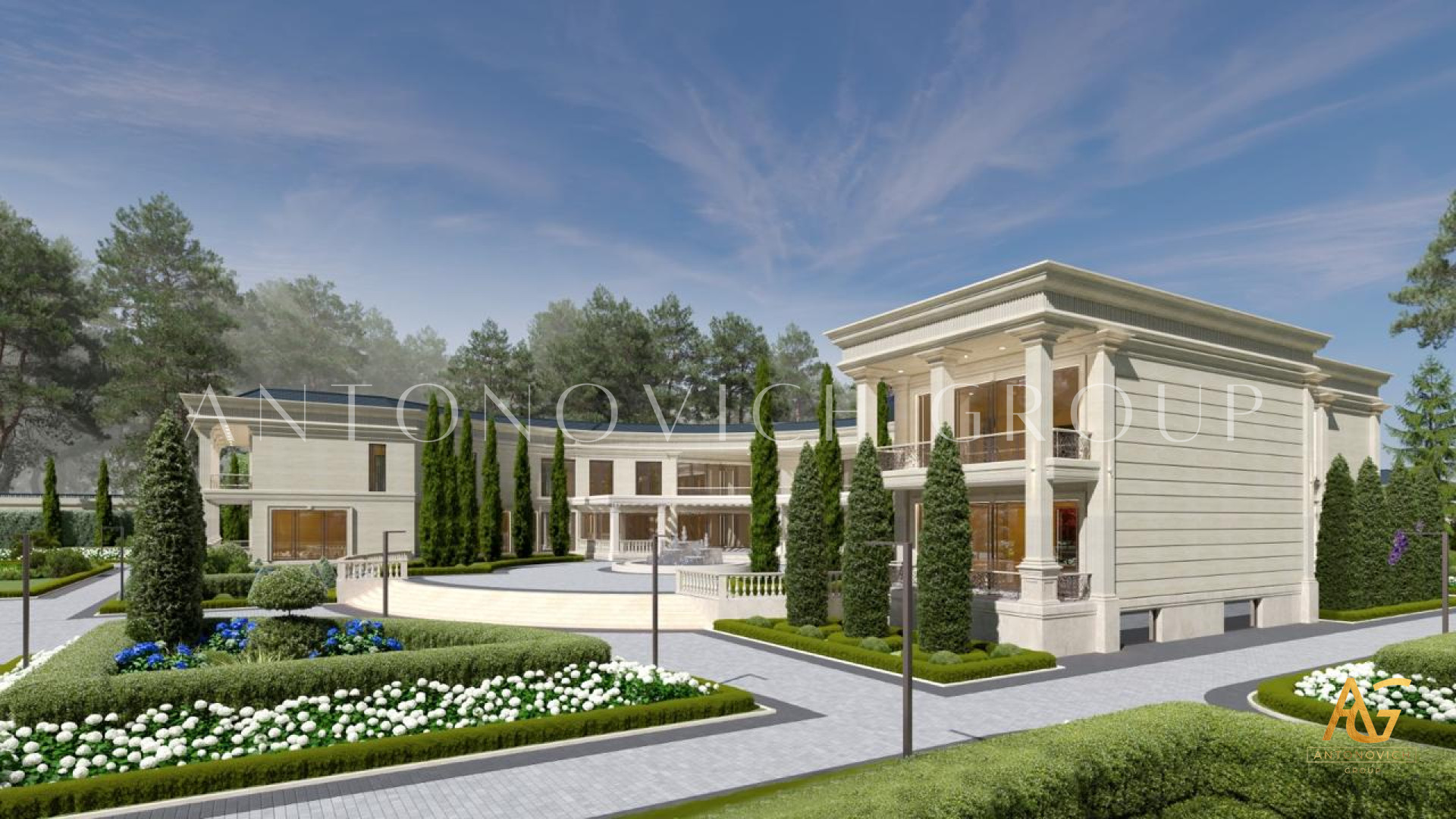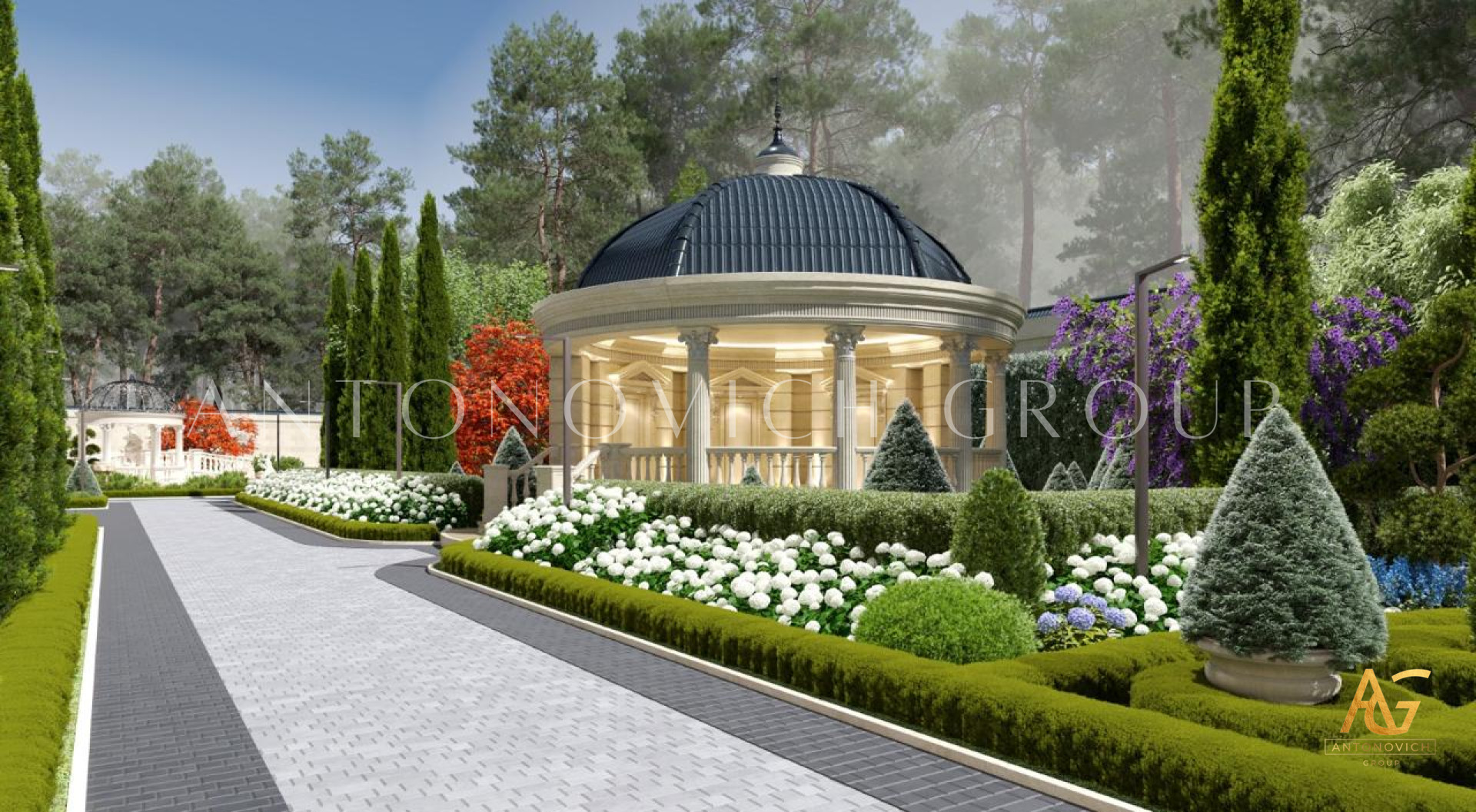 Luxury Antonovich Design accomplishes every landscape design project is intimately tied to building design and villa exterior style. The luxury villa in a modern design represents the current trends of the comfortable dwelling development. We consider each family members desires, habits, and lifestyle throughout the early phases of planning. A huge swimming pool and a large playground design represent these characteristics. The residence is owned by a young family who leads an active lifestyle.