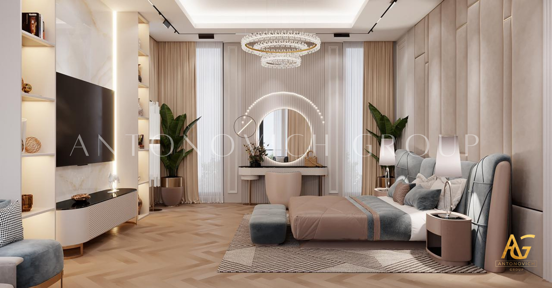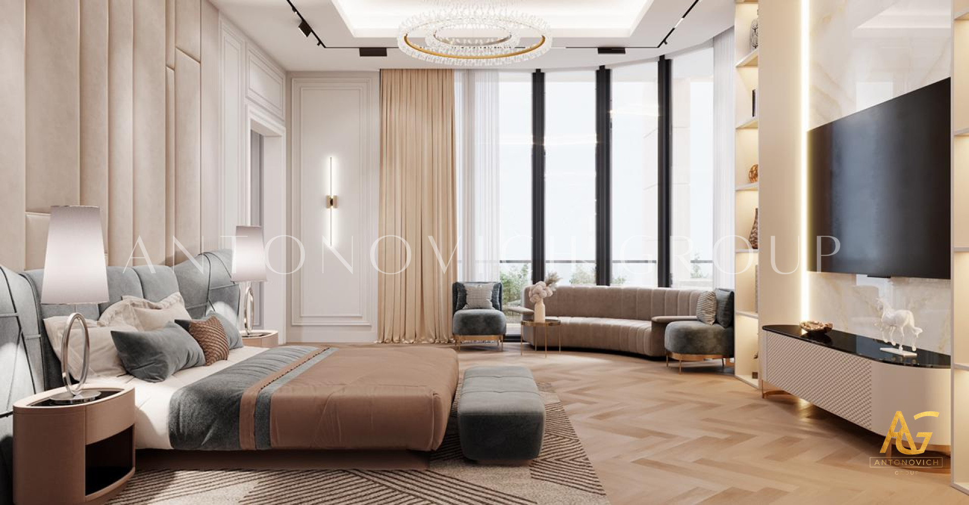 Antonovich Group is well renowned as the trendsetter in luxury interior design as the leading interior design firm in the UAE. Luxury Antonovich Design consistently ensures a stronger balance between warmth and luxury design when it comes to bedroom decor. Antonovich Group has highlighted one of its elegant bedroom design implementations for a modern idea in this post. The beautiful design with very fine touches of elegance is made by the imaginative coordination with the colors and patterns that have been utilized in this luxury bedroom interior design. Antonovich Group, the leading interior design business in the UAE, has always been the most dependable team in designing such pricey villa designs not only in the UAE but also globally.