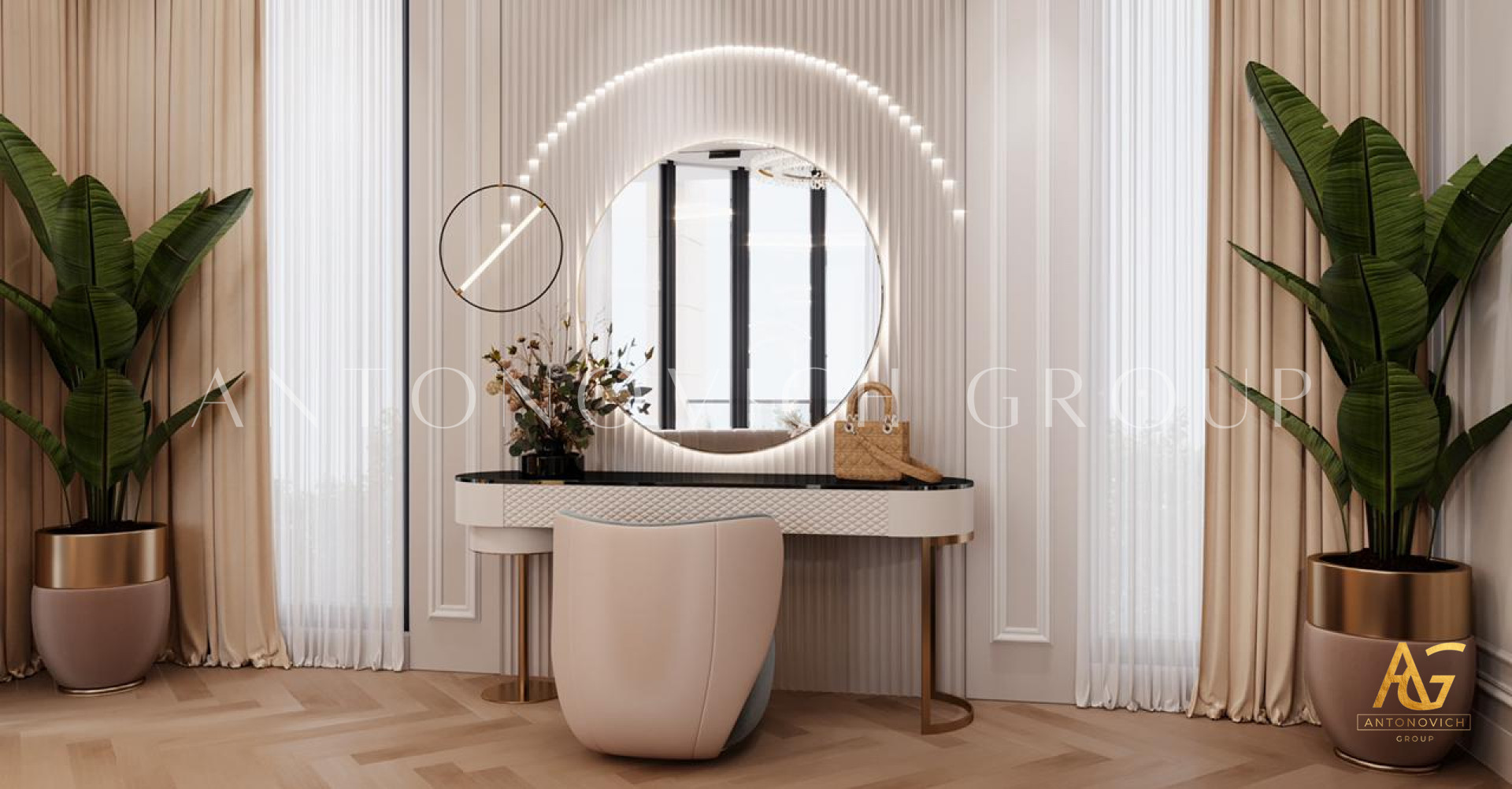 When it comes to picking each furniture design and decoration in creating the most exquisite bedroom interior design, the leading interior design company Dubai UAE - Antonovich Group pays close attention to every detail. The bed is the focal point of any bedroom decor, and the Antonovich Group created a unique bed design for this modern bedroom design, making it seem especially opulent and fashionable. Each fabric and material used in each piece of furniture is of the highest quality and has the best finishing.