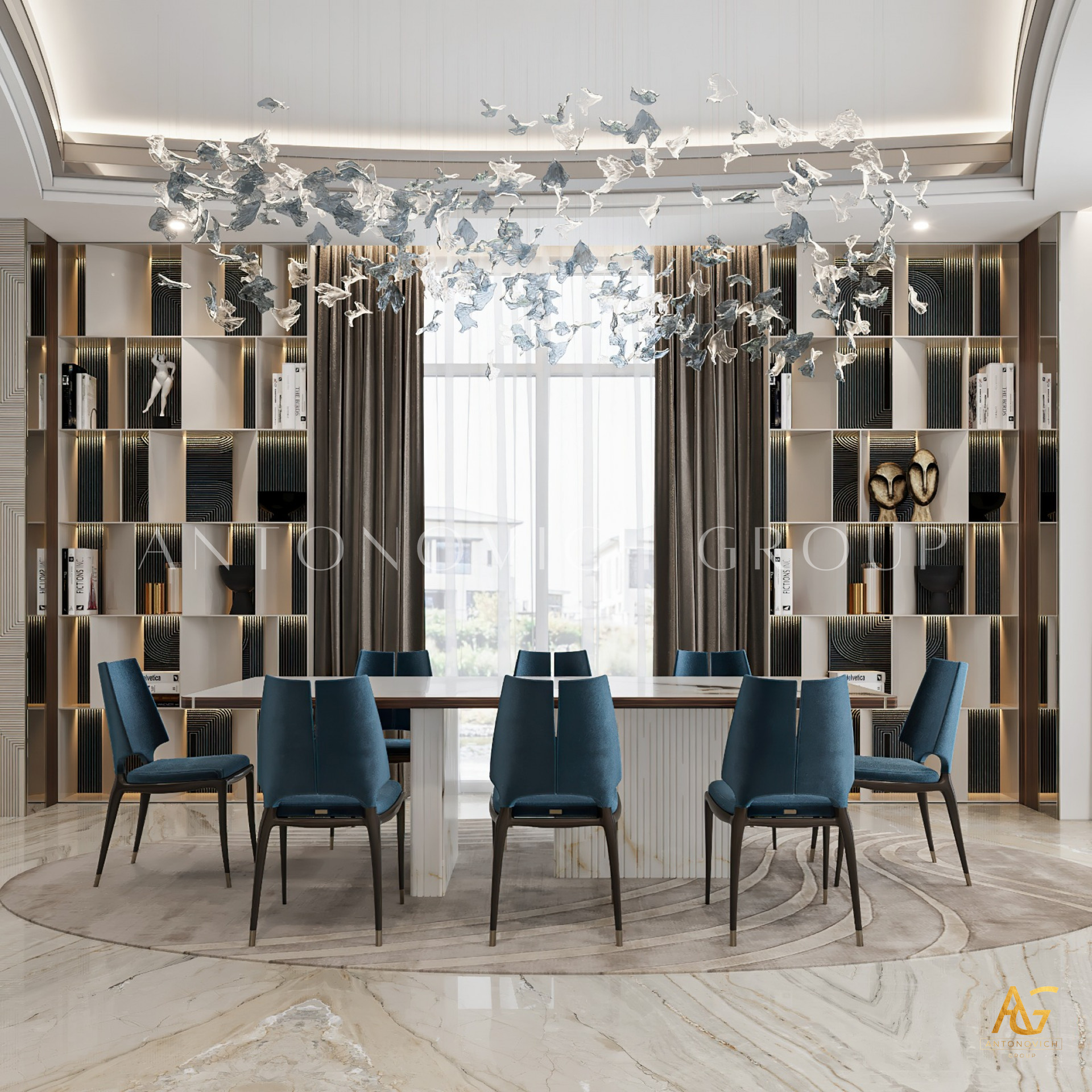 No luxury living room interior is complete without extraordinary furnishings and accessories that add a touch of exclusivity. Antonovich Group collaborates with renowned international brands and artisans to source the finest furniture pieces, opulent fabrics, and bespoke accessories. From intricately carved sofas and armchairs to crystal chandeliers and exquisite rugs, each element in the living room is a testament to the firm's commitment to luxury and refinement.