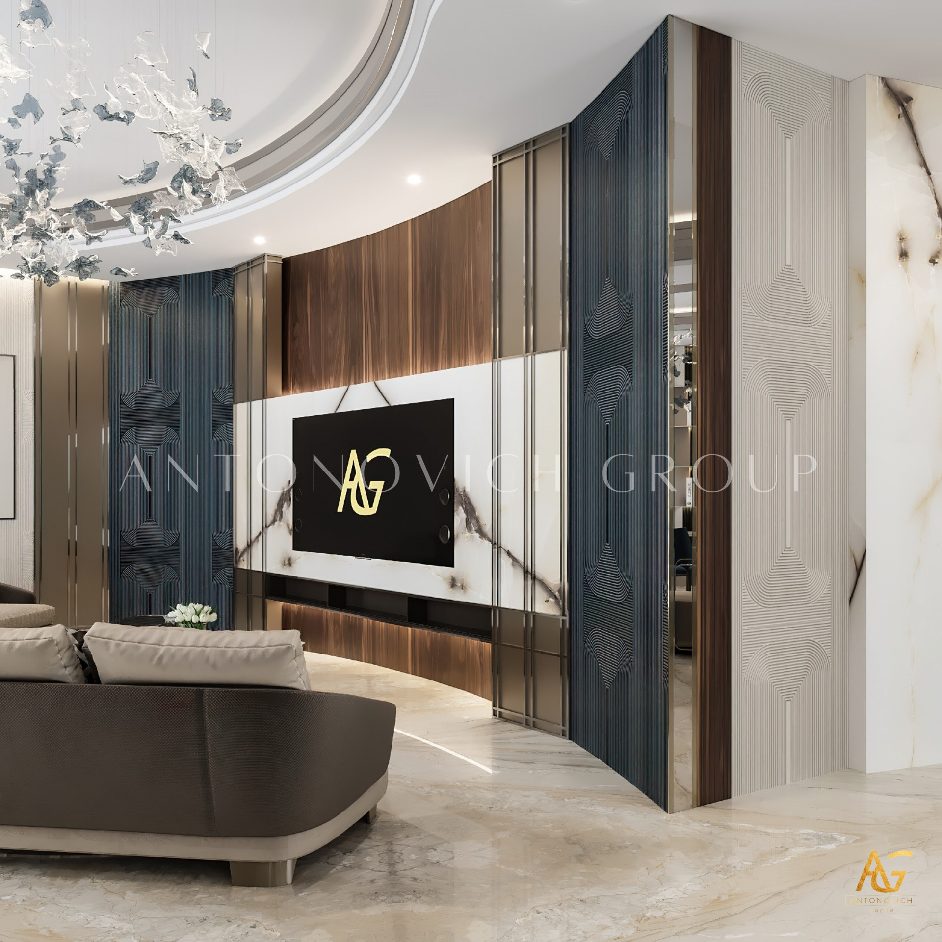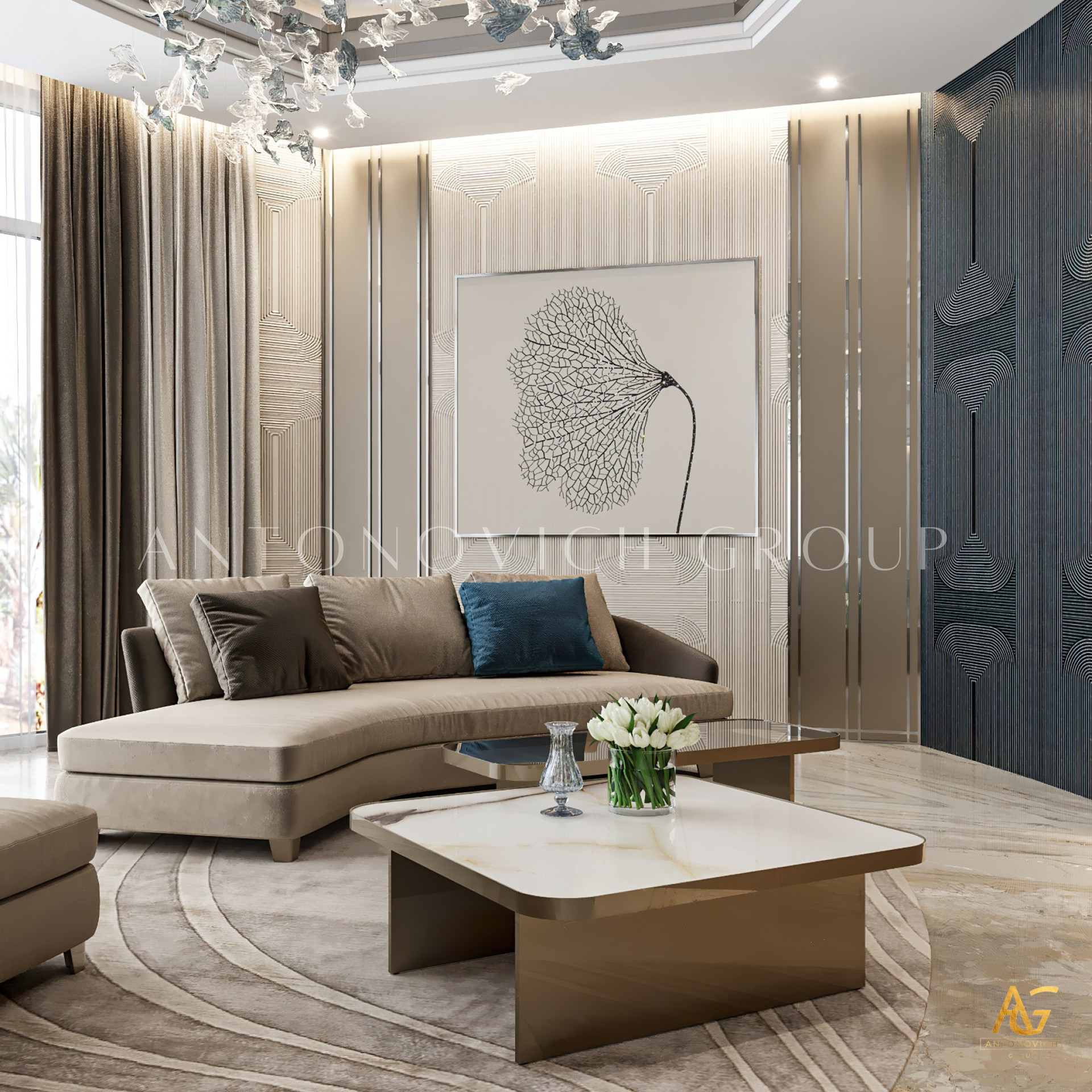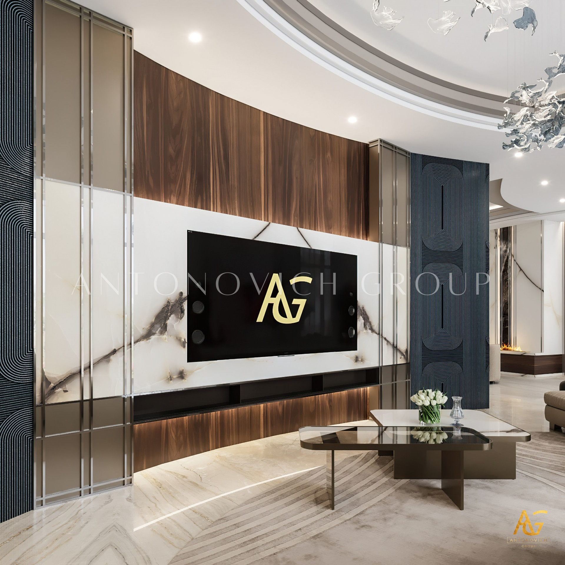 One of the defining features of Antonovich Group's luxury living room interiors is their signature design aesthetics. Drawing inspiration from classical and contemporary influences, their designs strike a perfect balance between timeless elegance and modern sophistication. Rich textures, sumptuous fabrics, and exquisite finishes create a visual tapestry that speaks volumes about the superior craftsmanship and attention to detail employed by the designers.