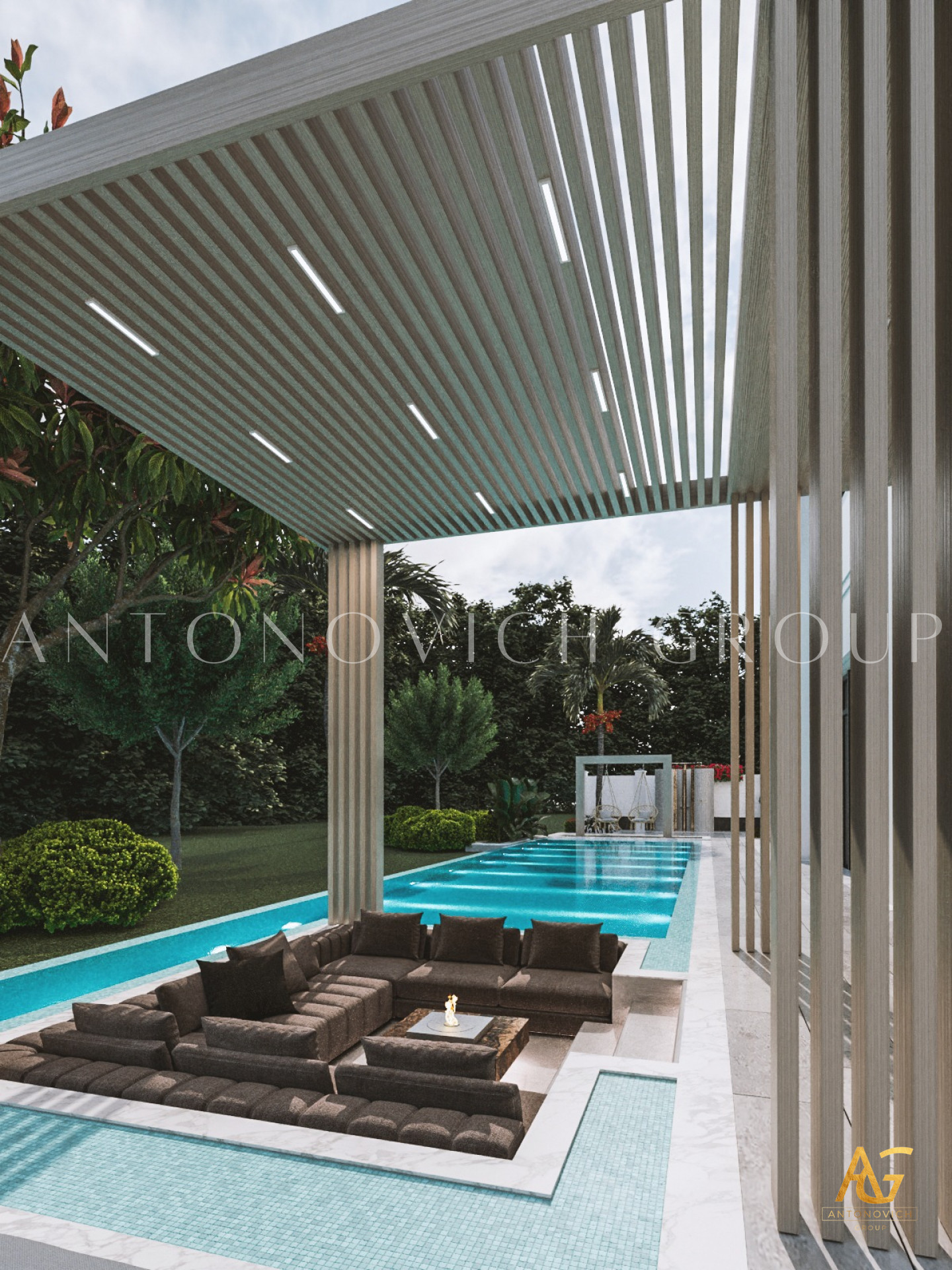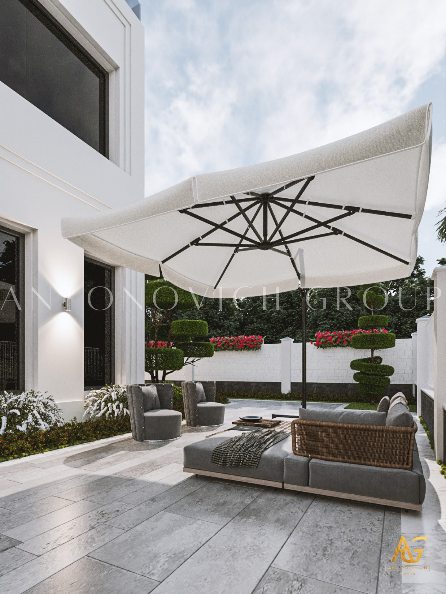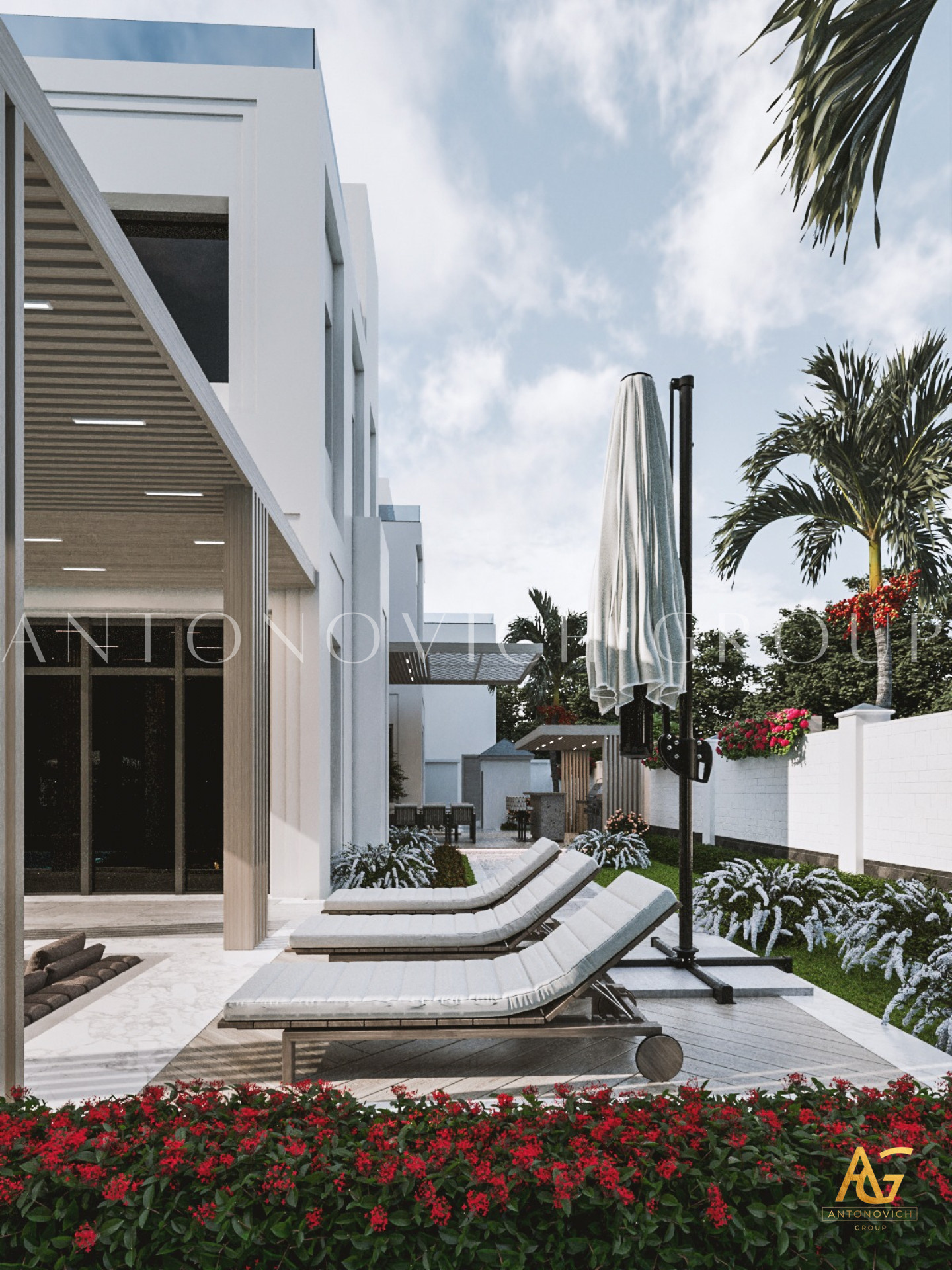 Antonovich Group started by carefully analyzing the existing landscape and architecture of the villa. They recognized that the property's surrounding nature, with its lush vegetation, presented an opportunity to create a seamless connection between the villa and its environment. With this in mind, the team decided to implement a landscape design that would integrate the villa into the natural surroundings.