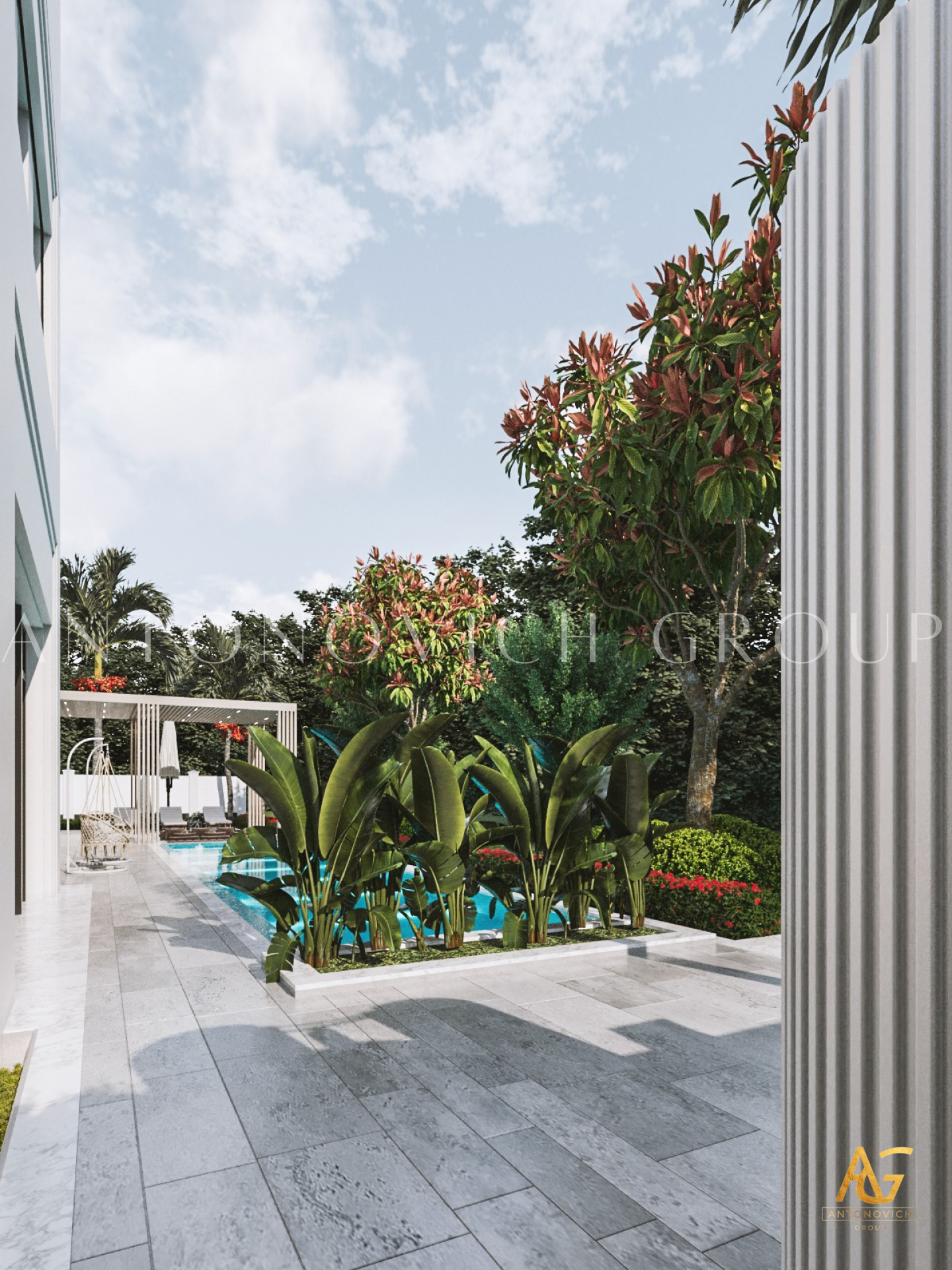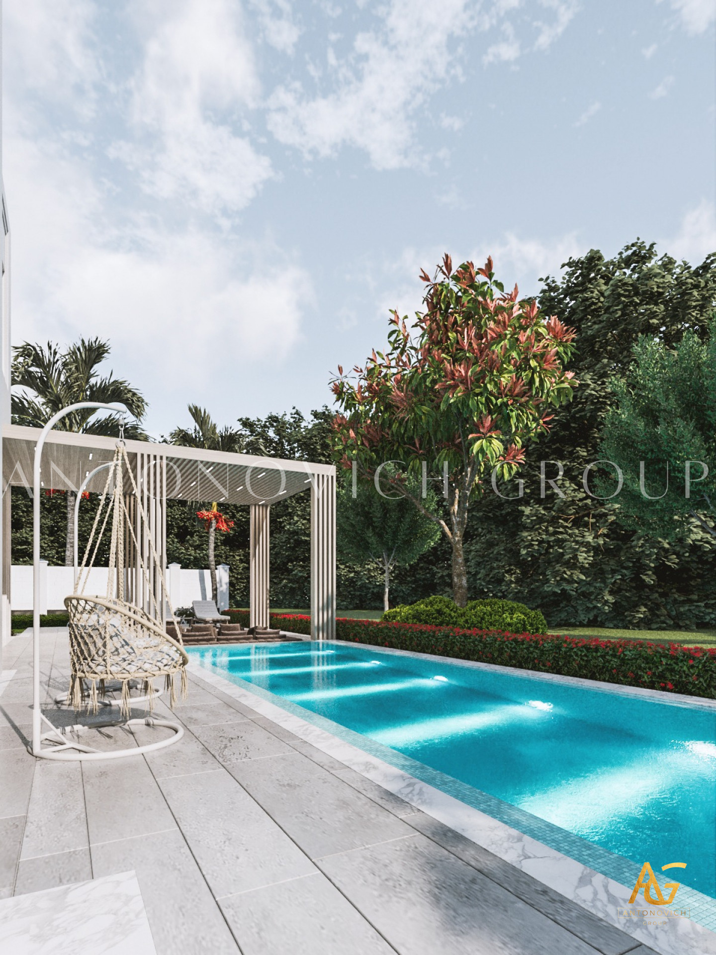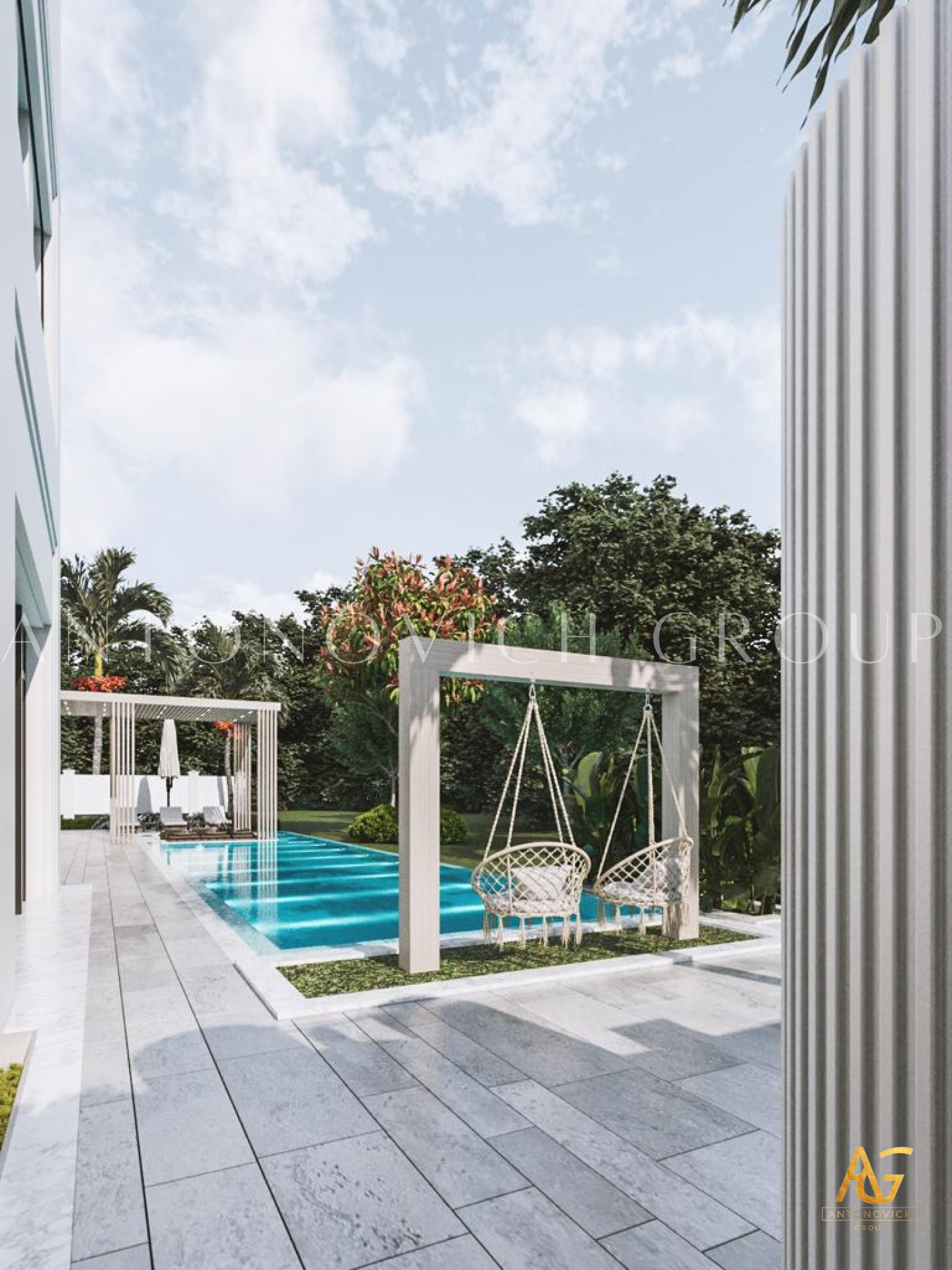 Antonovich Group started by carefully analyzing the existing landscape and architecture of the villa. They recognized that the property's surrounding nature, with its lush vegetation, presented an opportunity to create a seamless connection between the villa and its environment. With this in mind, the team decided to implement a landscape design that would integrate the villa into the natural surroundings.