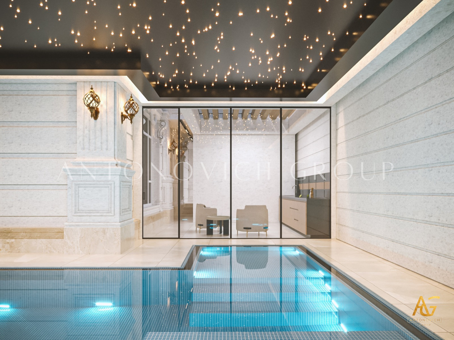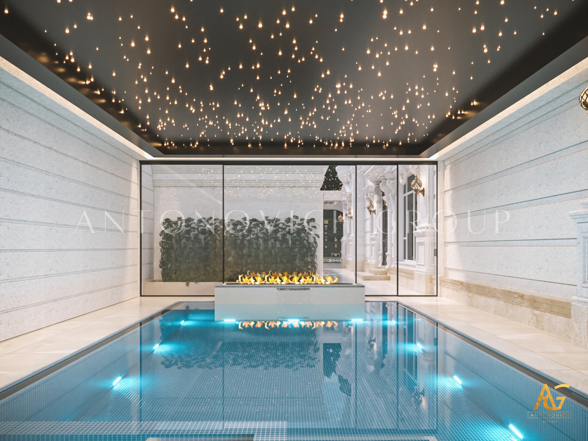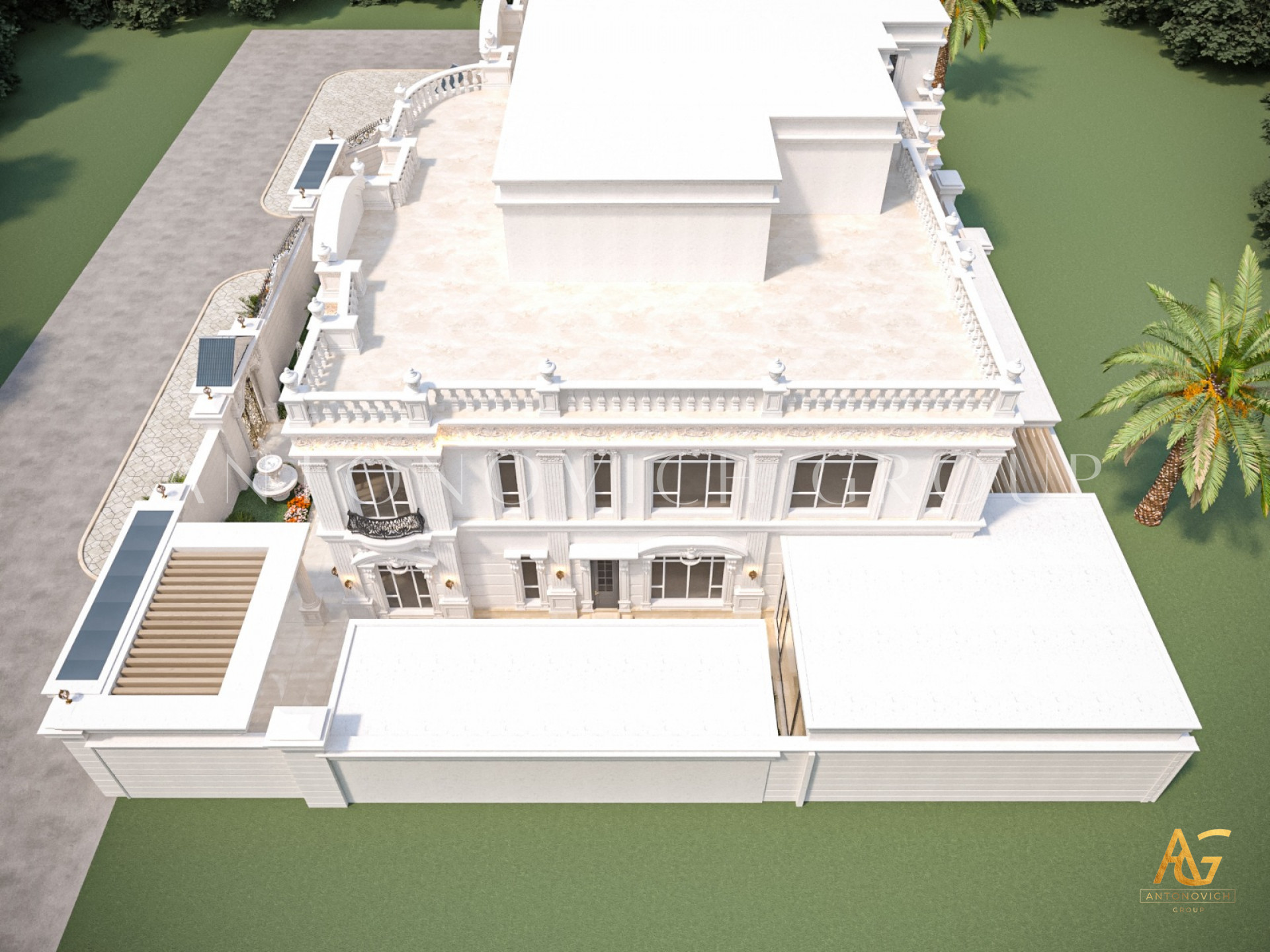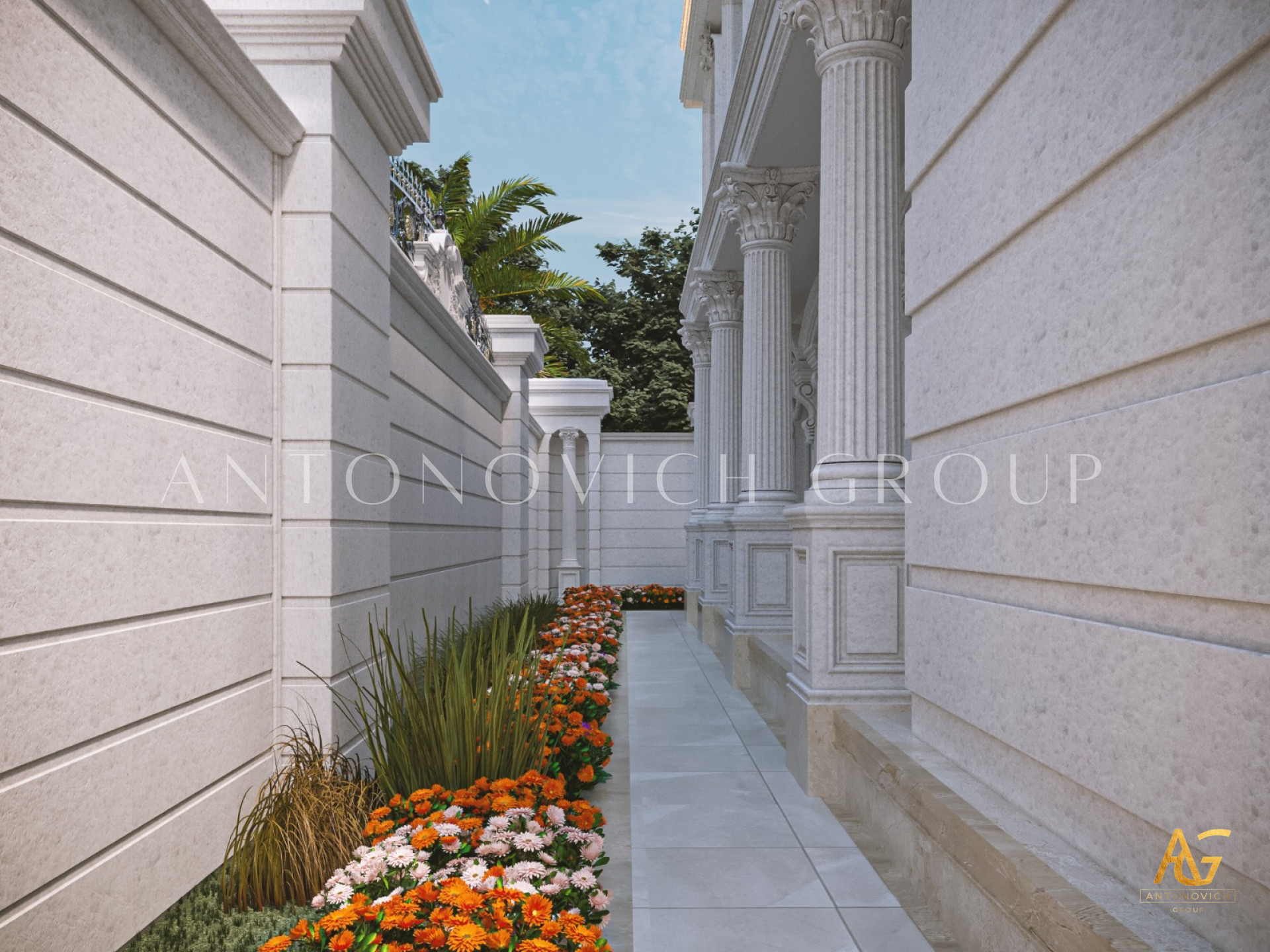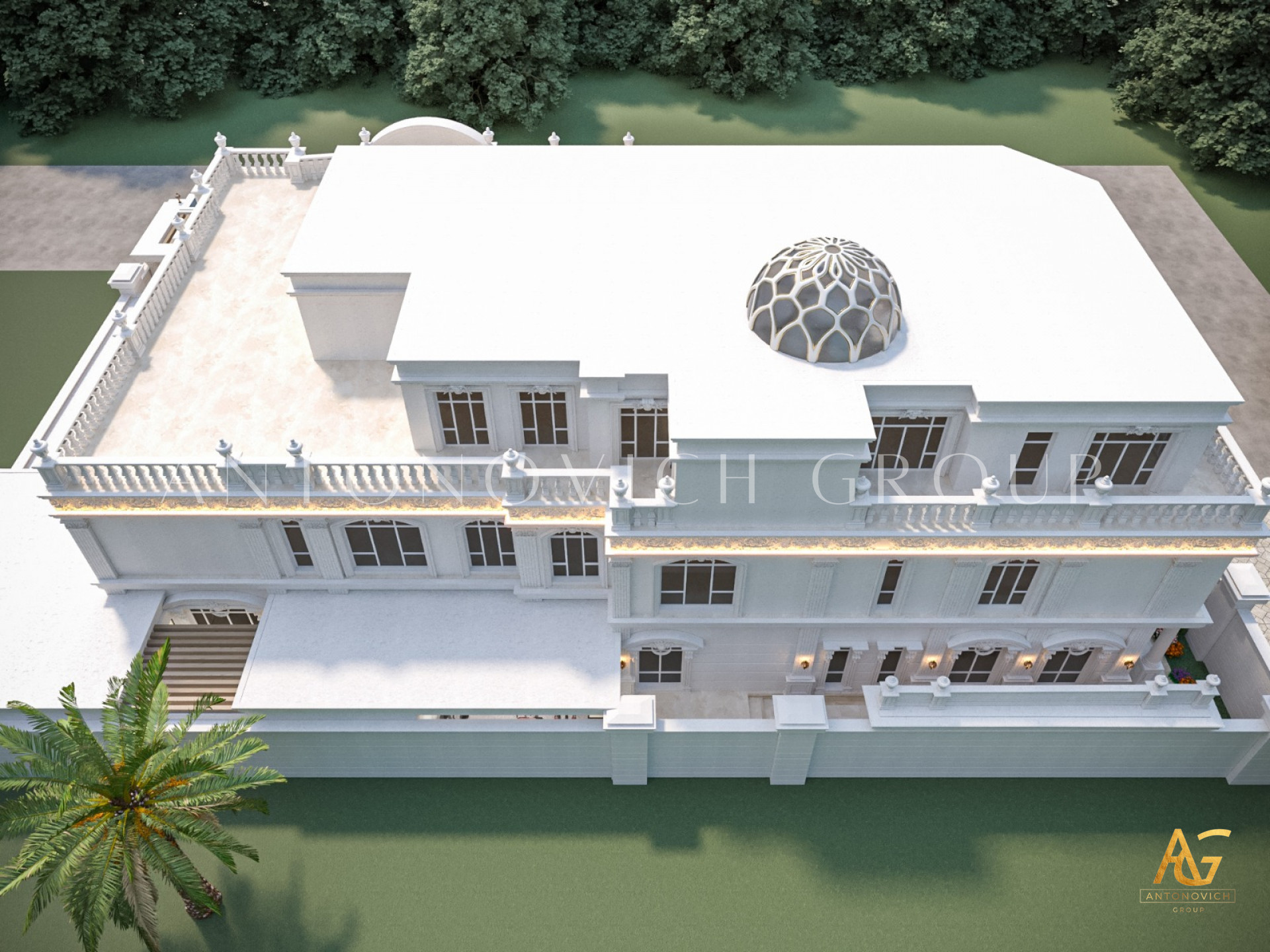 The villa’s exterior combines sleek modern lines with classical architectural details to create an inviting yet opulent atmosphere. The strategic use of natural materials, such as stone and wood, alongside state-of-the-art glass facades, allows the villa to exude a sense of sophistication while maximizing natural light. Antonovich Group also integrated lush landscaping and meticulously designed outdoor spaces to complement the villa's grandeur.