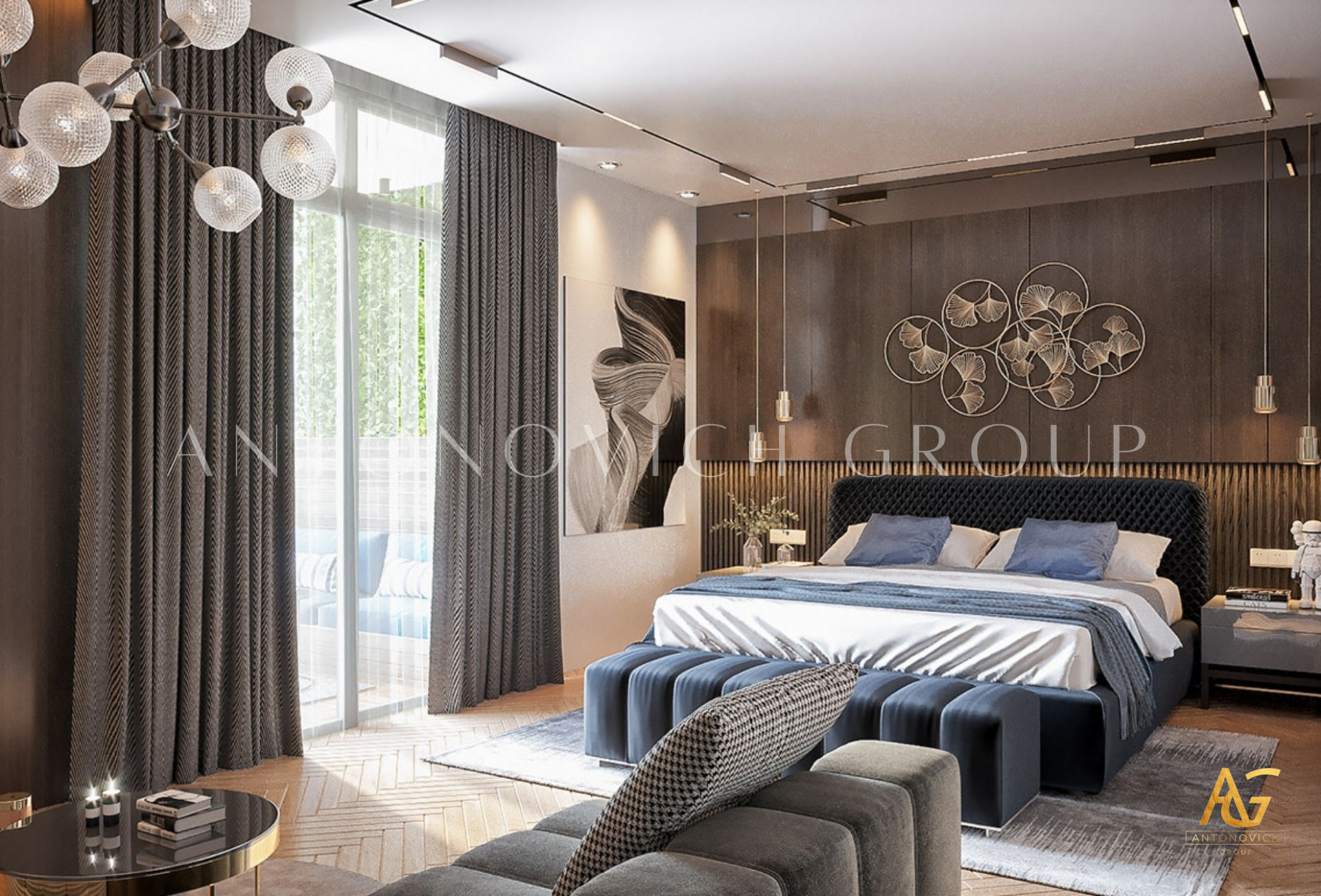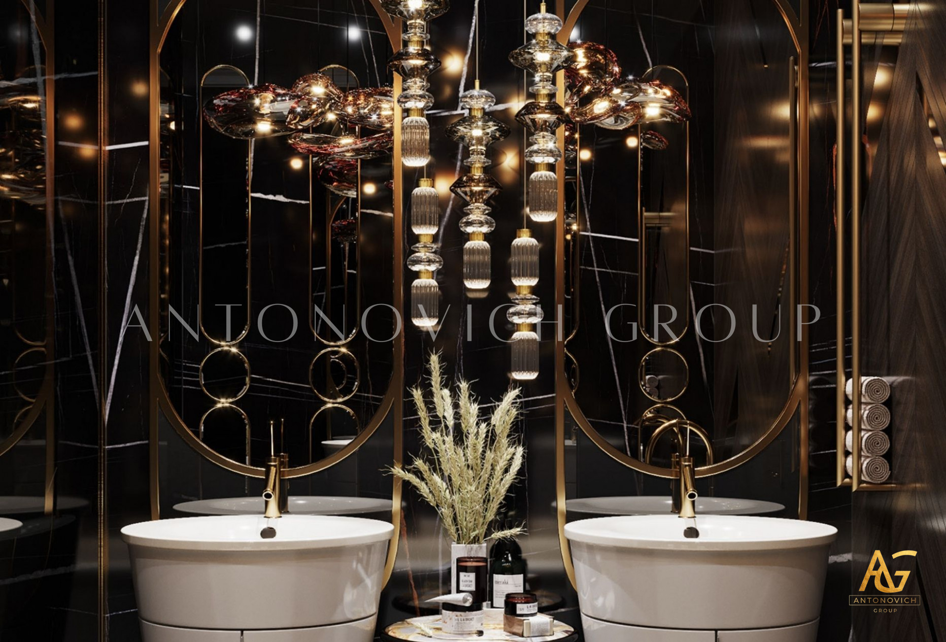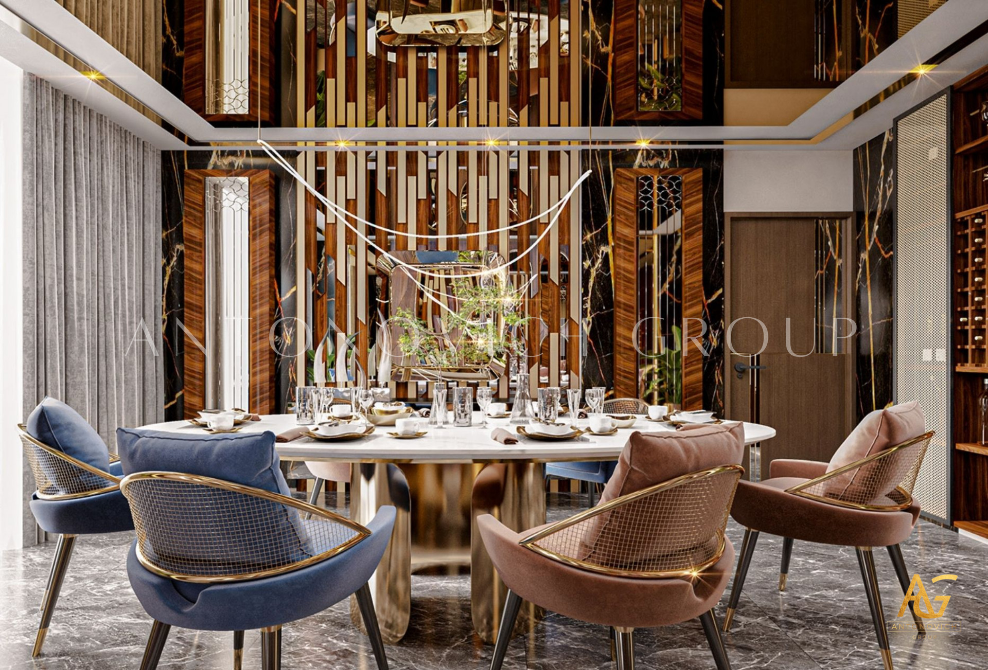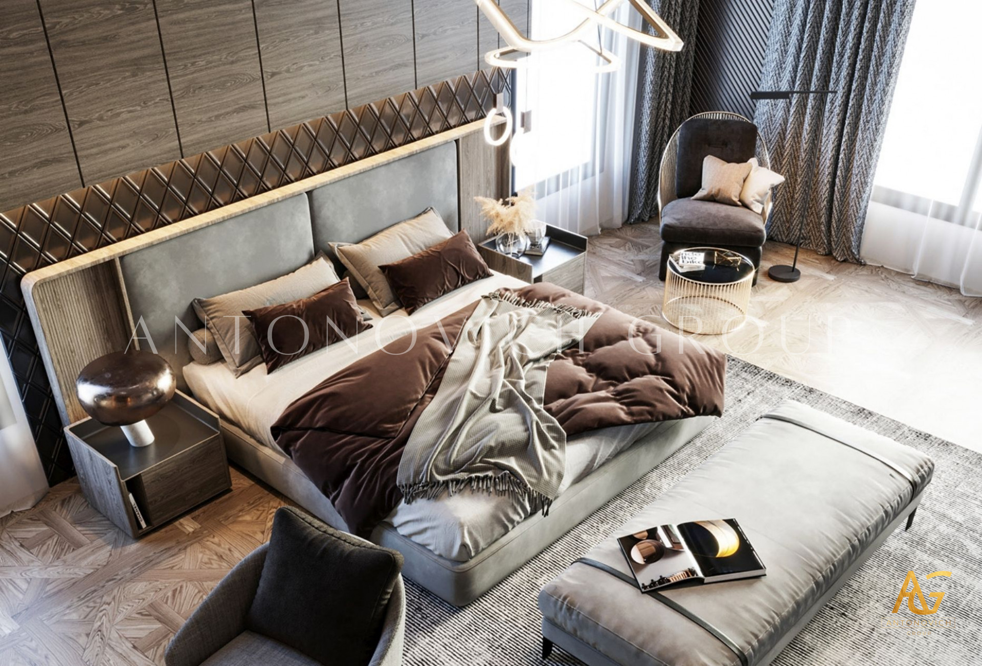 One of the nicest aspects of this luxury Dubai villa design plans is the overlooking high-ceiling. The arrangement is fantastic, as you can see from the second story. To complete the overall wonderful atmosphere of the luxury Dubai villa design plans, stunning furniture designs, beautiful accents, and high-quality materials were employed. Everything was put together to create a sumptuous atmosphere that is really stunning. In the completion of this luxury Dubai villa design plans, Luxury Antonovich Design examined two things: defining the overall aesthetic of the space and determining the primary places for furniture arrangement.