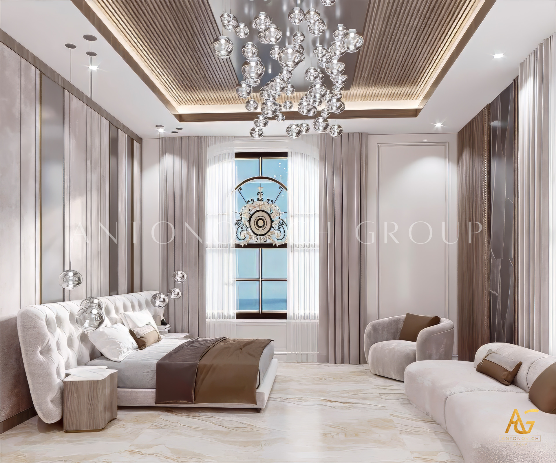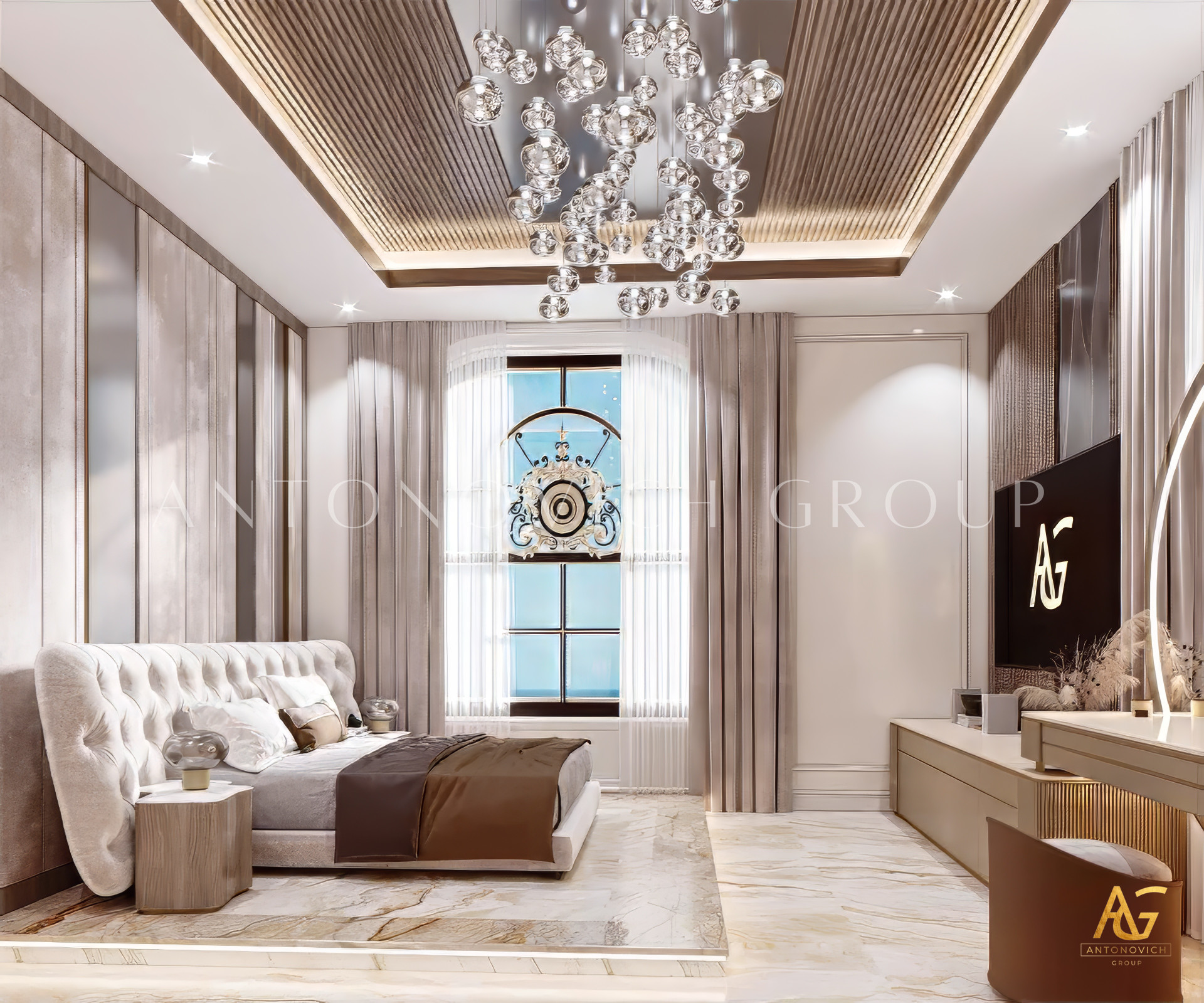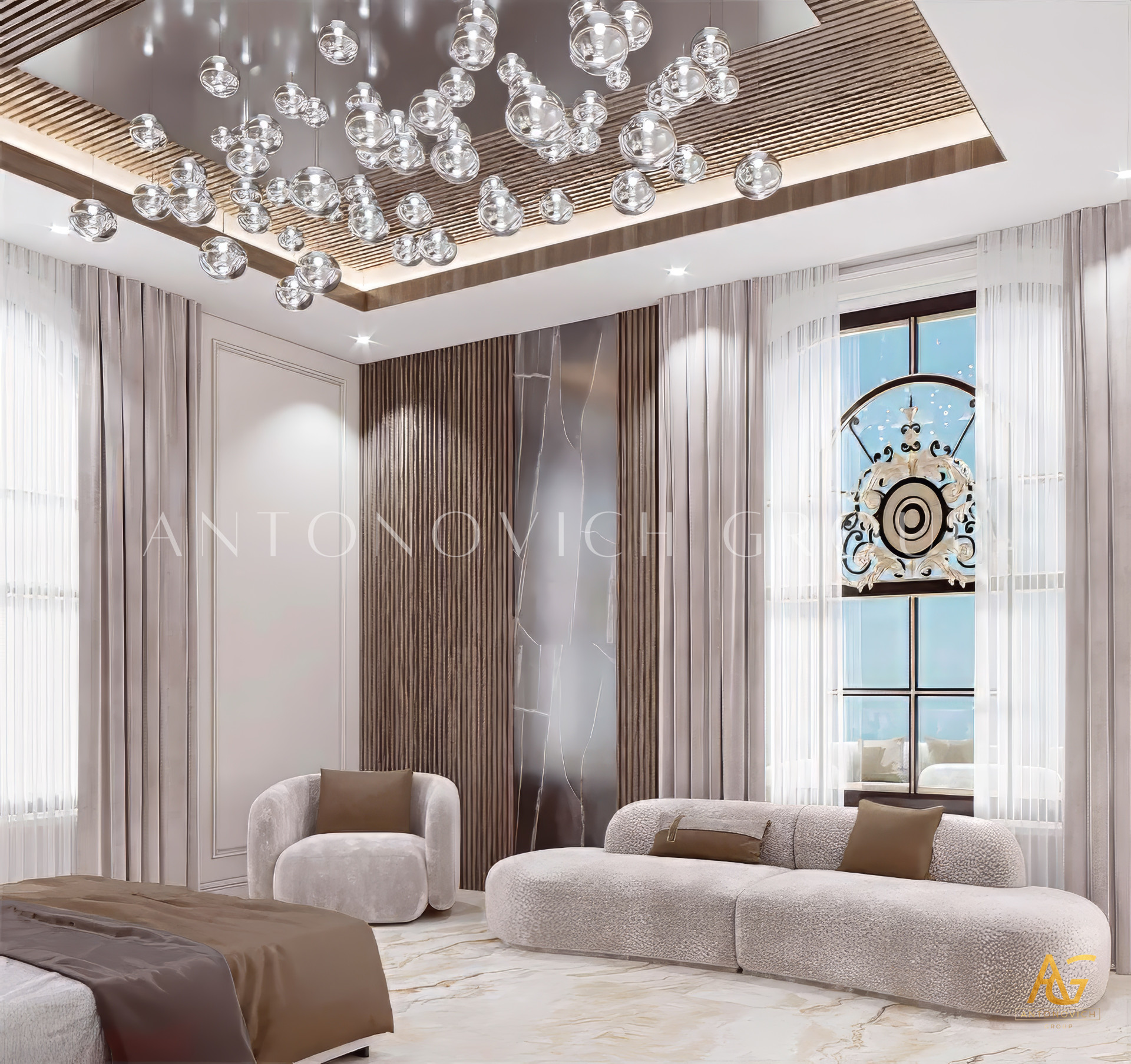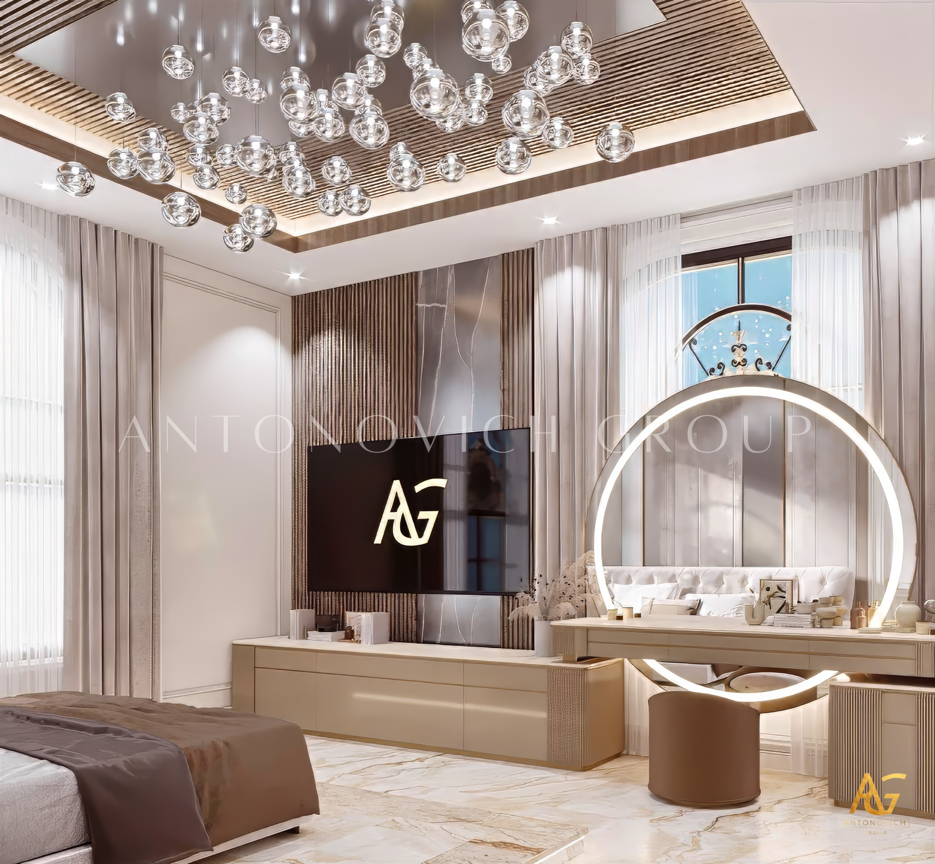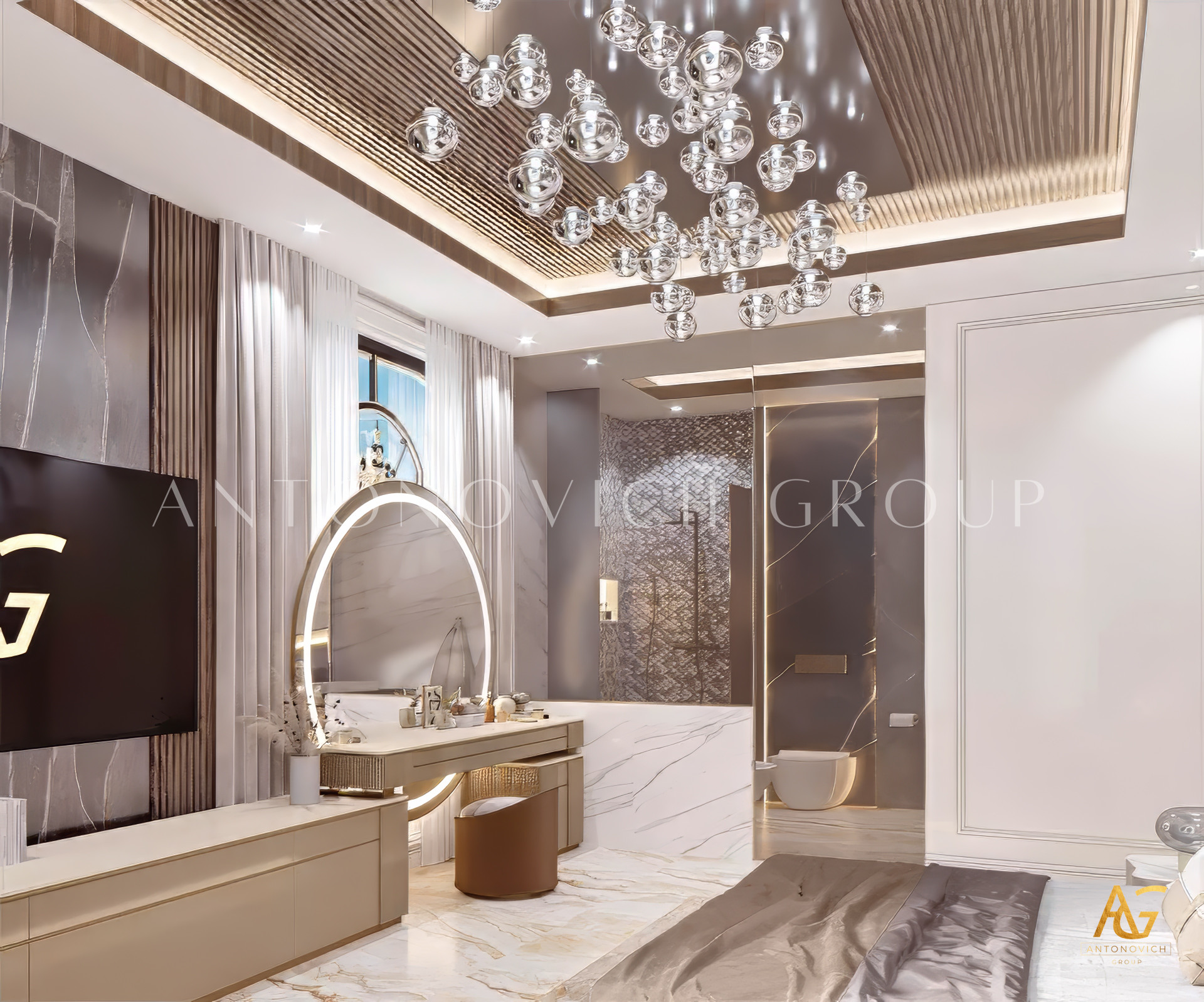 This modern rooms style and interior design complement one other, and its lovely features were artfully displayed. The violet and wood accents were attractive, with a lovely collection of decors for a more vibrant feel and light pieces for the design that demonstrate elegance and luxury. Luxury Antonovich Design is the most wonderful interior design service provider for a gorgeous home. The lovely ambiance contributes to the enigmatic vibe of the overall attractiveness of LAs modern interior design.
