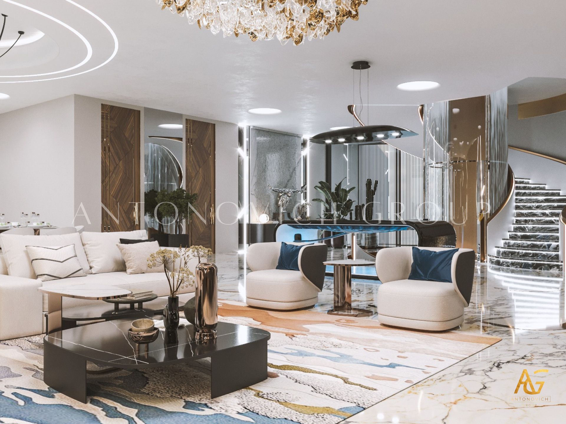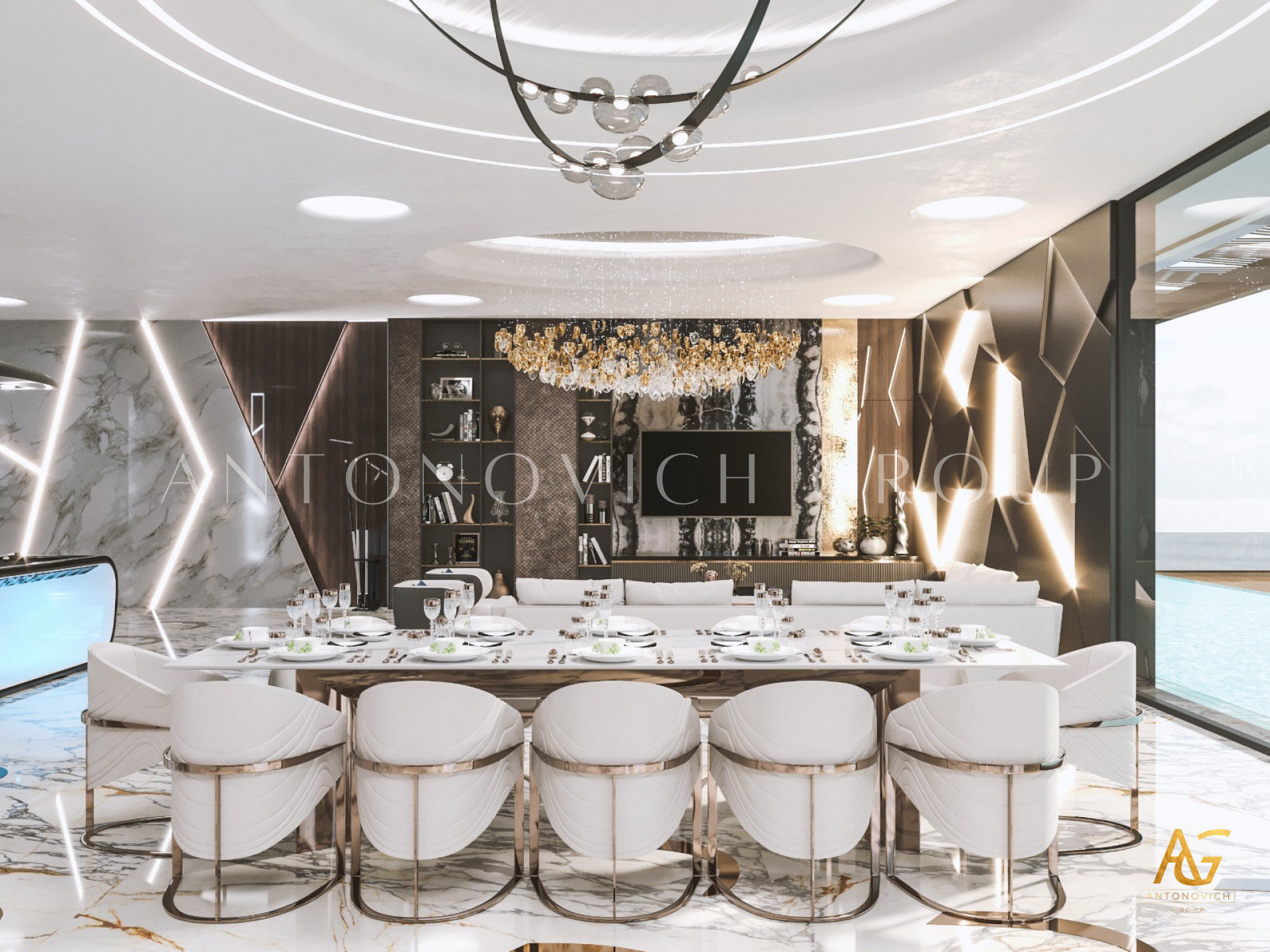 This Living room sophistication and design seamlessly converge – a testament to the unparalleled mastery of Antonovich Group. Today, we delve into the exquisite world of open space living and dining interior design, where luxury finds its true expression in the artful hands of visionary designers.