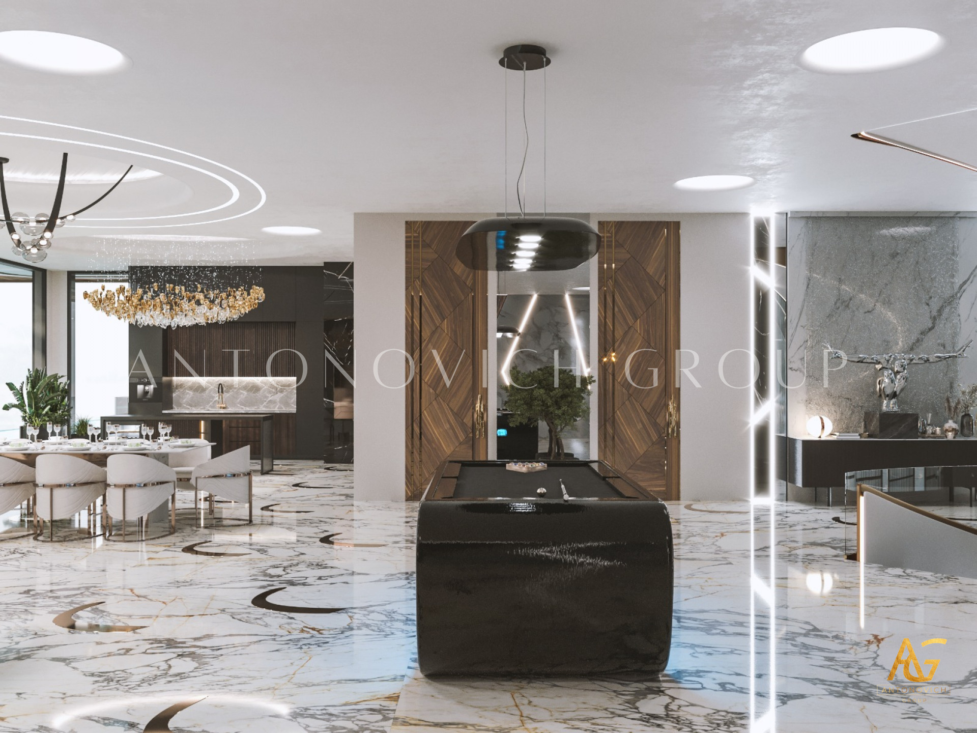 In this open space living and dining sanctuary, Antonovich Group's signature touch is unmistakable. Every detail is meticulously curated, and every element is a stroke in the grand canvas of luxury living. Join us in celebrating the marriage of open space elegance and opulence crafted by Antonovich Group