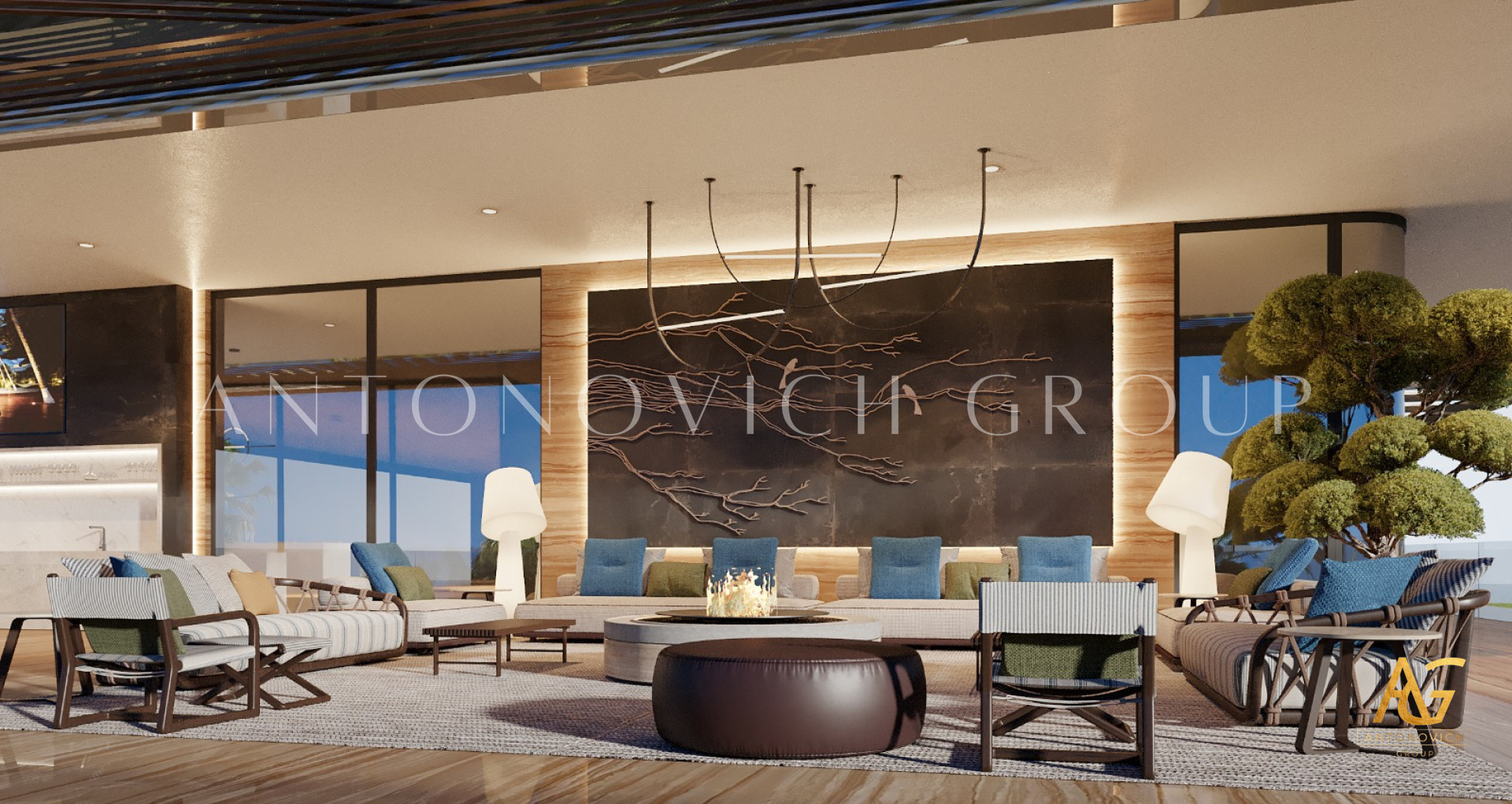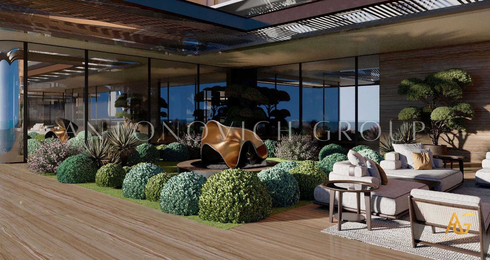 Landscaping plays a pivotal role in Antonovich Group's project, transforming outdoor spaces into a visual symphony. From lush greenery to strategically placed water features, every element is carefully curated to enhance the outdoor experience. Residents and guests are treated to an oasis of serenity within the lavish embrace of this architectural gem.