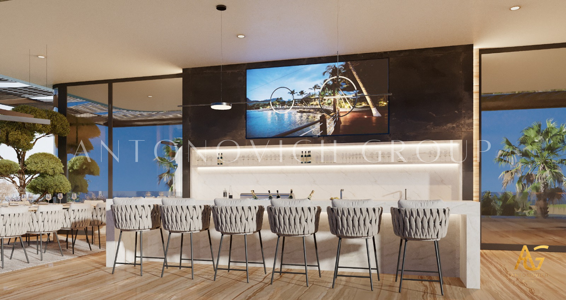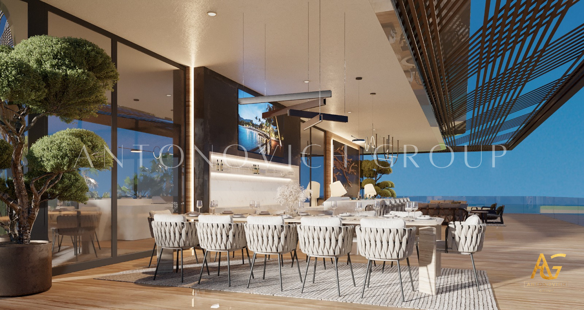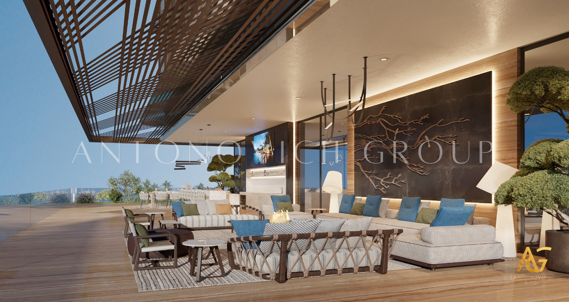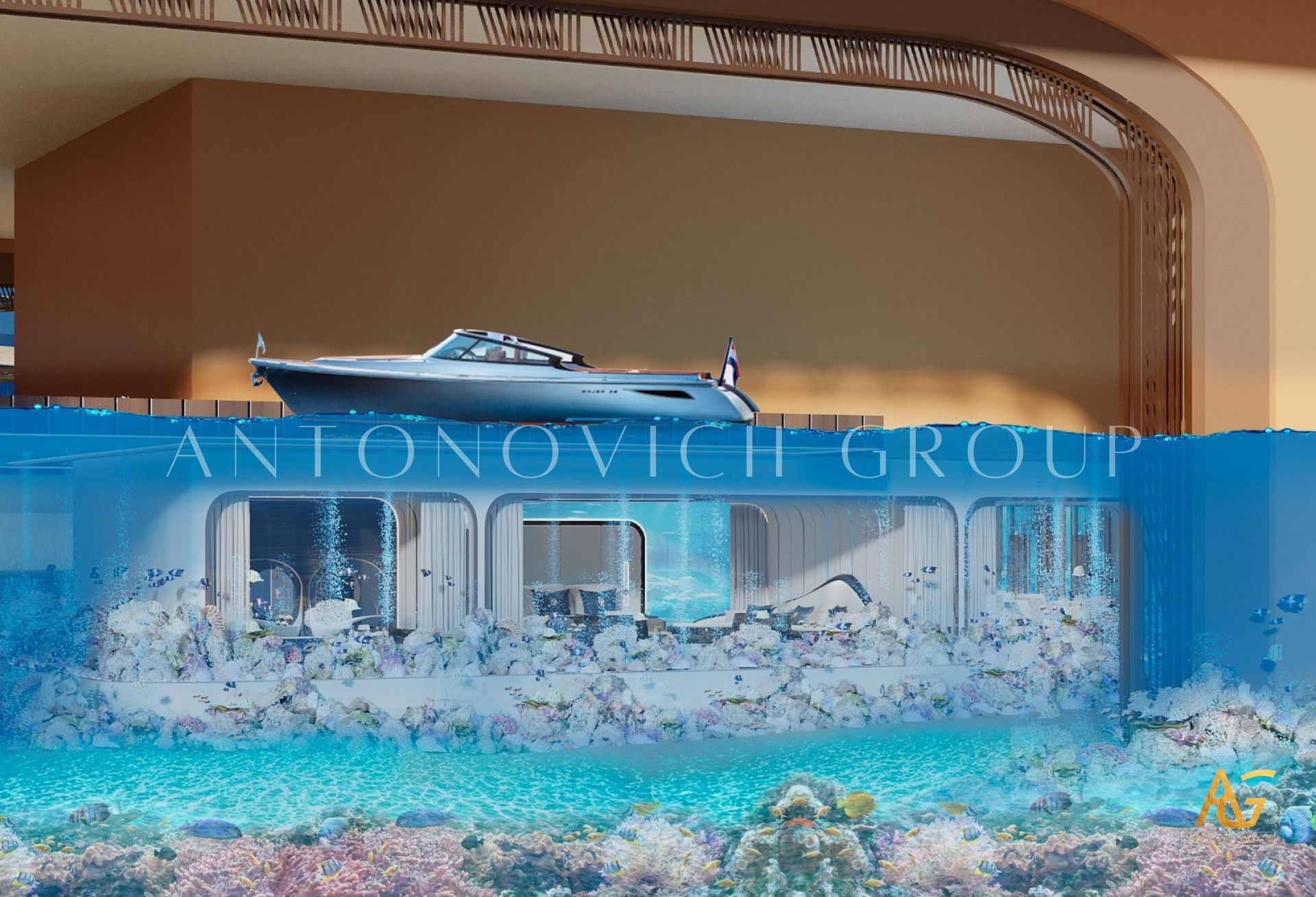 Antonovich Group's architectural prowess is on full display in this World Islands project. Every facet of the exterior design reflects a careful consideration of aesthetics, functionality, and the distinctive characteristics of the World Islands locale. The result is a harmonious fusion of luxury and the stunning natural landscape.