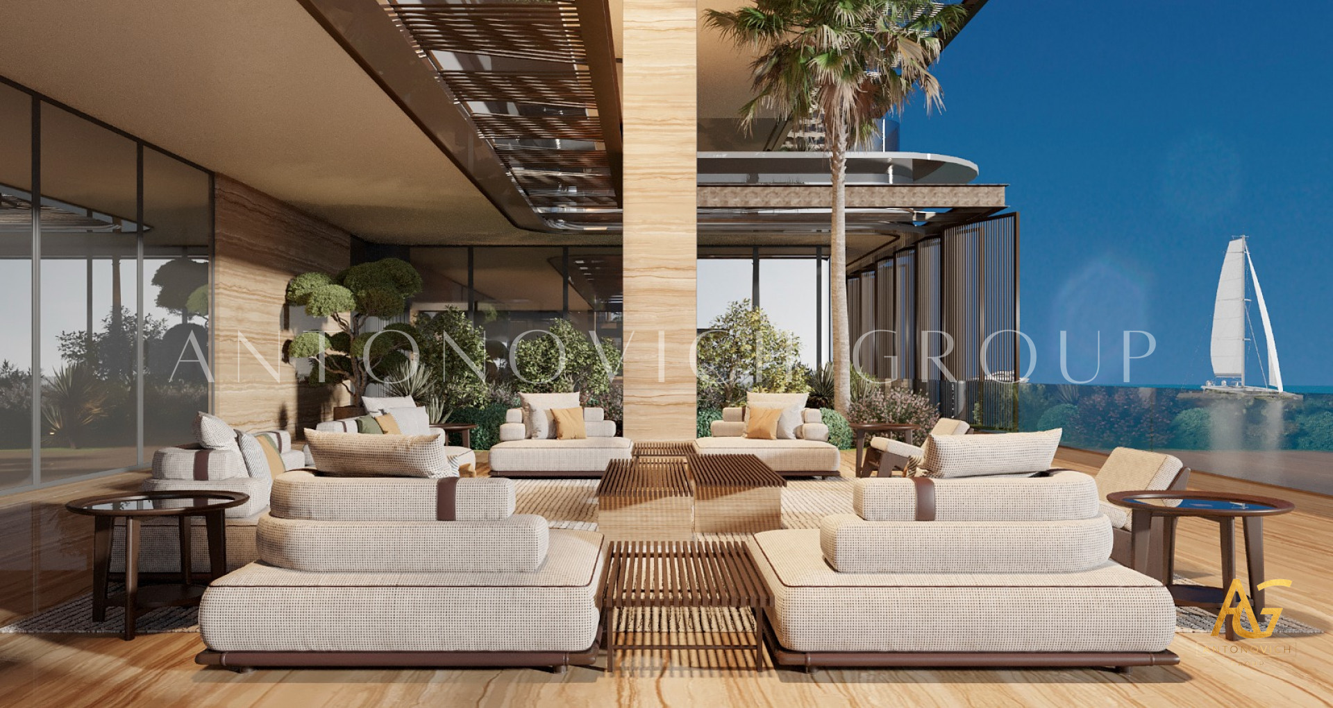 Residents of Antonovich Group's creation on the World Islands are treated to an ever-changing canvas of panoramic views and breathtaking sunsets. The exteriors are thoughtfully designed to maximize these natural wonders, ensuring that every moment spent outdoors is a celebration of the surrounding beauty.