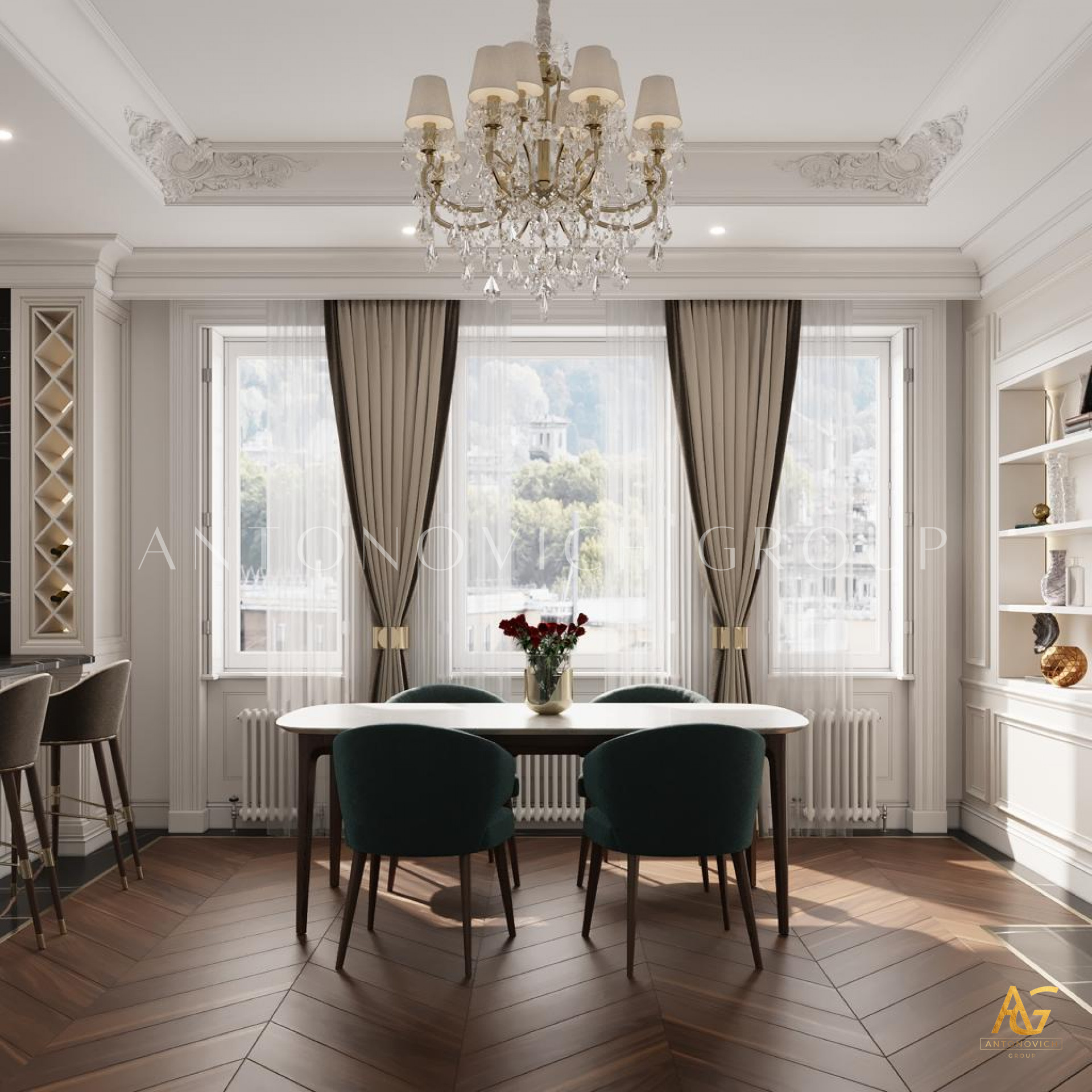 Antonovich Group's portfolio boasts a diverse range of apartment renovations, from chic and minimalist to opulent and grand. The firm's design team, composed of highly skilled and experienced professionals, possesses an innate talent for crafting tailored design solutions. By integrating state-of-the-art technology, innovative materials, and the latest trends, they create visually striking interiors that exude elegance, functionality, and a sense of timelessness.