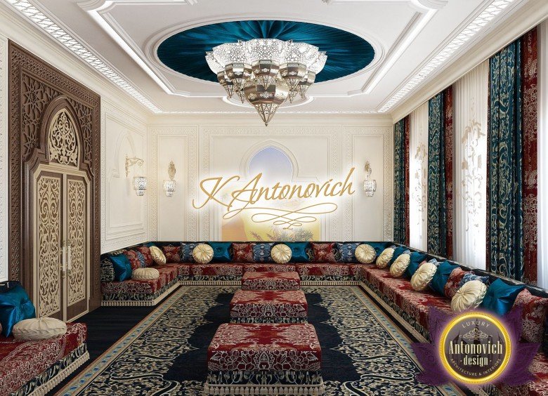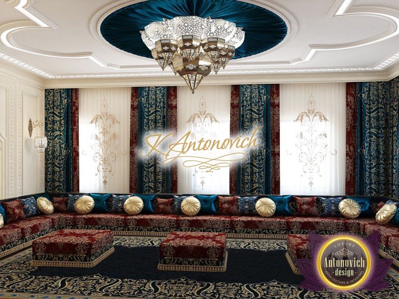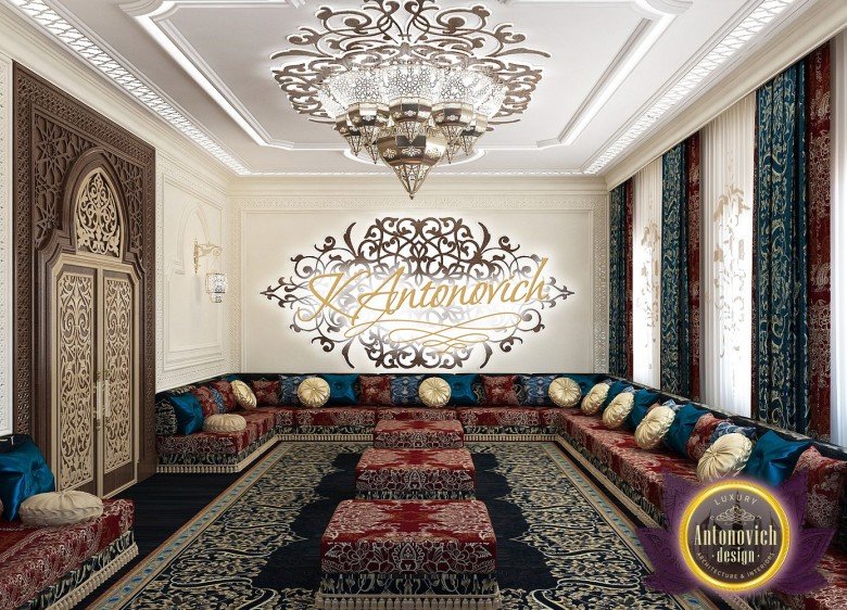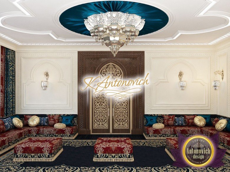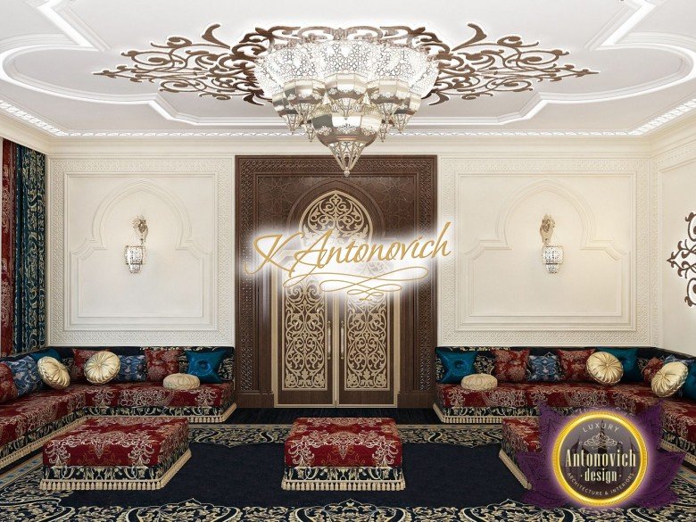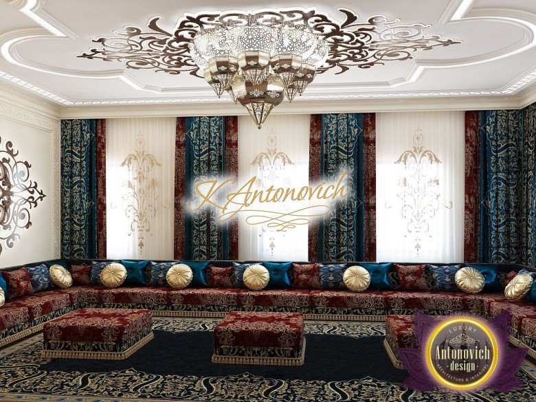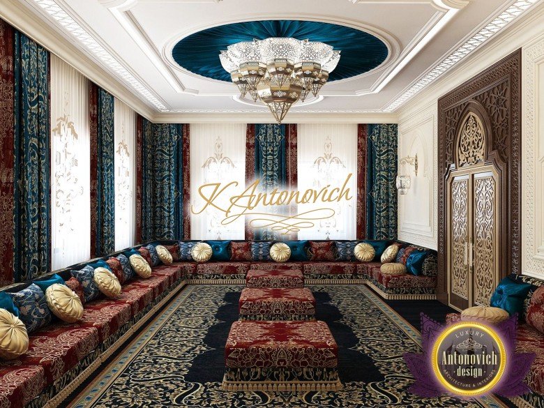 تصميم المجلس العربي في المملكة العربية السعودية من استوديو لاكشري أنتونوفيتش ديزاين هو تحفة جديدة للمصممة الموهوبة كاترينا أنتونوفيتش. حيث تستحوذ الثقافة الشرقية الرومانسية والغامضة على القلوب بسحرها ومزاجها الخاص من الراحة والرقي. يقدم استوديو التصميم في المملكة العربية السعودية أفكارًا جميله ومذهلة للمجالس والتي تعكس أفضل تقاليد الماضي والاتجاهات الجديدة في المستقبل. فقد أصبح هذا التصميم الداخلي المشرق والغني زخرفة جميلة للفيلا الفاخرة.