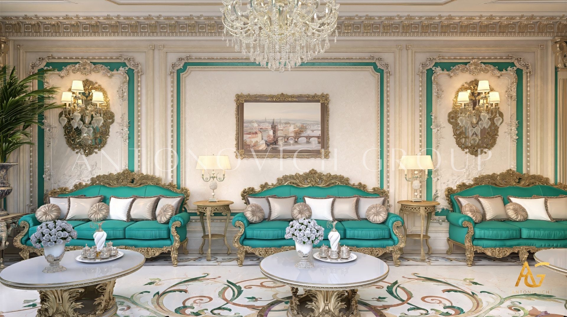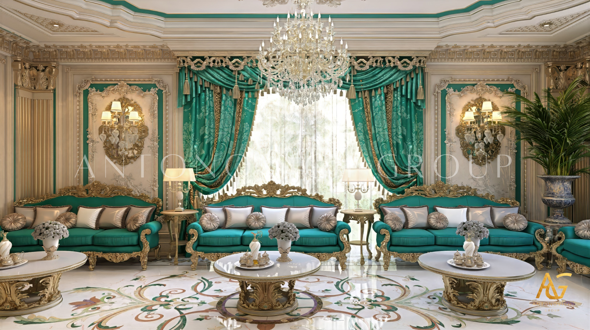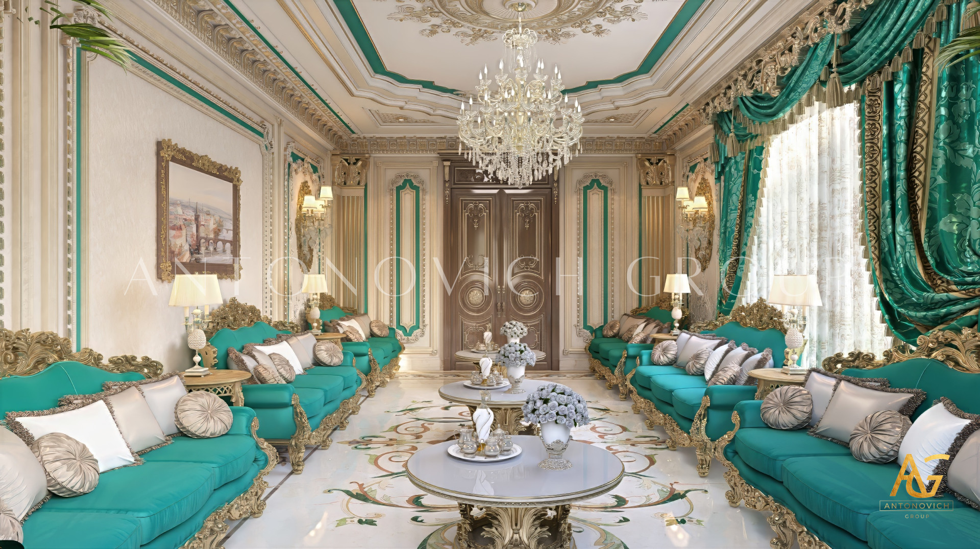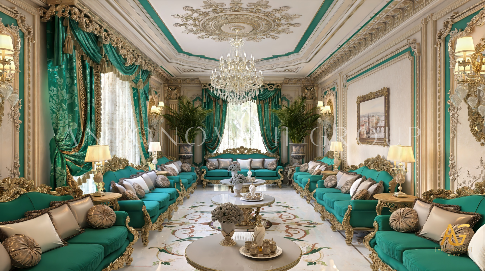 معظم تصميمات المجالس العربية لها متطلبات صارمة للغاية ، لا سيما من حيث التفرد والرقي ، ومجموعة فاخرة للغاية من تصميم الأثاث ، والأثاث والديكورات المخصصة. هذا هو السبب في أنه من المهم للغاية اختيار أفضل فريق تصميم داخلي يقدم خدمات كاملة وتطويرًا لجميع إجراءات التصميم الداخلي. وتشتهر لاكشري أنطونوفيتش ديزاين بتجهيزاتها وتصميماتها الداخلية الفاخرة. حيث لديها صالة عرض أثاث خاصة بها ، بالإضافة إلى مصنعها الخاص وتصنيعها ، والذي ينتج أثاثًا عالي الجودة ، بالإضافة إلى تصميمات أثاث مخصصة مناسبة لأي تصميم داخلي لمجلس عربي. يعد هذا المجلس العربي المذهل من أفضل تصميمات المجالس التي أنشأها الفريق لأنه يجسد مزيجًا مثاليًا من الأناقة والرقي في جميع أنحاء المكان . يشتمل هذا التصميم الداخلي للمجلس العربي أيضًا على ثريا مخصصة وترتيب إضاءة حيث يستخدم ثريا كريستالية كبيرة الحجم للغاية مع لمسات مثالية من الذهب المعدني على قاعدتها. تتميز أيضًا بتصميم سجاد كبير جدًا مع تأثير ثلاثي الأبعاد في المنحوتات الفنية والبطانة بقاعدة مركزية أرجوانية. ألقِ نظرة على الفن المعقد والبطانات على جدران ودرابزين الجبس لترى كيف تم تعزيز التصميم الداخلي للمجلس بالكامل بهذه التفاصيل المذهلة والأنيقة. ولقد ملأت اللمسة المثالية الذهبية أناقة وبريقًا يجب تحقيقهما على كامل الإعداد الداخلي. فقد كان تزيين التصميم الداخلي للمجلس العربي مهمة صعبة ، ولكن فقط فريق التصميم الداخلي المحترف والموهوب لديه القدرة الكاملة على أداء البريق والأناقة المثالية التي ستتجاوز توقعات كل عميل.