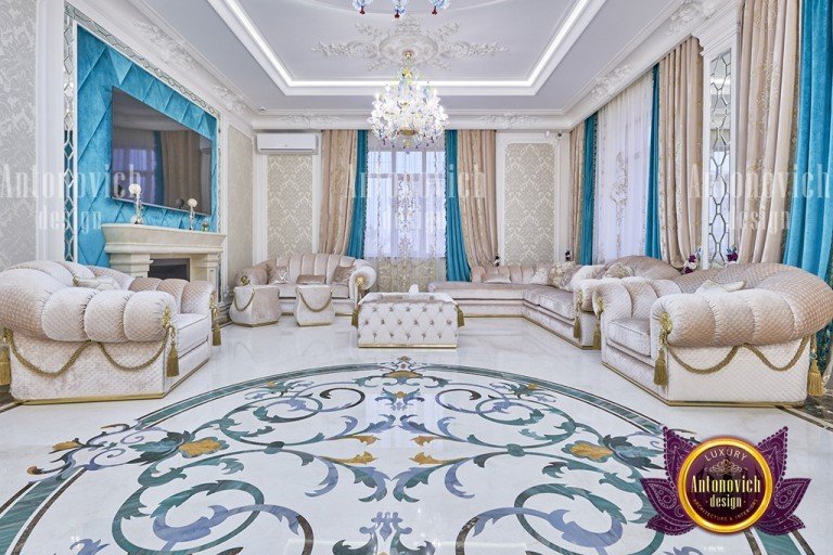 اللون: لوحة الألوان المختارة هي الأبيض والأزرق والذهبي وتوفر هذه الألوان معًا لوحة رائعة من الرقي
