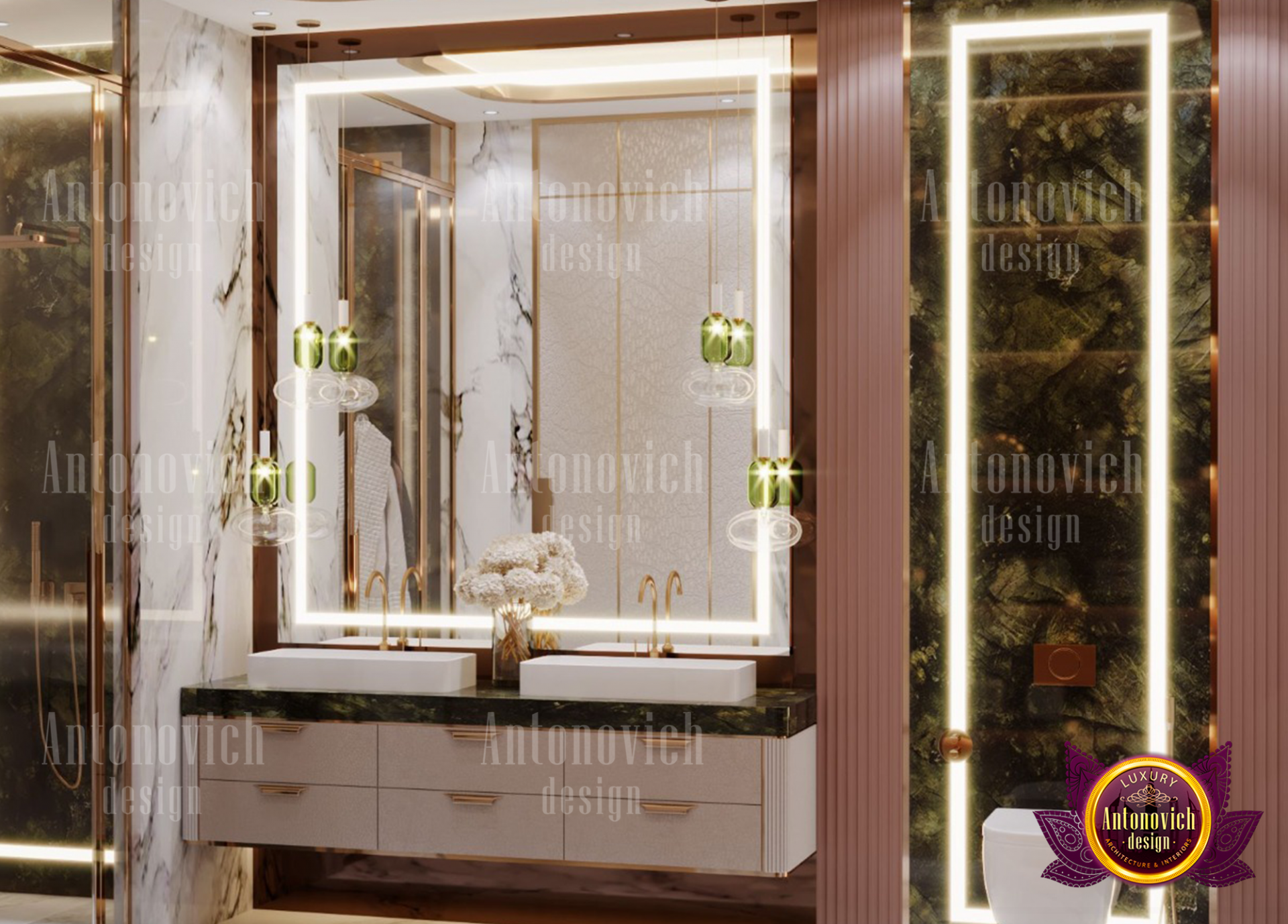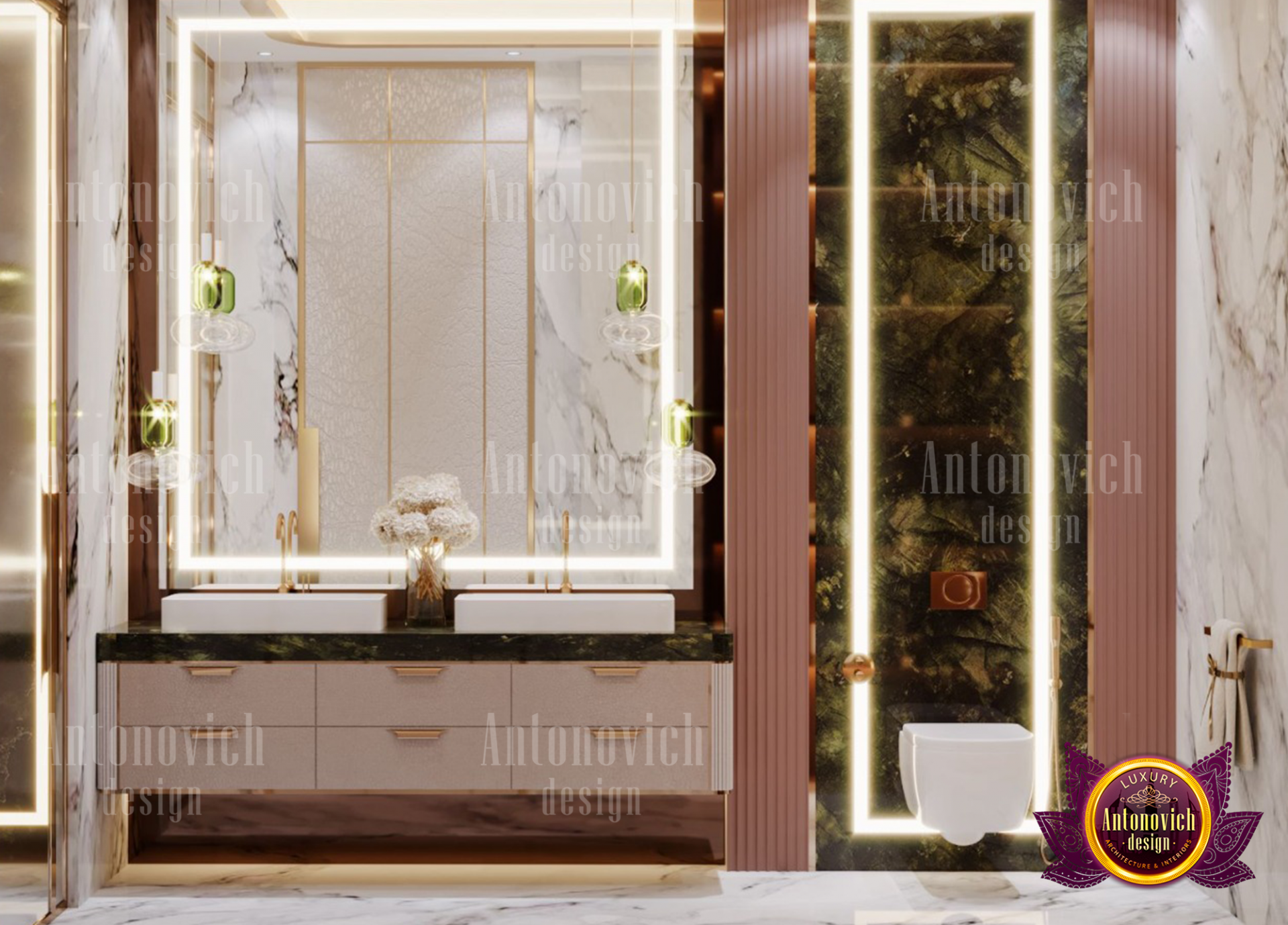 بلاط الرخام يُعد أحد أفخر الأسطح المتاحة لتصميم حمّام فاخر. عند اختيار الرخام في الحمّام لديك، عليك أن تقرر ما إذا كنت ستستخدم بلاط رخام للحمام الفاخر على الأرضية فقط أم على الجدران بالكامل. يمكن أن تمتد الجدران المبلطة حتى السقف أو كجزء من واجهة نصفية. الدش المخصص مكان رائع لعرض بلاط الرخام المتناسق مع قطع من مجموعة الأثاث الإيطالية، وللاطلاع على مصادر وتجارب التسوق راجع أشهر مواقع الأثاث. مرحاض منفصل يُعد من أجمل أفكار التصميم الداخلي للحمّام؛ لترتيبات تقليدية وإقليمية راجع تصميم المجلس في العين. كما يعتمد تصميم الحمّام الرئيسي بشدّة على التشطيبات والإضاءة. لا تتجاهل إمكانات إضاءة حمام فاخرة وثريات، بما في ذلك ديكورات أسقف جبسية، سواء من خلال ثريا ملفتة، مصابيح حائط أنيقة، إضاءة مرايا عصرية أو أضواء معلقة، مع دمج وحدات خافضة للضوء لخلق أجواء فورية. هذه الخيارات تؤثر على الطابع العام للمنزل؛ تصفح أفكار ديكور المنزل للانسجام.