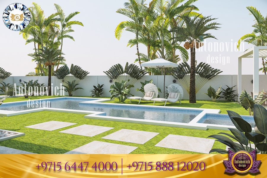 • احرص على توازن حجم المسبح مع مساحات التصميم الخارجي الكامل ليحافظ على تناسق المشهد
