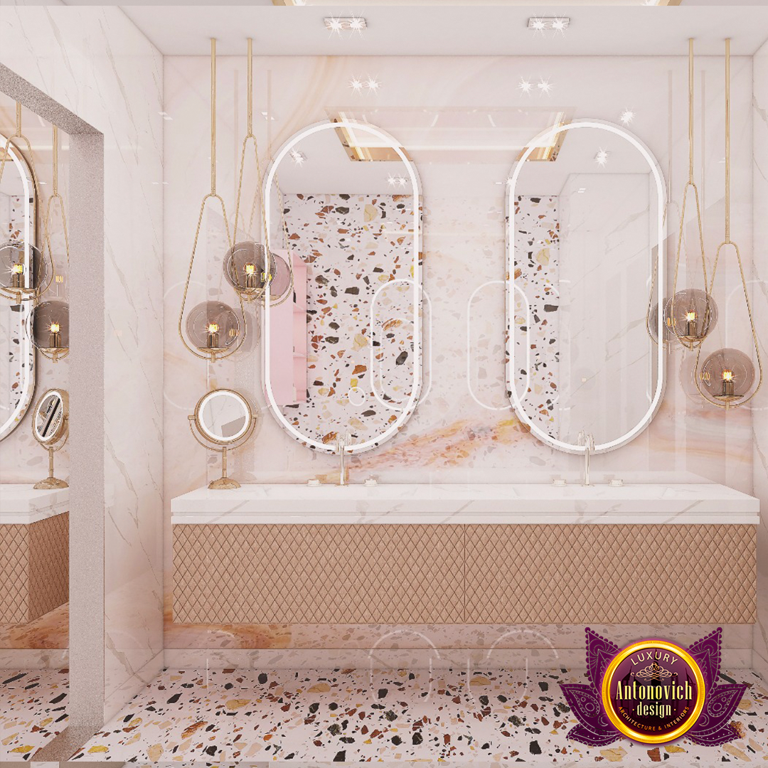 حوض الاستحمام والخزائن والأرضيات وزخارف الجدران كلها بنفس الدرجة من اللون الوردي، ما يخلق تصميم حمام داخلي فاخر ومتوازن. راجع كتالوج مجموعة فلورنس للتركيبات المتطابقة. من الضروري في التصميم الداخلي أن تحدد الدرجة اللونية التي تريدها حتى لا يبدو منزلك مزدحماً. كما أن تصميم الحمام الفاخر بخطته الوظيفية يمكّنك من التركيز على الاسترخاء. وللاستفادة من حلول سبا احترافية، اطلع على تصميم داخلي أنيق لسبا. الموضوع العام لتصاميم حمامات فاخرة سيأسر اهتمامك؛ ويمكنك أيضًا مراجعة دليل تصميم الحمامات الفاخرة لتطبيقات عملية. أنطونوفيتش ديزاين (Antonovich Design) الفاخرة هي الاسم الوحيد الذي يتبادر إلى الذهن عندما يتعلق الأمر بالتصميم المعاصر.