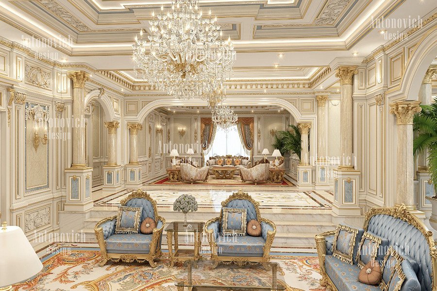 نقدم تصميم داخلي فخم في دبي يمثل ذروة الأناقة في أجواء كلاسيكية تعكس إحساساً مثالياً بالفخامة. مع مزيج راقٍ من الدرجات اللونية من الجدران البيج والتفاصيل الذهبية الفنية والنقوش، نُجسِّد كل عمل جدارى وأعمال جبس بمظهر مليء بالبريق والأناقة. اختيار إضاءة ديكور داخلية فاخرة مهم لإضفاء مزيد من البريق والرقي؛ لذا اعتمد فريق أنطونوفيتش ديزاين (Antonovich Design) تركيب ثريا كريستال فاخرة مصنوعة من زجاج كريستالي فني وساق معدنية ذهبية تمنح المساحة إشراقة كاملة. غالباً ما تستلهم تصاميم الثريات من تصاميم كريستال سواروفسكي. نقدّم أيضاً خيارات معاصرة — اطلع على أمثلة التصميم الداخلي الحديث الأنيق.