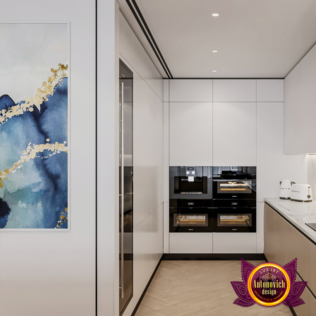 مطبخ يحمل طابعاً حديثاً ومعاصراً! للاطّلاع على أفكار توزيع الشقق، شاهد دليل تصميم الشقق العصرية. هذا التصميم الفاخر من تصميم داخلي لمطبخ من أنطونوفيتش ديزاين (Antonovich Design) يضم كل ما قد تحتاجه في المطبخ: أناقة، رقي، ورفاهية. هذا التصميم الداخلي الجميل يفيض بالأناقة والجمال. يمكنك الاطّلاع على تصاميم أثاث فاخرة في دبي لرفع مستوى الفخامة في المساحة.