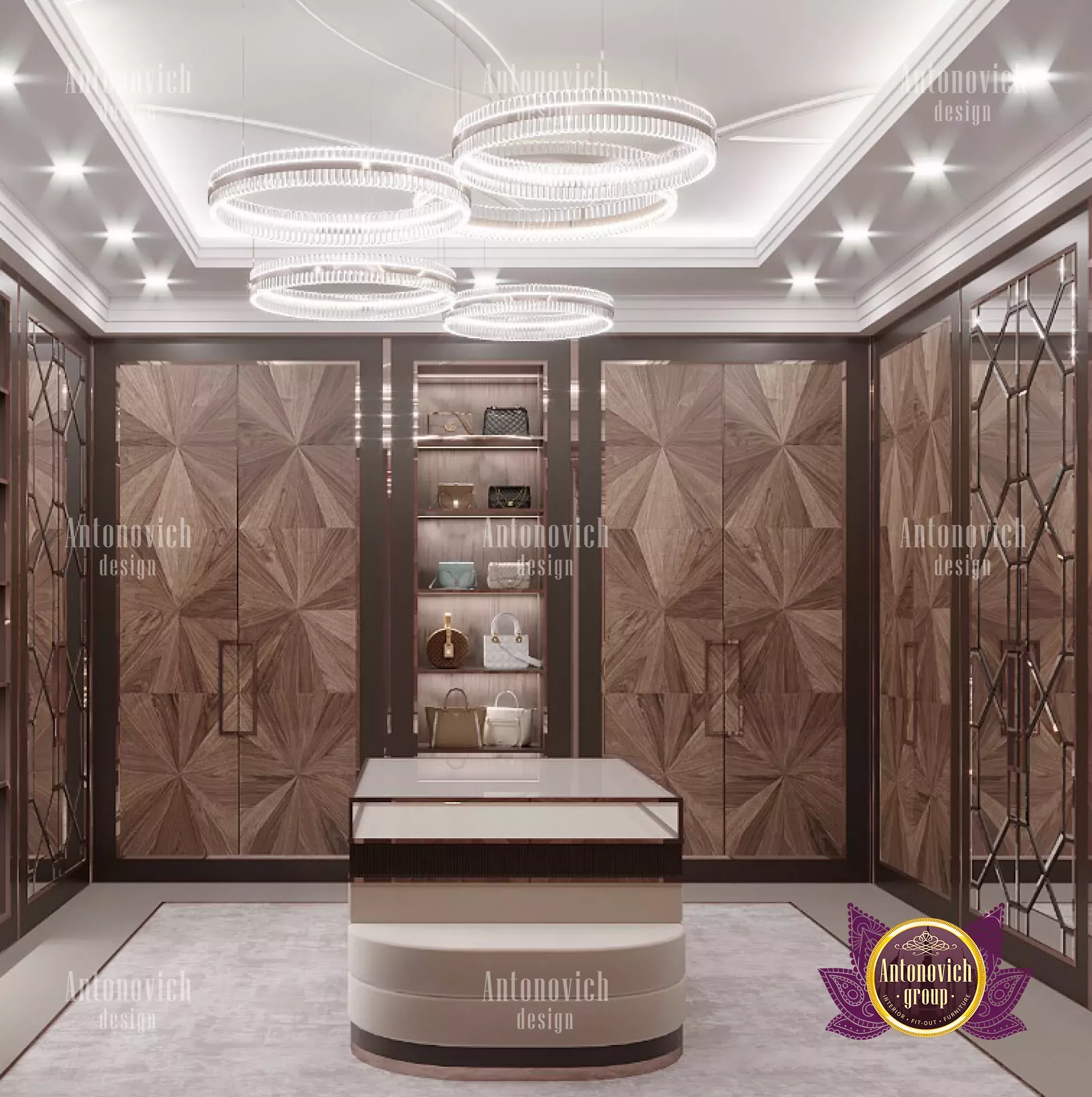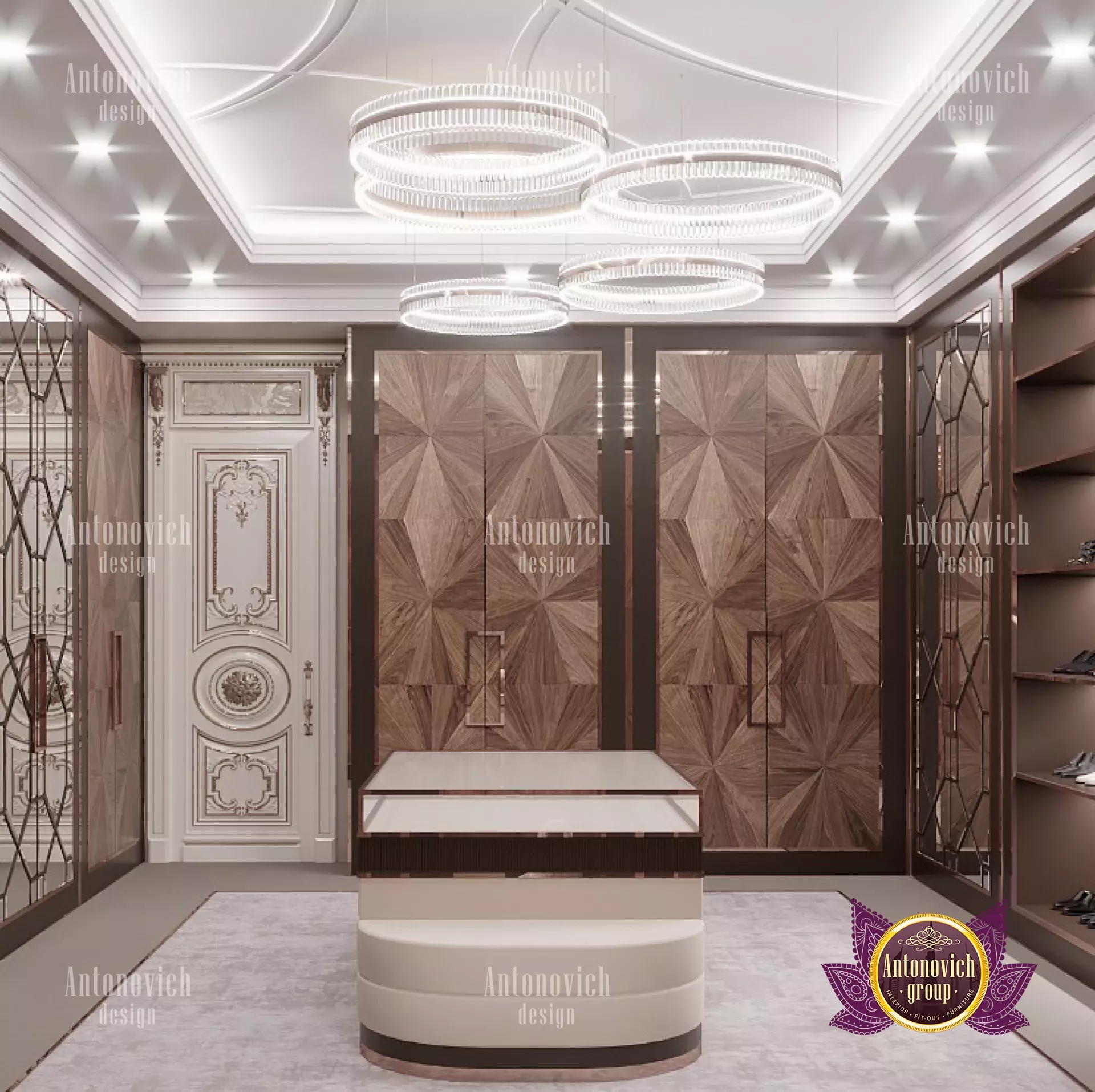 إنّ اللمسة النهائية الذهبية تضيف أجواء فخمة إلى غرفة تبديل الملابس الفاخرة في دبي. تتضمن المساحة مرآة كبيرة لغرفة الملابس تتيح لك ارتداء ملابسك اليومية بأناقة ورشاقة. مع هذا التصميم البني، التفاصيل خلّاقة. بالطبع تُضاف لمسات ديكور فاخرة لتسليط الضوء، وحتى المشاهد المنزلية الأنيقة تدمج بين الفخامة والراحة. بفضل الأثاث الرفيع والديكور وملامح الجدران المميزة، تمتلك هذه الغرفة شخصية فريدة. تم تصميم أثاث غرف ملابس فاخرة دبي ليمنح المكان إحساسًا فخمًا. المحيط العام لتصميم غرفة تبديل ملابس فاخرة دبي رائع أيضًا. لن تكون مشكلة عند الاستعداد هنا بفضل الترتيب الجذاب. فقط مجموعة أنطونوفيتش يمكنها تحقيق ذلك من أجلك؛ إنها تُبرز الجمال وتتفرد بأناقتها من جميع زوايا غرفة التبديل. سترغب في قضاء اليوم كله هنا! تم تنفيذ الأثاث الراقي في دبي بواسطة فريق مجموعة أنطونوفيتش بدقة وذوق. كل قطعة صُنعت بكرامة ورقّة. جزء من ديكور هذه الغرفة هي ثريا بارزة تجذب الأنظار بشكل ملفت. ولتحسين الإضاءة والتوزيع اضطلع على نصائح إتقان فن الإضاءة الداخلية.