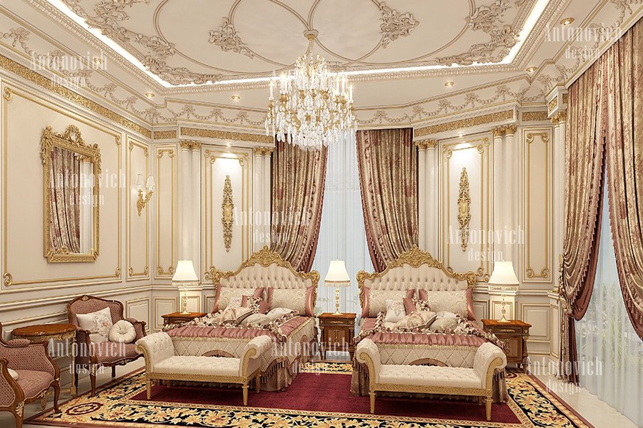 في تصميم غرف نوم الأطفال وفق مفهوم تصميم داخلي كلاسيكي لغرف الأطفال، تقوم أنطونوفيتش ديزاين (Antonovich Design) بتطوير إعداد كامل للتصميم الداخلي مع تنفيذ وتصميم داخلي احترافي وتوازن يتوافق مع طراز الغرفة. نقدم تصميم غرف نوم الأطفال الفاخرة مع اهتمام كامل بالتفاصيل. هذا المثال هو تصميم غرف نوم توأم للأطفال ويشتمل على سريرين توأم يزدانان بزخارف فاخرة وأنيقة. اخترنا جميع المواد من فئة النخبة والتشطيبات عالية الجودة لكل قطعة أثاث، الأقمشة، ستائر فاخرة لغرف الأطفال والسجاد لضمان أفضل نتيجة. تأكدنا أن تصميم غرف نوم الأطفال سيحقق أجواء استرخاء مثالية ومزاج مريح. للمشاريع الدولية المماثلة راجع تصميم شقة في أنجولا. للمشاريع المشابهة راجع modern apartment bedroom fit-out.