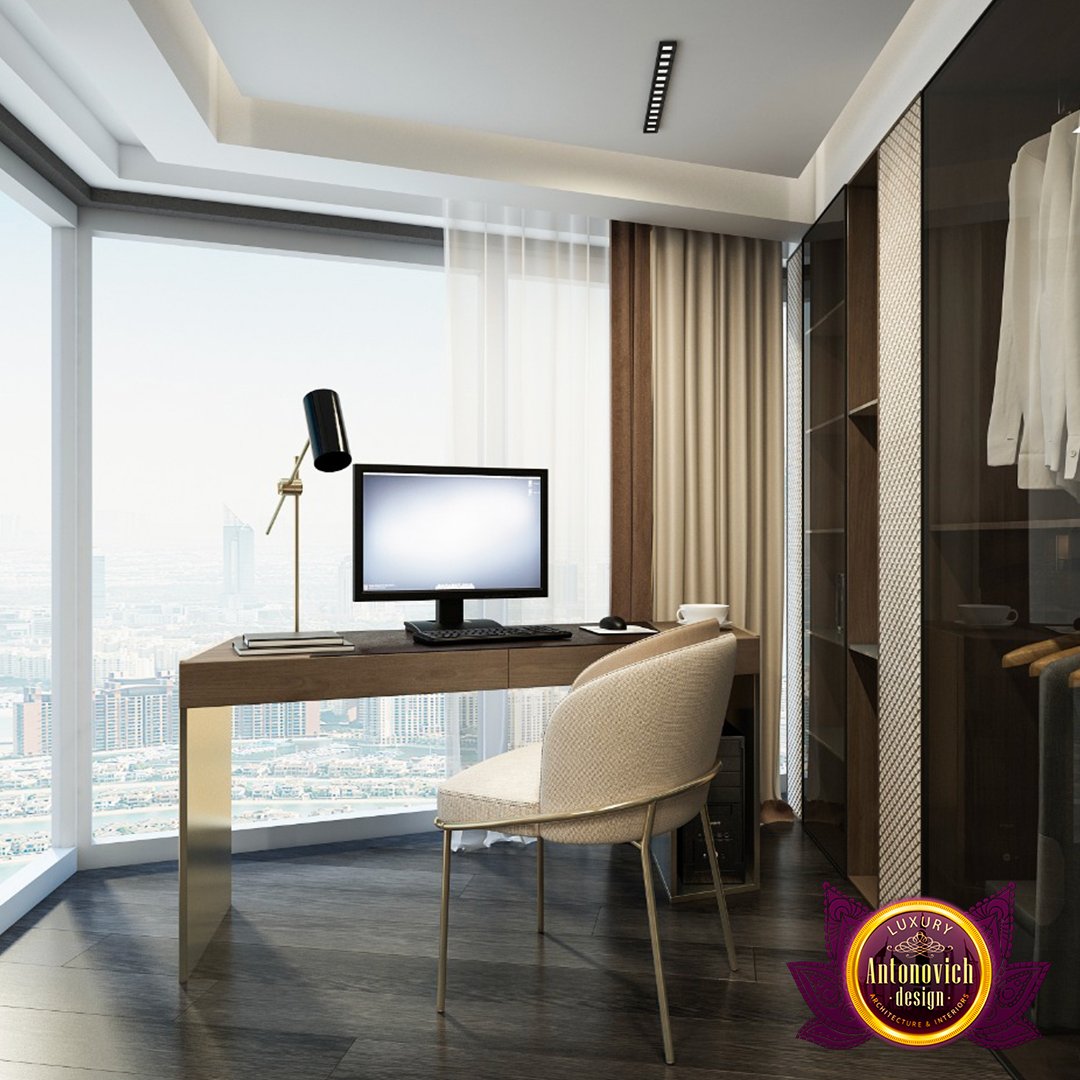 في هذا المشروع الذي نفذته أنطونوفيتش ديزاين (Antonovich Design)، استُخدمت ألوان هادئة لخلق أجواء مريحة ومحفزة على الاسترخاء. لدى المكتب أعمال دولية مثل التصميم الداخلي في أستراليا. قطع الأثاث المختارة تشكل أثاث غرفة نوم مع مساحة عمل متكاملة تتيح لك الجلوس براحة. وقد نفّذت الاستوديوهات مشاريع سكنية راقية مثل شقق فاخرة في دبي. التصميم ينسجم مع تصاميم غرفة المعيشة العصرية لخلق مظهر منزلي موحّد. للمزيد من الإلهام الداخلي، راجع أيضاً صورة مطبخ من الداخل. كما استلهمنا بعض التفاصيل من نغمات استقبال فندقية وطرق تأثيث من فن غرف الجلوس الفندقية. المساحة الترحيبية في وسط الغرفة مع الأرائك والكراسي تستلهم أفكاراً من طرق تزيين غرفة الجلوس. الأرفف والتنظيم يوفران أرفف ومخزن لغرفة النوم والمكتب للحفاظ على ترتيب المساحة. زد على ذلك، يمكنك الاعتماد على خزائن لغرفة النوم والمكتب لتنظيم الأغراض الصغيرة.