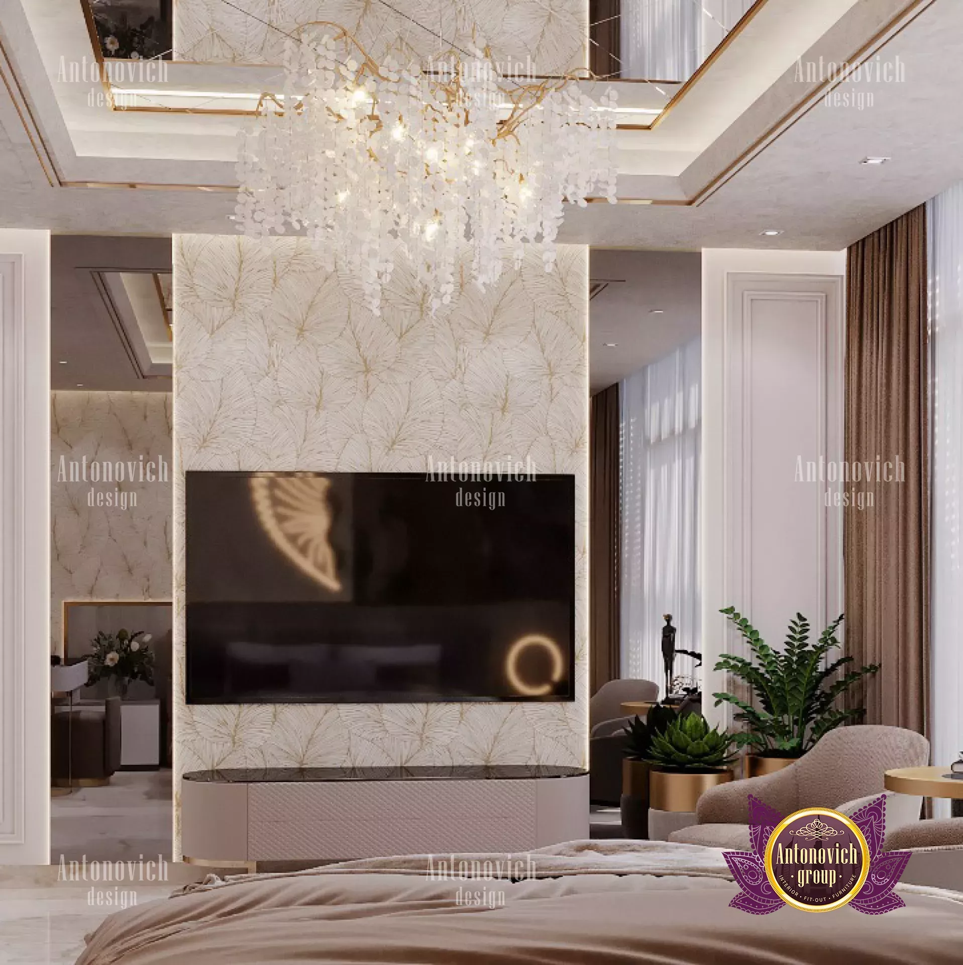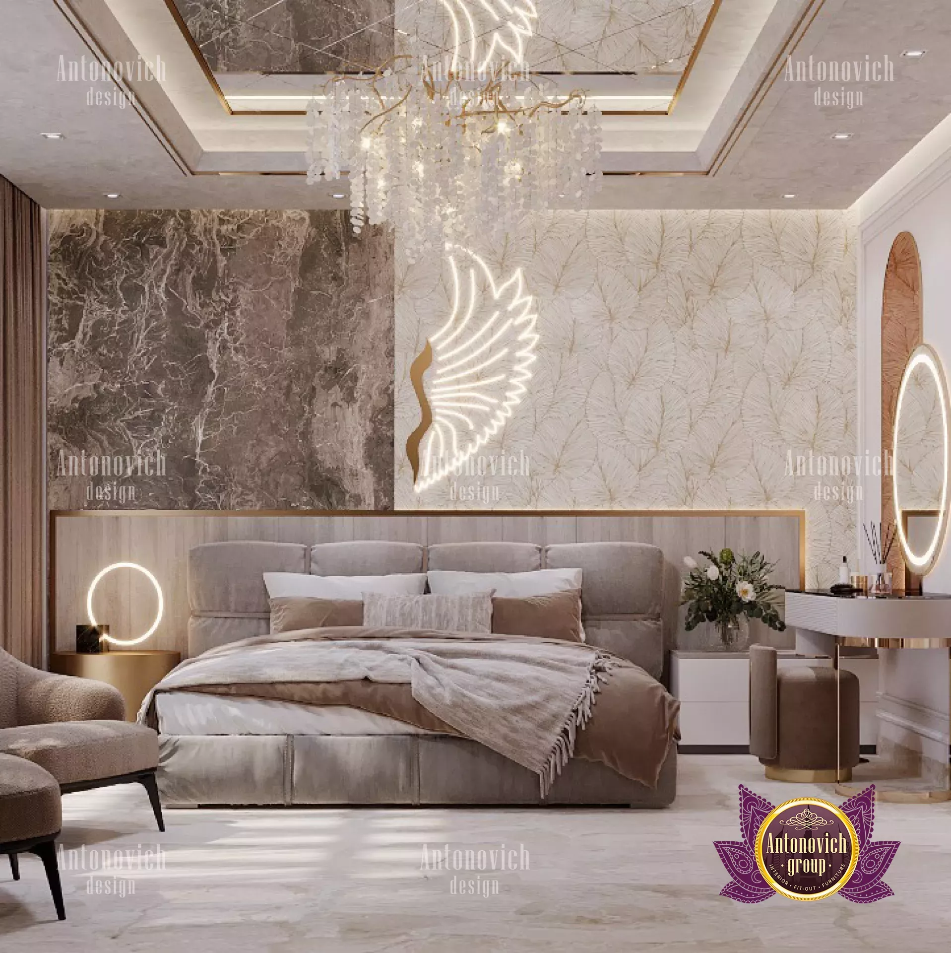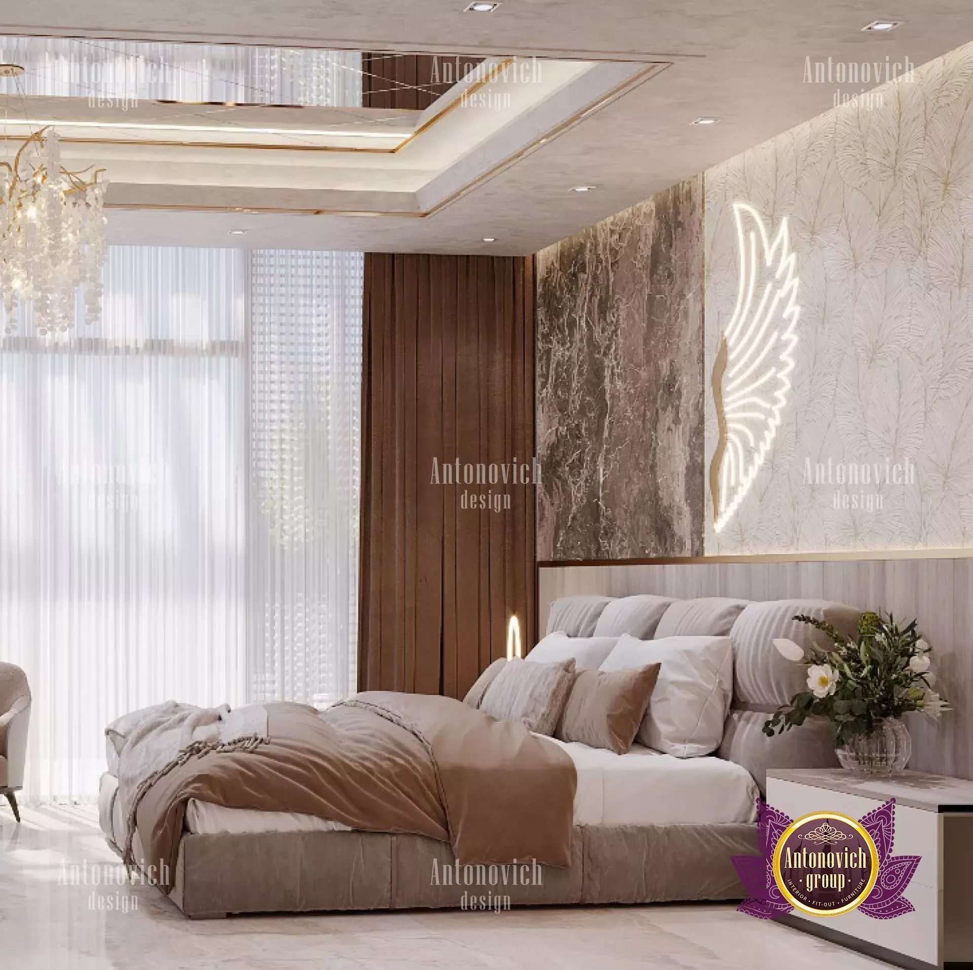 ثيمة بنية فاخرة في غرفة نوم بدبي