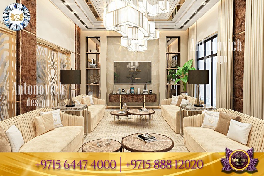 قامت أنطونوفيتش ديزاين (Antonovich Design) بتنفيذ تصميم منزلي أنيق وفاخر لغرفة الجلوس العائلية، حيث يفضّل كثير من مالكي الفيلات اعتماد تصميم مغلق لغرفة الجلوس لحفظ الخصوصية. تُستخدم غرفة الجلوس العائلية عادةً لاستقبال العائلة والضيوف في مناسبات خاصة، لذا فإن اختيار الألوان والمواد والقوام يمثل أساس ديكور غرفة الجلوس العائلية الذي يبني طابع كل جزء من الغرفة.