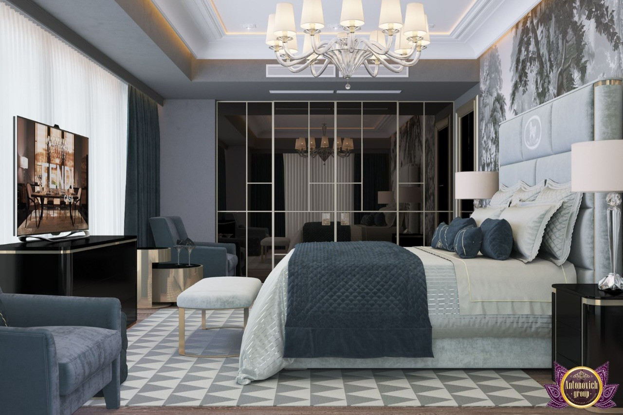 استخدام مرايا لتوسيع المساحات تكتيك مجرّب وفعّال؛ جدار مرآة يضاعف المساحة بصريًا. إذا لم ترغب في مرآة على الجدار كله، علق مرآة فوق لوح الرأس لتعزيز العمق—اللمسة القديمة للتشطيب ترفع مستوى الأناقة. بالإضافة إلى ذلك، تشكّل سجادة ومرايا لتوسيع الغرفة زوجًا عمليًا يجعل الأرضية محسوسة وأقل انقسامًا.