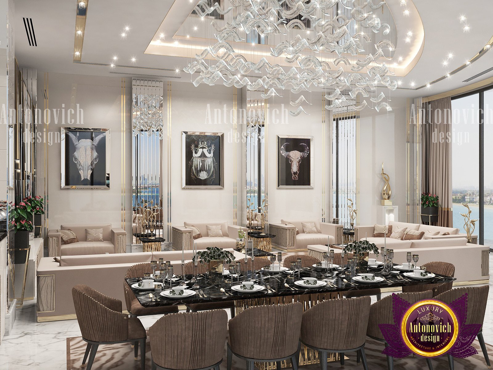 تتضمن الأفكار: تصميم ديكور غرف المعيشة الفاخرة، أفكار ديكور لغرف الطعام الحديثة، تنسيق ألوان لغرفة المعيشة في الإمارات، أثاث فاخر لغرف المعيشة، ديكور غرفة الطعام بأسلوب عصري، تصميم الإضاءة الحديثة لغرفة المعيشة الراقية، ديكور مفتوح لغرفة المعيشة والطعام، مواد وتشطيبات فاخرة في الإمارات، حلول التصميم والتنفيذ في دبي، أفكار تجمع بين الراحة والفخامة وتستلهم تصميم استقبال فندقي كلاسيكي.