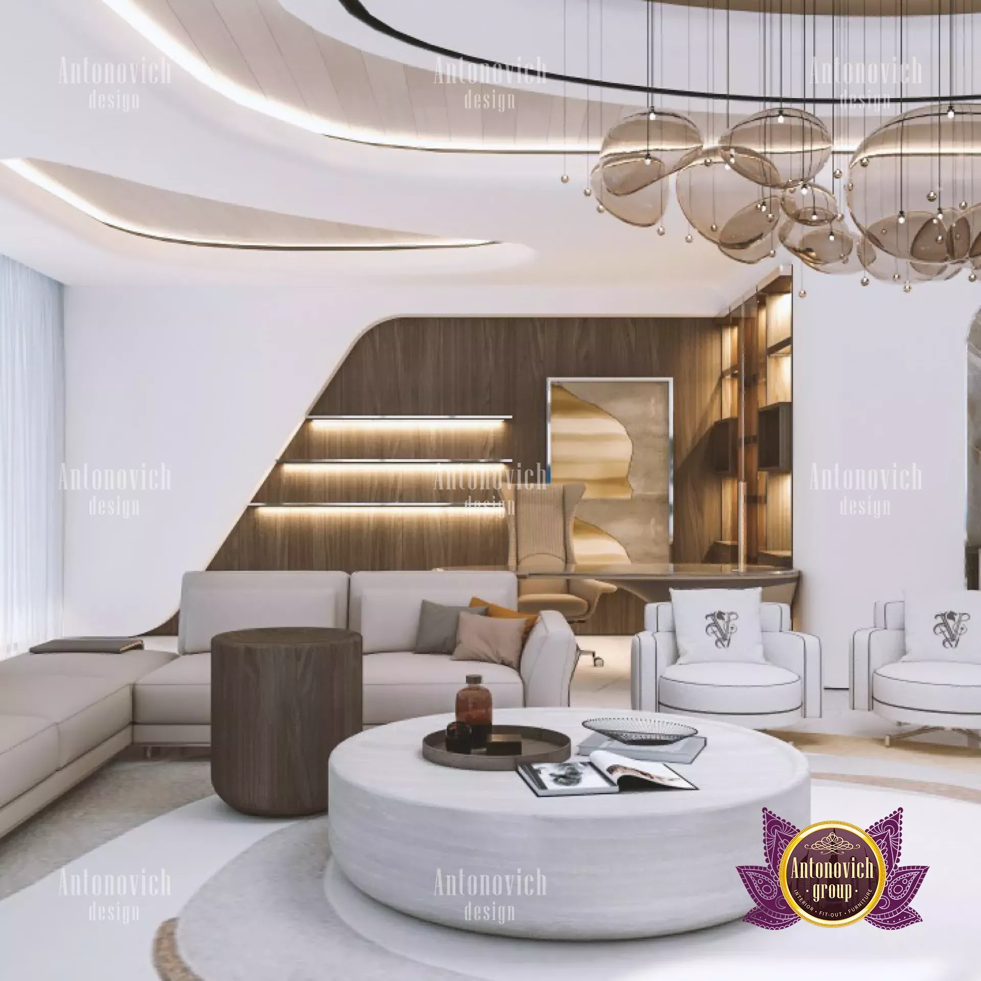 هل ترغب بالعيش في فيلا مبتكرة لكن لا تعرف من أين تبدأ؟ يمكنك بالتأكيد استخدام هذه الصور كمصدر إلهام لمشروع تجديد الفيلا القادم. يمكن للفيلا أن تكون فاخرة ومبتكرة ومرحبة مثل أي مبنى آخر. هذا ينطبق على تصاميم المنازل الرائعة في دبي. يمكنك أيضاً استلهام أفكار من مشاريع إقليمية مثل التصميم الداخلي في طهران. إذا أردت منزلاً مميزاً، فأنت بحاجة لأن يبدأ تصميم غرفك أولاً. لتحقيق مساحة مفتوحة ومنسجمة، يجمع هذا الأسلوب بين لوحة ألوان رائعة، أثاث فخم من دبي، وعناصر ديكور منزلية متقنة. اختيار الأثاث المصمم الفاخر في دبي أمر بالغ الأهمية. يمكن أن تتضمن خياراتك أثاث على الطراز الكلاسيكي. لا تنسَ الحلول العملية للتخزين مع تصميم غرفة الملابس المصمم. للمزيد من الأفكار، اطلع على أفكار وتصاميم غرفة الملابس الفاخرة. يمكنك ملاحظة تناغم الأريكة والطاولات في هذه الصورة وكيف يعكسان البُعد الفاخر للتصميم الداخلي.