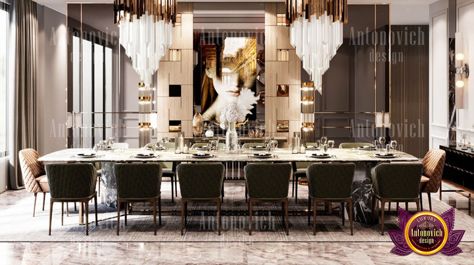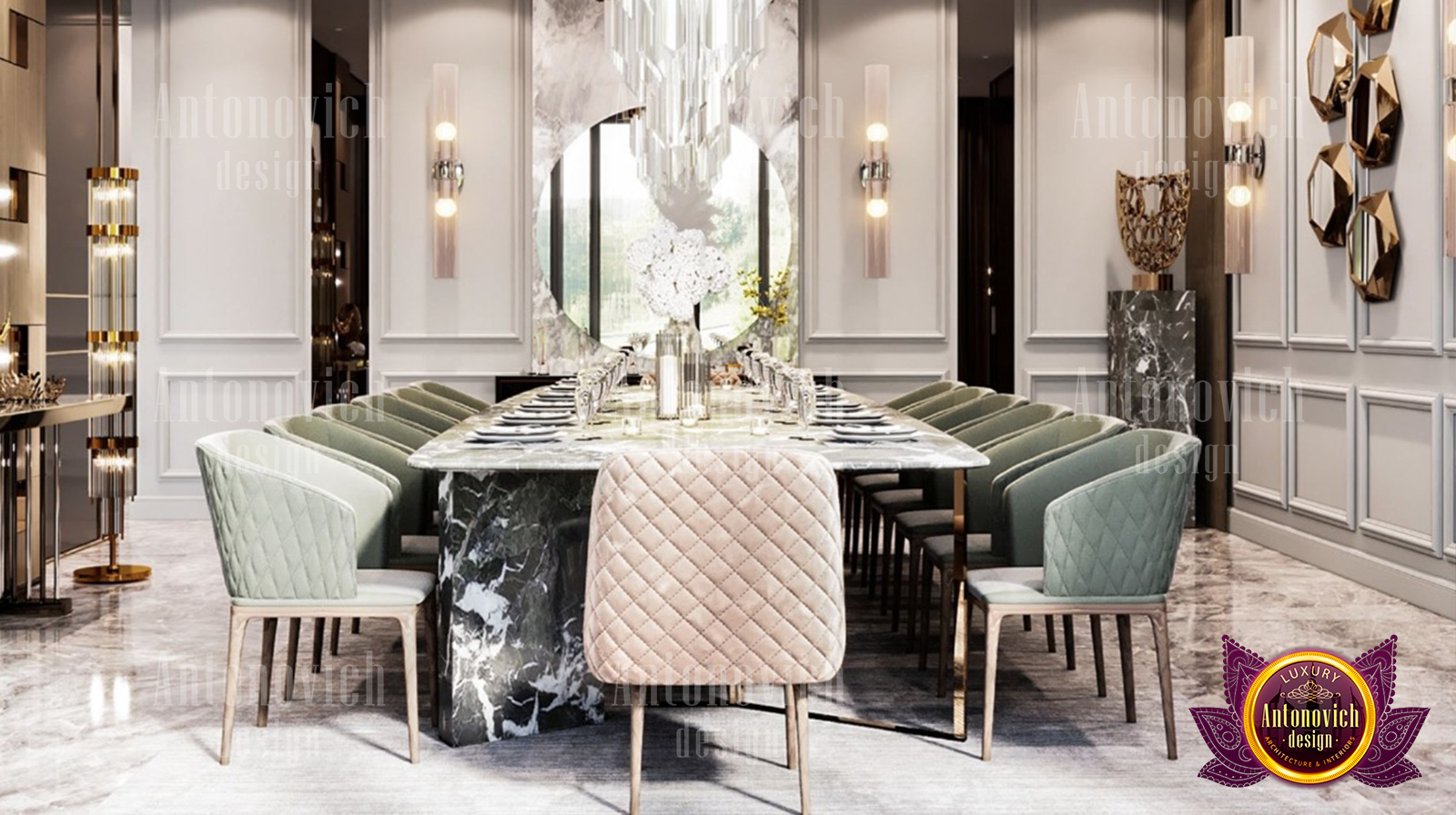 تُضيف التصاميم المريحة قيمة إلى مواصفات الأثاث، فكل تفصيل يحمل فخامة ولمسة راقية. التصميم الداخلي الفاخر يتطلب تخطيطاً واستشارة دقيقة لتتحقق النتيجة المرجوة، من الأرضية حتى السقف. الكراسي والطاولات المنسجمة تمنح الشعور بالكلاسيكية والراحة في آنٍ واحد. التصميم معبّر ومليء بالشخصية والجمال. التصميم الحديث لغرفة الطعام يجمع كل العناصر اللازمة لأجواء مريحة طوال اليوم، مع قطع أثاث وديكورات تضفي فخامة ملحوظة. إذا رغبت بالنصائح، احرص على الاعتماد على شركة تصميم موثوقة مثل شركة التصميم الداخلي في دبي. كما تعاون مع شركة إنشاءات رائدة لضمان تنفيذ مثالي. للاطلاع على مخطط مقترح، شاهد Luxury House Plan Villa 1. النمط يضيف بعداً غامضاً إلى مركز الغرفة، وتُعد غرفة الطعام الكبيرة مثالية للعائلات ذات الأعضاء الكثر.