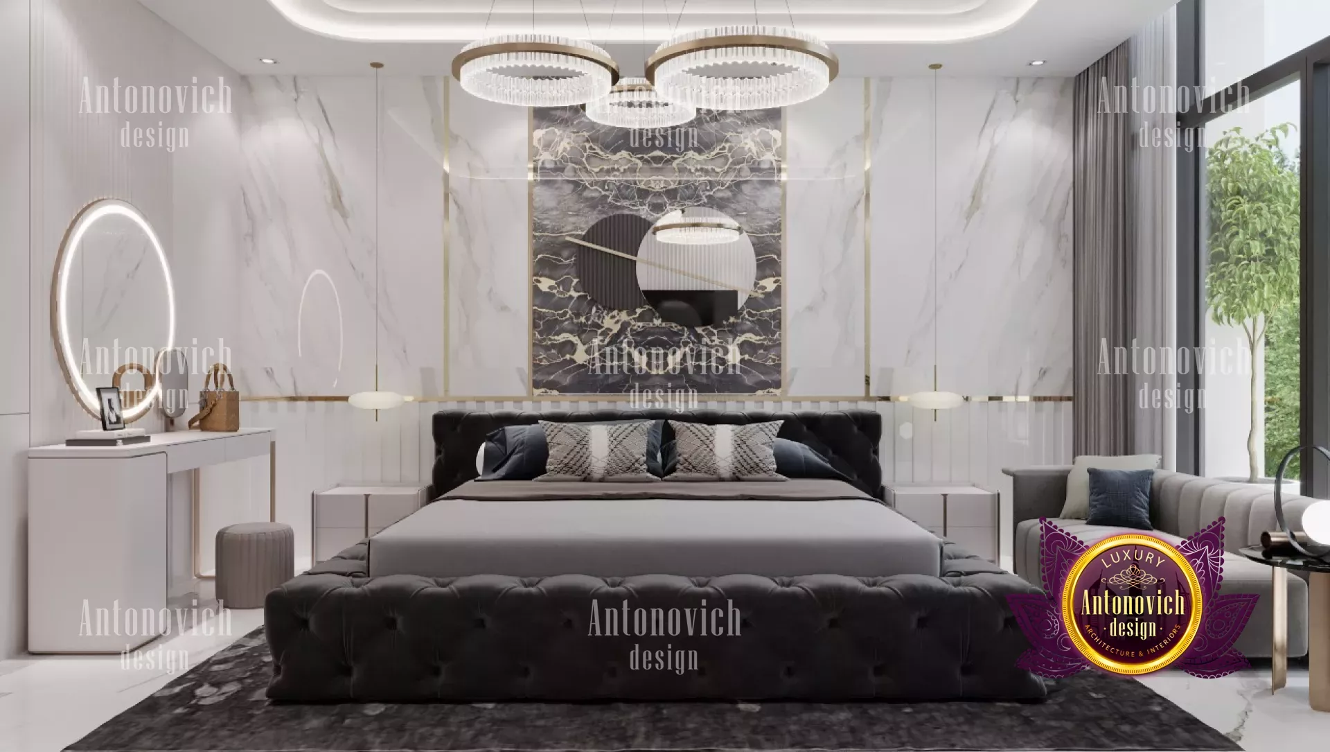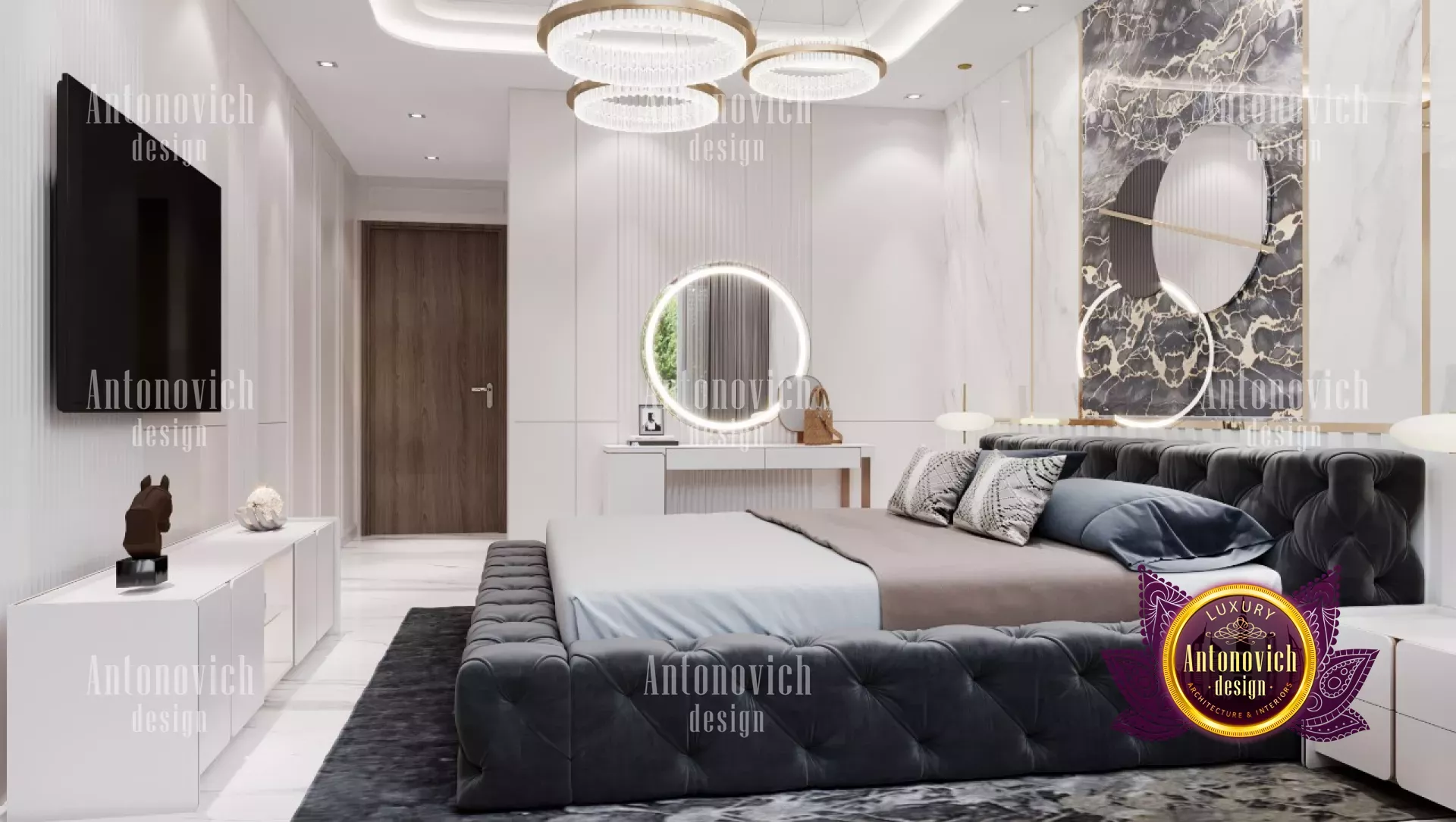 نغمة الجدران الواضحة والبسيطة تضفي أناقة. يضيف أسلوب أنطونوفيتش ديزاين (Antonovich Design) الراسخ المزيد إلى جاذبيته. وبفضل الشكل النظري والتصميم المتقن، يبدو الأثاث الرمادي جذاباً للغاية. تشمل تصميمات الغرفة أيضًا زخارف نوافذ أنيقة وعصرية. إنه ممتاز وحديث ومواكب. تُستخدم أجمل الدرجات دائماً في تصميمات الغرف العصرية. هذه المساحة الواسعة للغرفة مطلية بدرجة رمادية غنية. لتسليط الضوء على جودة تصميم غرفة النوم الرئيسية تم اختيار عدة درجات من الرمادي. نقدم أفكار تصميم غرفة نوم فاخرة وتوجيهات تخطيط عملية بما يتماشى مع أسلوب الحياة في الإمارات. للحصول على نتائج مترابطة، نفكر في تخطيط غرفة النوم الرئيسية وربطها بمساحات المعيشة القريبة. نعالج عناصر مثل ألوان رمادية لغرفة النوم، أثاث غرفة نوم فخم، وإضاءة غرفة النوم الفاخرة لتكوين غرفة نوم ماستر فاخرة دبي تلبي توقعاتك. كما نوفر خدمات إدارة مشاريع فلل في لا مير لتنسيق التصميم الداخلي والخارجي بكفاءة.