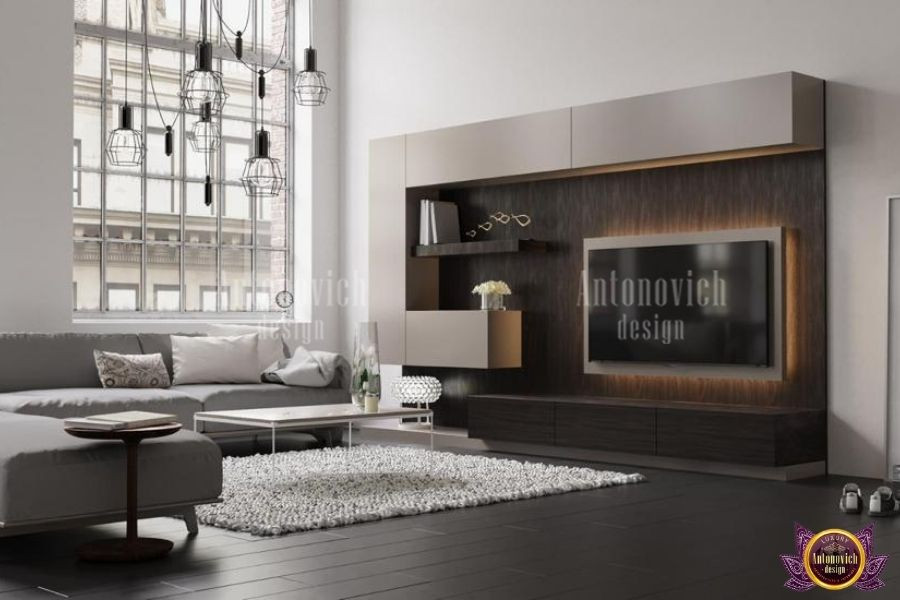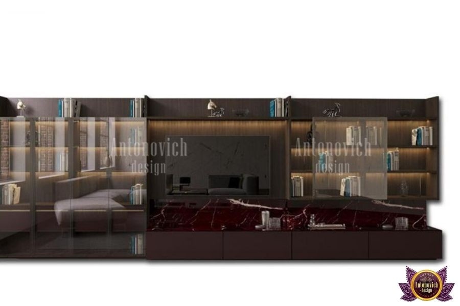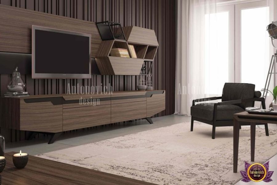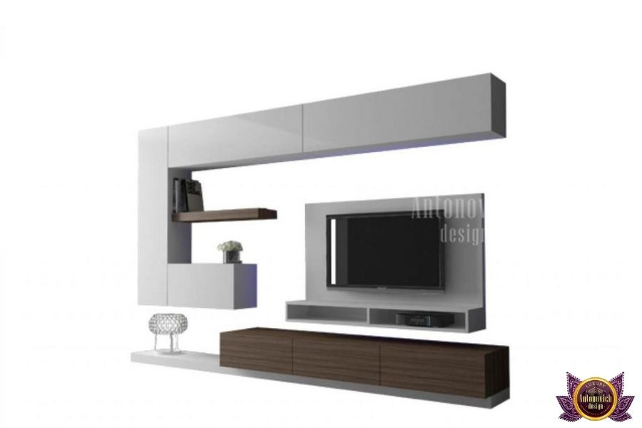 هذه التصاميم الكبيرة غالباً ما تغطي جزءاً واسعاً من الحائط. يمكنها أداء وظائف متعددة، وحامل التلفزيون جزء واحد منها. كما يوحي الاسم، فهي تقدّم فكرة منصة مرتفعة تشبه الدواليب. يوضع التلفزيون في مركز الغرفة عادةً، مع خزائن كبيرة تطل على الواجهات. تشكل مزيجاً من الأدراج والأبواب الزجاجية والخزائن المغلقة القاعدة. يمكن الاحتفاظ بالكتب في الخزائن الجانبية وعرض القطع الزخرفية؛ ويمكنك نقل هذه الجمالية إلى جانب المسبح أو الشرفات — راجع أفكار تصميم المسبح الأنيق — أو اختيار أفكار حمامات مودرن-مينيماλισية متكاملة. وللمزاج الكلاسيكي، يندمج نمط ستامفورد مع هذه الخزائن بسلاسة. كما يمكن اعتماد أفكار تزيين عالمية لعرض القطع الزخرفية بأناقة، أو استلهام تصميم خارجي حديث عند ربط المساحات الداخلية بالخارج. للاطلاع على أمثلة تنفيذية، راجع مشروع تجديد مذهل في دبي.