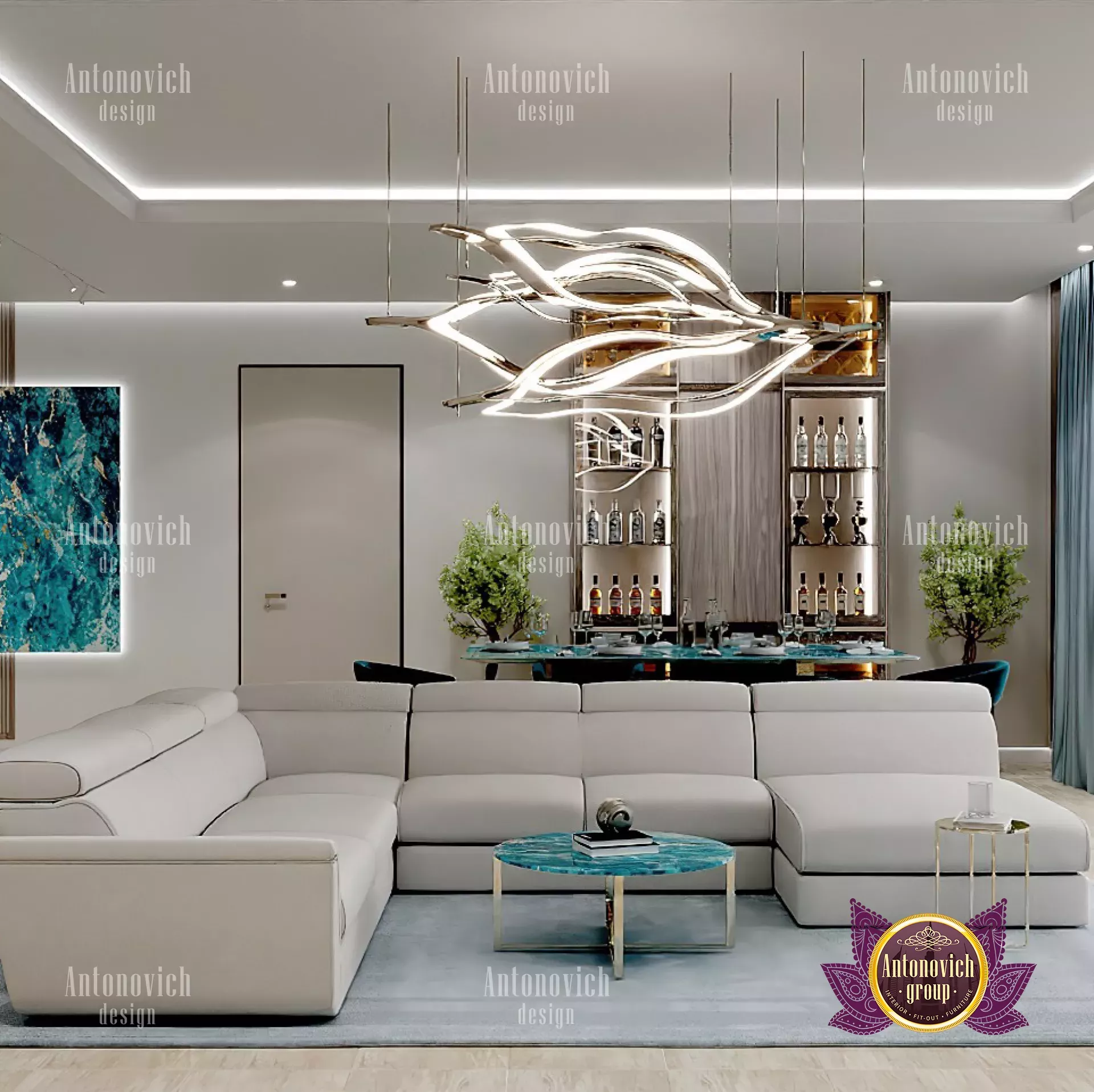 المكان يفيض بهواء مترف. استخدمت أنطونوفيتش جروب (The Antonovich Group) أفضل قطع الأثاث في هذا الديكور، ما يجعل المشهد مثالياً لمن يهتم بـأثاث للراحة المثلى. ابحث عن أثاث فاخر لغرفة المعيشة دبي الذي يكمل هذه القطع؛ الطاولات والكراسي مصنوعة بتصميم متين وأنيق. كما تقدم تصاميم أثاث معاصر حلولًا لتنسيق المساحة. ستجد أعمال فنية مميزة تكمل ديكور غرفة المعيشة الفاخر في دبي، ومشاريع محددة مثل غرفة معيشة فاخرة في جميرا بارك. إطلالة المكان توحي بمستوى فندقي راقٍ، ما يعكس خبرات شركة تجهيز فنادق، حيث تمّت مراجعة كل تفصيلة بعناية، بما في ذلك مشاريع خاصة مثل تصميم المجلس الملكي. استلهم أفكار ديكور غرفة معيشة فاخرة من هذه المجموعة لخلق جو أنيق ومتوازن.