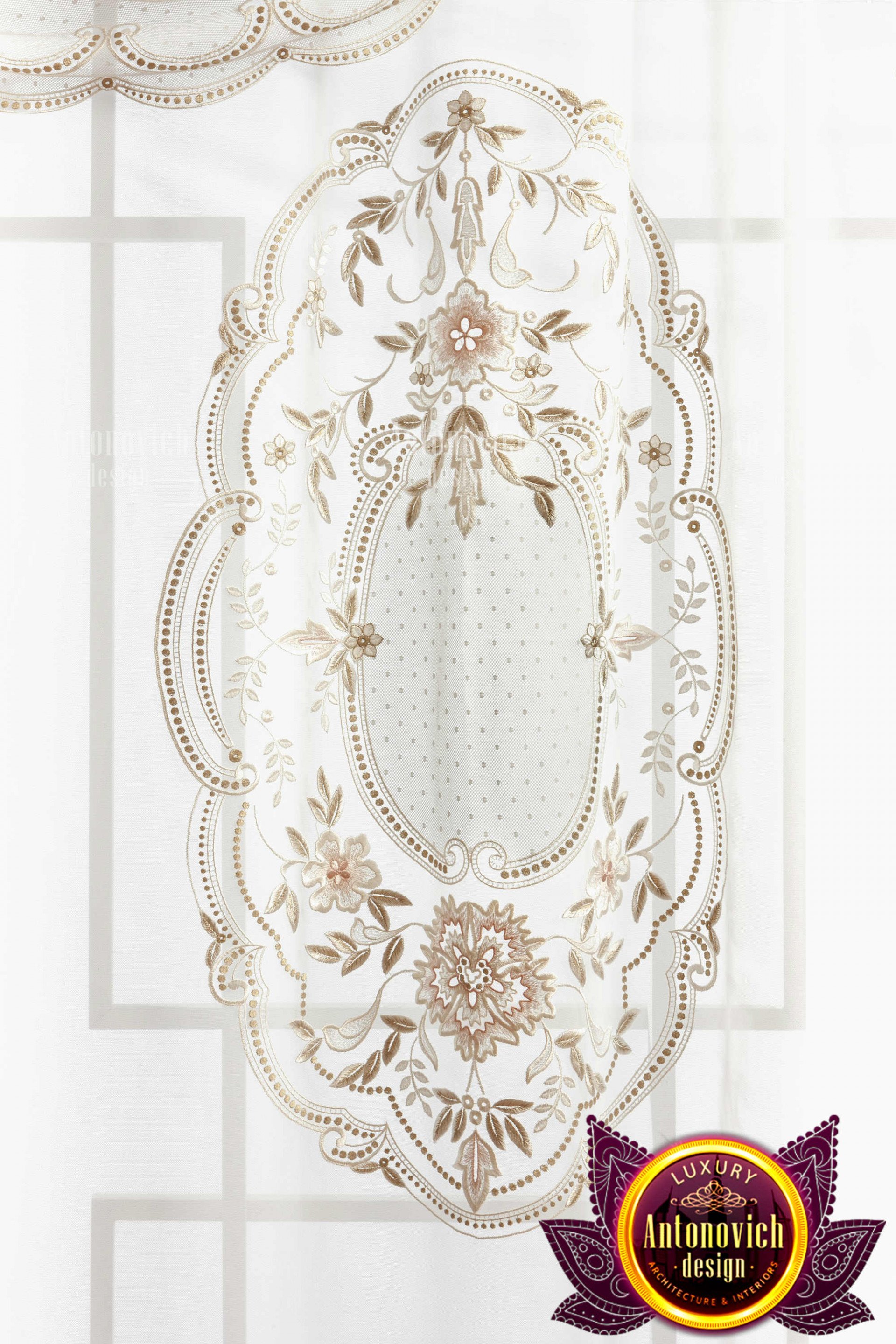 تظل التول والستائر المطرزة من أكثر عناصر الديكور الداخلية شعبية لدى مصممي أنطونوفيتش ديزاين. التطريز يخلق جوًا من الحميمية والراحة في منزلك، والأهم أن هذه الطريقة في نقش النقوش تقاوم الغسيل المنتظم والتلاشي تحت الشمس. عند تصميم التول أو أي نوع آخر من الستائر المطرزة، يسعى الفنانون لبناء نقش متكامل من التطريز. حسب الطراز الذي تزيّن به الغرفة، يمكن تزيين الستائر بعناصر نباتية أو أشكال صارمة موضوعة بتناسب عبر القماش. تُطبق هذه الأساليب أيضًا في غرف الأطفال، خصوصًا تصميم غرفة نوم وردية.