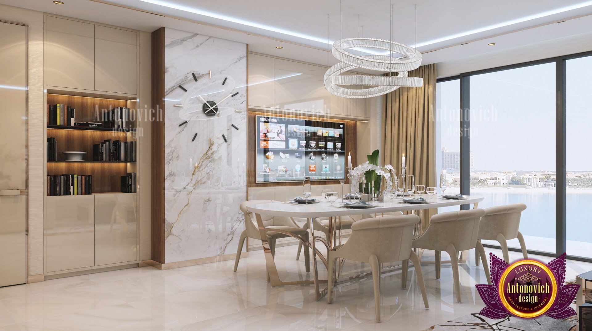 للحفاظ على أناقة التصميم، دمج فريقنا المحترف الذهب والأبيض بعناية. النغمات الداكنة تبرز فاخرة بجانب الأبيض، ويعطي التناغم الناتج ستايل داخلي فاخر متوازن. أثاث ومواد فاخرة اختيرت لتدعم الفكرة وتضيف عمقًا مرئيًا، وهنا يتضح كيف أن تنسيق ألوان البني والذهبي يخلق تباينًا راقيًا. التصميم يبرز في كل زاوية ويُظهر تصميم غرفة طعام باللون البني بمظهر مترف ومريح. تخطيط أنيق وتنسيق صحيح بين القطع والمواد يمنح المساحة حضورًا فخمًا. لمتابعة أمثلة مختلفة للتخطيط الاحترافي، اطلع على تصميم مكتب دراماتيكي، ولأفكار النسيج والستائر تحقق من أفكار الستائر الحديثة.