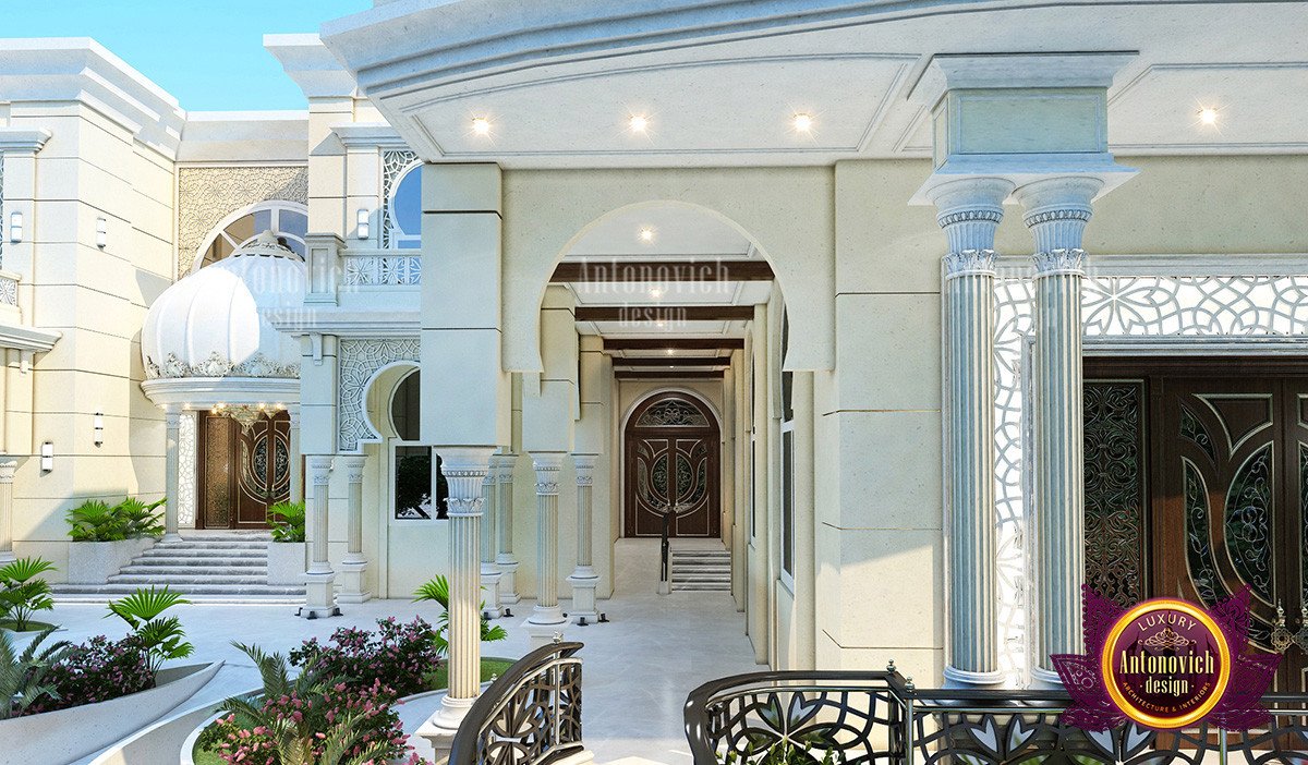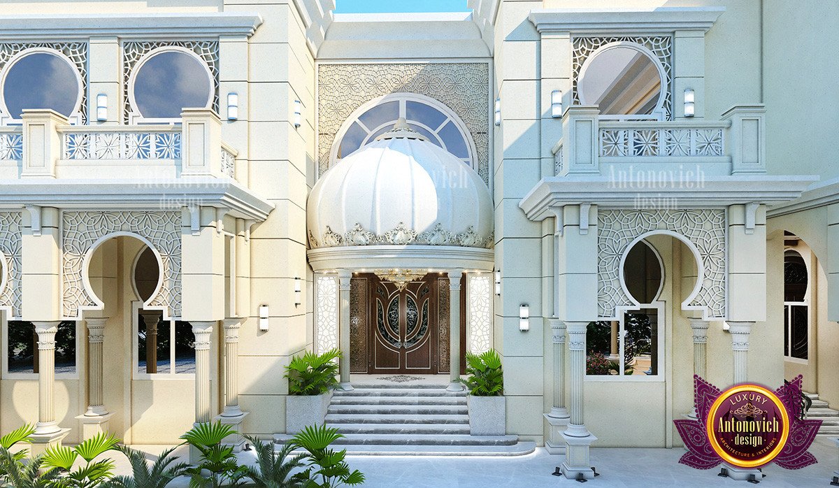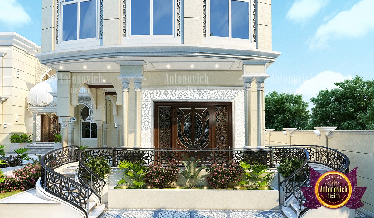 في هذا التصميم الخارجي، تمنح الواجهة المستوحاة من القصور الانطباع الفخم المطلوب. استُلِهم العمل من التصاميم الكلاسيكية الإسلامية، وضمن أنطونوفيتش ديزاين (Antonovich Design) تم عرض كل تفصيل بعناية. هذا النهج يتقاطع مع مشاريعنا في تصميم المساجد الفاخرة. مواد الواجهات الفاخرة والتشطيبات الدقيقة تجعل كل عنصر يساهم في مشهد عام متكامل. نحن نقدّم تصميم واجهات المنازل بخبرة عالمية، ونسعى لدمج الطراز الكلاسيكي والحديث في الواجهات لتحقيق توازن بين الفخامة والراحة. اطلع على مثالنا: مشروع سكني في الهند.