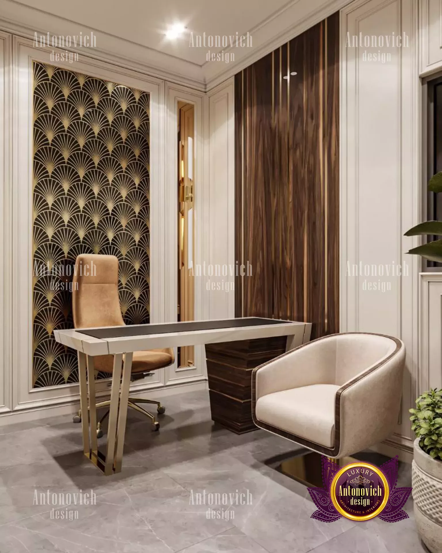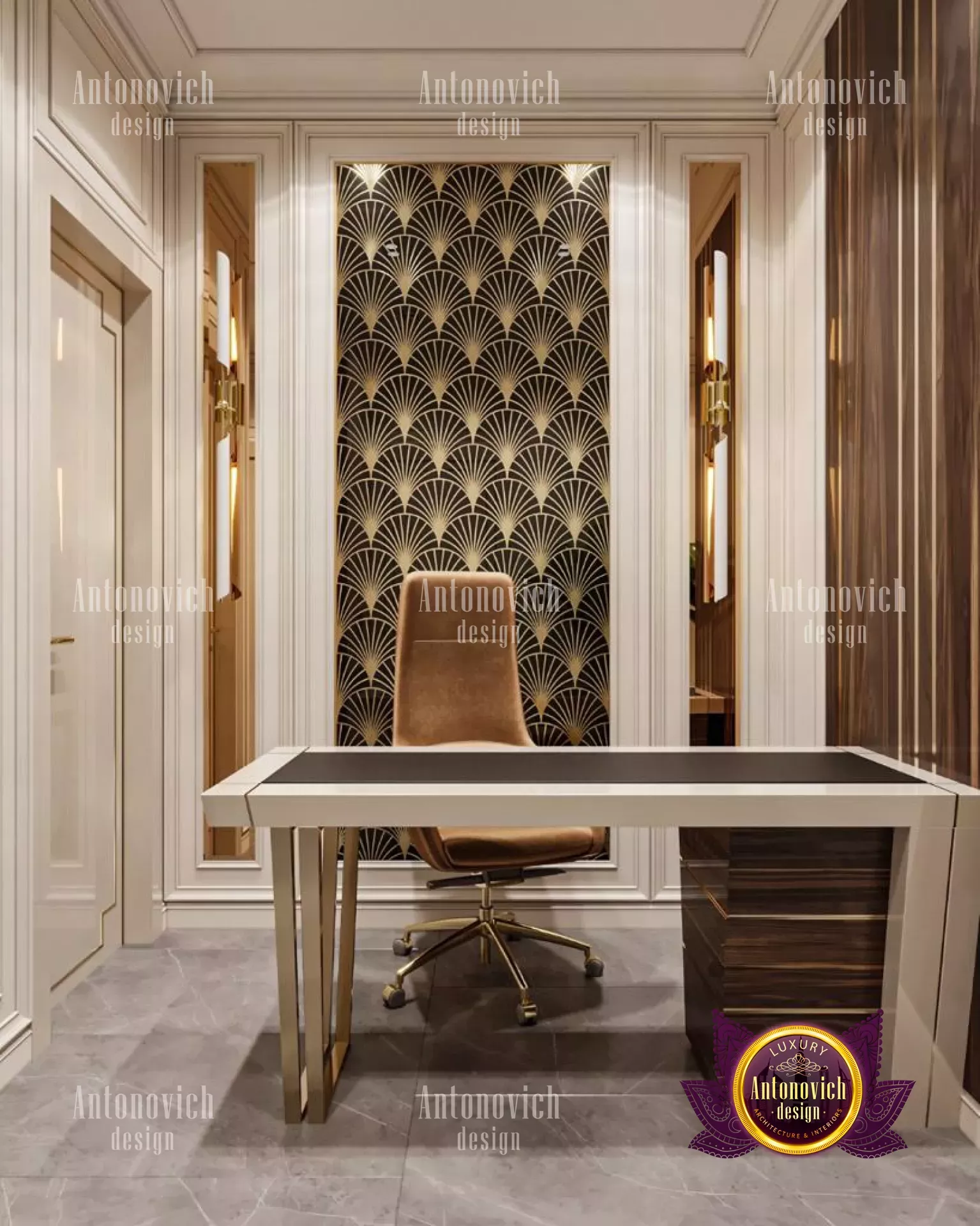 - يمكن لأنطونوفيتش ديزاين أن تساعدك في خطة تصميمك. إذا أردت أجواء مميزة وأنيقة، فهذا هو خيار تصميم مكتب منزلي فاخر بطابع معاصر.