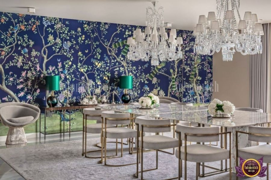 لاستخراج تصميم جدار مميز، يمكن استخدام ورق الجدران منفرداً أو بالاقتران مع الجص الزخرفي، الألواح الناعمة، والرخام — نهج شائع في تصميم المخططات الفاخرة. ويشمل ذلك تصميم مكتب فاخر في دبي. كما يحدد ورق الجدران نغمة المساحات العامة الواسعة، مثل ردهة فندق فاخرة. لكل غرفة شخصية فريدة تحكمها غالباً اختيار الورق، وهذا الاختيار مناسب لتصميم غرفة النوم الرئيسية. Elite wallpaper من استوديو التصميم تمنح منزلك لمسة فاخرة مع إحساس بالراحة.