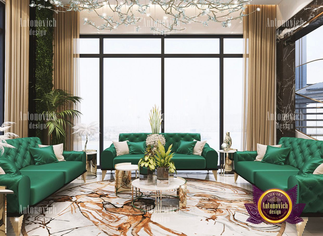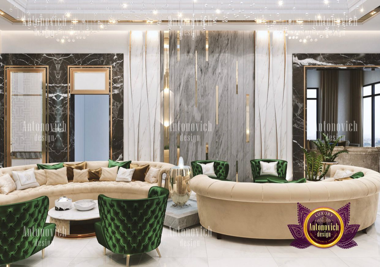 تصميم الفيلا داخل أبوظبي من أنطونوفيتش ديزاين يظهر جمالاً ورُقياً. من العناصر البارزة في هذا التصميم مرور الجدران المزخرفة واللوحات الفنية الجذّابة. يجمع المزج بين الأخضر والإضاءة الدافئة لمسة فاخرة على ديكور الفيلا. بصفتنا أحد أبرز مكاتب التصميم الداخلي المودرن لفيلا أبوظبي، حوّلنا المساحات الواسعة إلى بيئات عصرية تنضح بالفخامة. تم اختيار الألوان بعناية — الذهبي، الأزرق، والمحايد — لتعزيز هالة العظمة والرفاهية. النوافذ الزجاجية الكبيرة تفتح المساحات الداخلية؛ انظر كيف تُحوِّل النوافذ الزجاجية الضخمة صالات المعيشة. الألوان الراقية والتفاصيل الكلاسيكية توفر توازناً زمنياً وأناقة دائمة. وتُعطى الحمامات طابعاً خاصاً عبر تصميم حمام فاخر يتماشى مع بقية التشطيبات.
