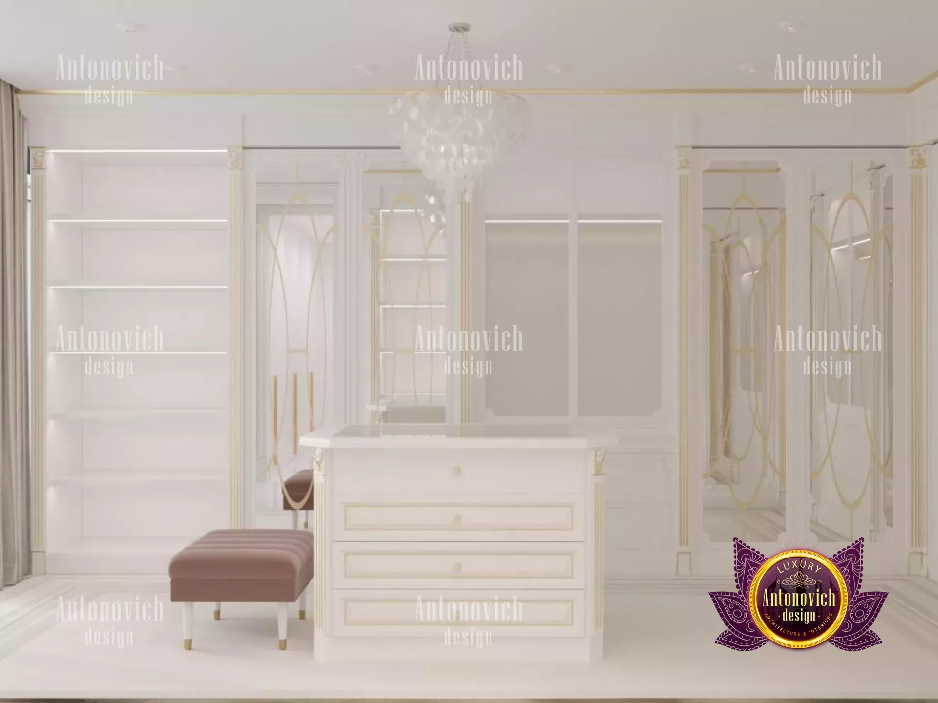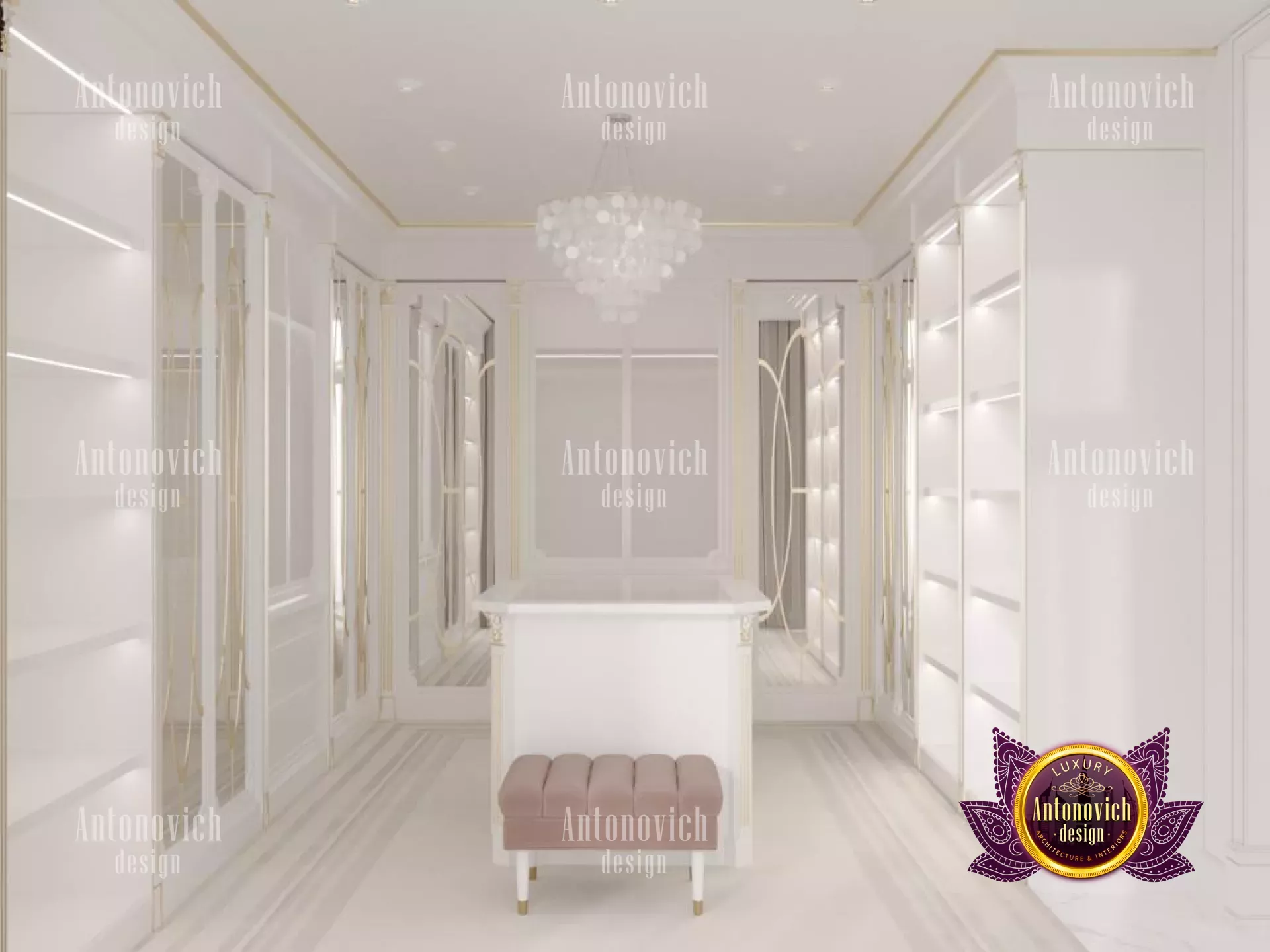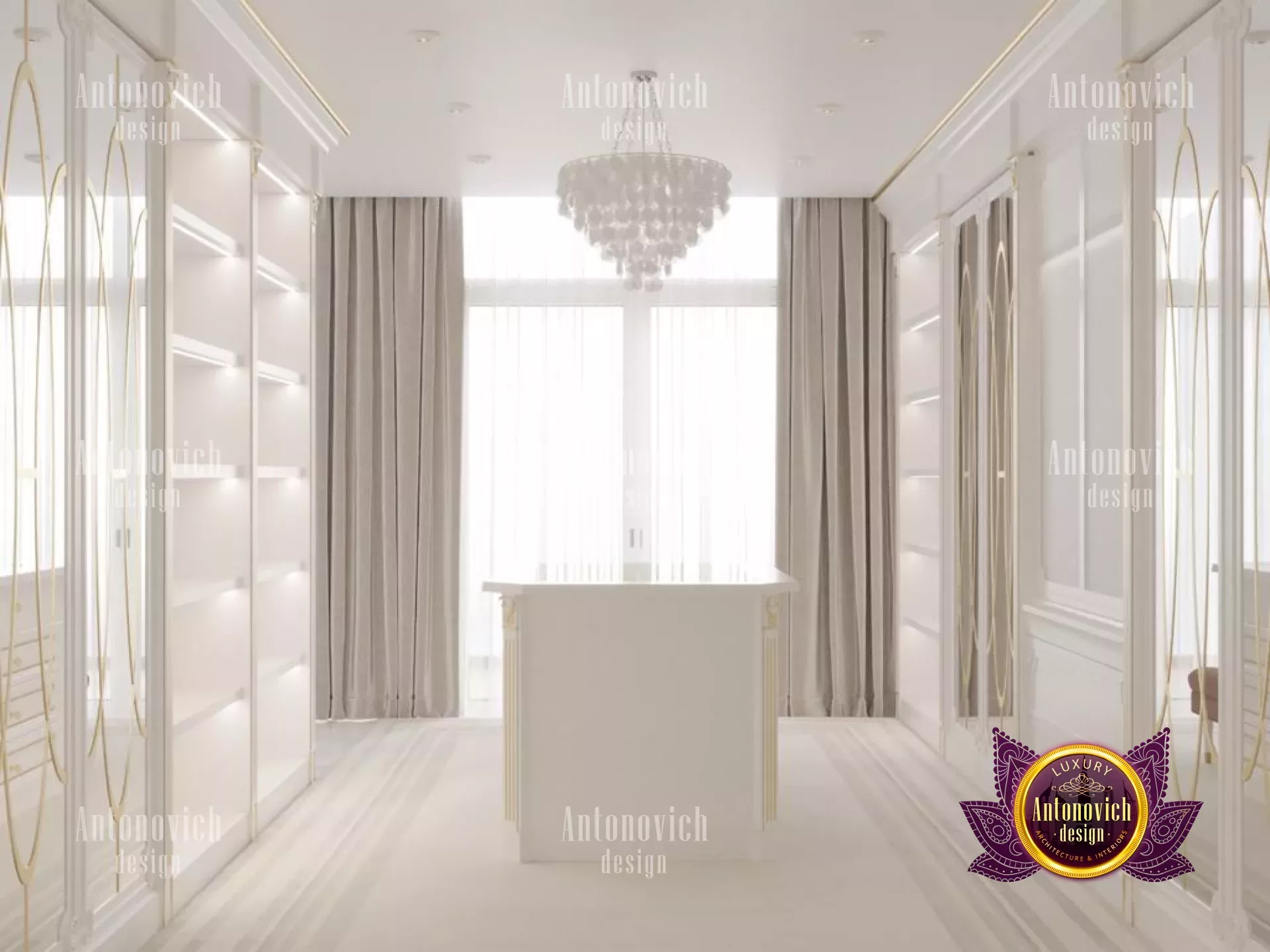 هل تبحث عن تصميم داخلي لأفضل غرفة ملابس مفتوحة؟ هذا التصميم الأبيض لغرفة ملابس فاخرة مناسب لك! لوحة الألوان بالذهب الناعم مع البياض العذب تخلق أجواءً راقية. النقوش ذهبية والجدران بلون أبيض ناعم، ما يعزز الطابع العام للديكور الداخلي. تناسق اللون يصل إلى الخزائن، ما يجعله مناسباً لأي تصميم غرفة ملابس فاخرة. يضم هذا التصميم الراقي رفوفاً وخزائن مبهرة وتشطيبات رائعة مناسبة لـ تصميم المنزل الراقي. الطاولة مصممة بعناية، والمقاعد واسعة مما يمنحك مساحة مريحة للارتداء، مع لمسات من أثاث إيطالي فاخر. للمساحات الصغيرة، اطلع على أفكار غرفة ملابس صغيرة فاخرة. تصميم هذا المكان الفاخر يتضمن إضاءة متقنة؛ الثريا تضفي انطباع الفخامة، والمصابيح مُصممة بعناية لتعزيز أجواء الراحة في التصميم الداخلي لغرفة الملابس. للمساحات العائلية، اطلع على تصميم غرف الأطفال المبتكر. هذا هو التصميم الداخلي الفاخر الذي يلامس الطموح! اندَهِش بهذه الغرفة الفاخرة المصممة لأصحاب الذوق الرفيع. يعد هذا التصميم واحداً من أبرز مشاريع أنطونوفيتش ديزاين (Antonovich Design)؛ المساحة واسعة لدرجة أنها تشعر وكأنها منزل مستقل وتستدعي ذكرى تصميم فيلا فاخرة في الرياض، ولمشروعات أخرى في العاصمة راجع مصممي غرفة المعيشة بالرياض.