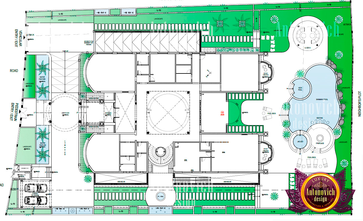 أهمّية الواجهة في التصميم تتجاوز الجمال فقط. ولهذا، تسعى أنطونوفيتش ديزاين لأن تمتلك واجهة منزلية جميلة. للتميّز في الحي، تُستخدم أحياناً أشكال هندسية حادة وألوان جريئة في تصميم الواجهات. تعكس مثل هذه التصاميم الابتكار. كما يمكن تحقيق الوضوح والبساطة من خلال مخطط واجهة سليم. لمطابقة الخارج مع الداخل، انظر تصميم غرفة تبديل فاخرة. ولا تنسَ مراعاة أساسيات غرفة الطعام الفاخرة في دبي عند تنسيق المساحات.