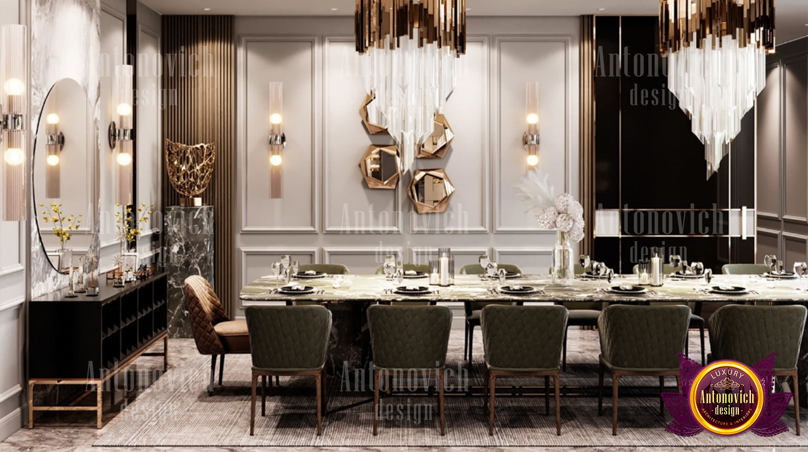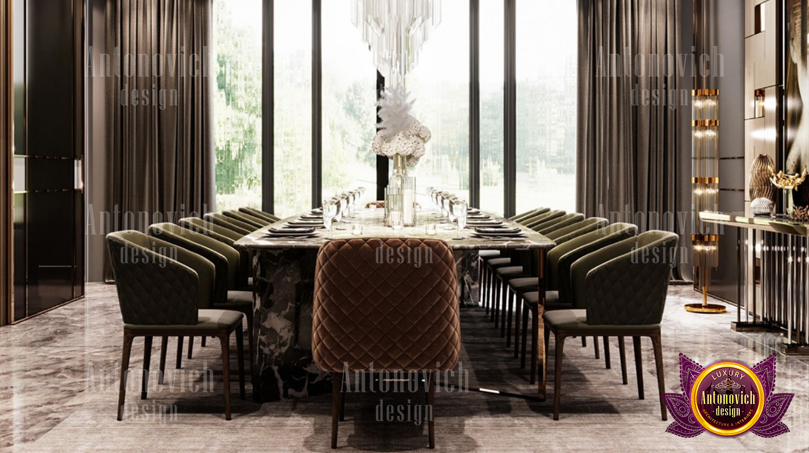 لا داعي للبحث أكثر؛ أنطونوفيتش ديزاين (Antonovich Design) تقدم كل التفاصيل التي تحتاجها لتحقيق حلمك بتصميم داخلي فاخر. هذا التصميم الراقي هو مثالٌ على تصميم غرفة طعام مودرن وتصميم غرفة طعام في دبي يتميز بأثاث فاخر في دبي يجعل كل قطعة، من الكراسي إلى الطاولة، تحفة فنية. بعد تغير أسلوب الحياة خلال الجائحة، أصبح البقاء في المنزل يتطلب بيئة مريحة وجميلة. في هذا التصميم الداخلي الحديث من أنطونوفيتش ديزاين، تظهر التفاصيل والتخطيط بشكل مترف ومبهر. إن تحقيق شقة بهذا الطراز يتطلب شركة موهوبة، وأنطونوفيتش ديزاين نفذت تصميم شقة أنيقة للغاية. شاهد مشروع تشيكا أورلاندو - الأوبرا كمثال على تنفيذ متقن. السقف المرتفع مع ستائر مصممة للشقق الفاخرة يكمّل هذا التصميم الداخلي العصري. المزج بين التفاصيل الفاخرة والتصاميم الراقية والأثاث الفخم يمنح هذا التصميم طابعًا متميزًا. وللمطبخ، تضيف جزر مطبخ فاخرة لمسة عملية وعصرية.