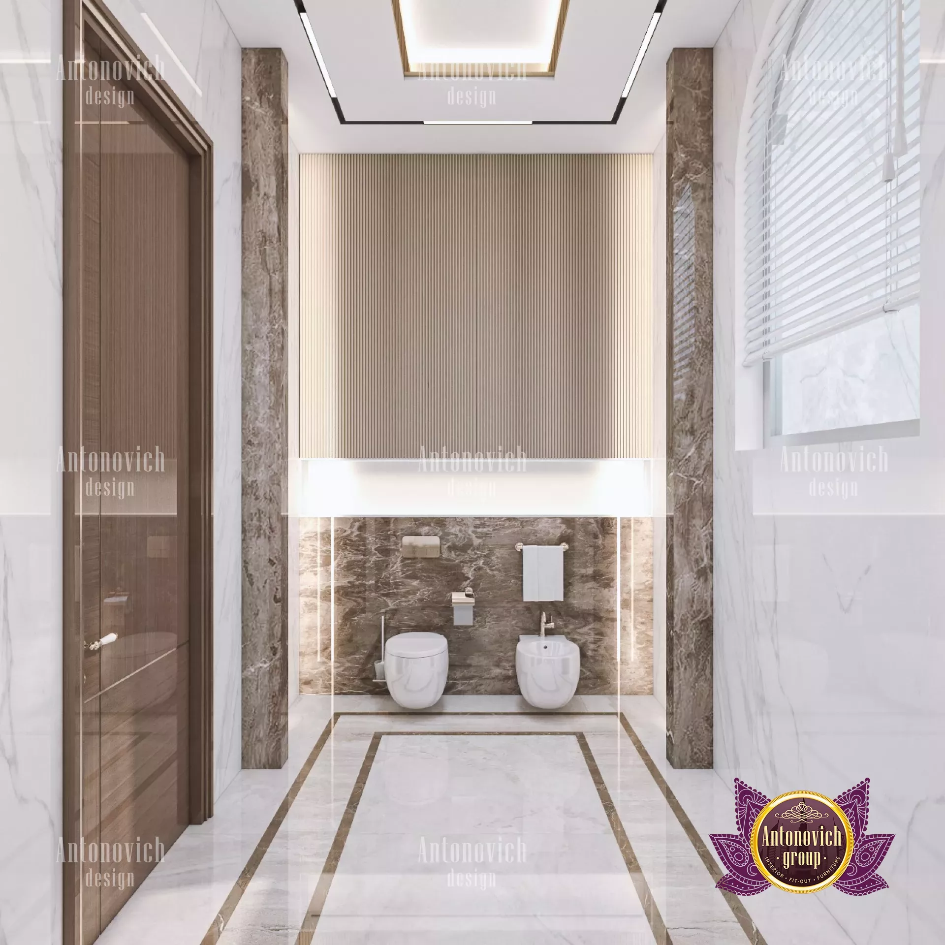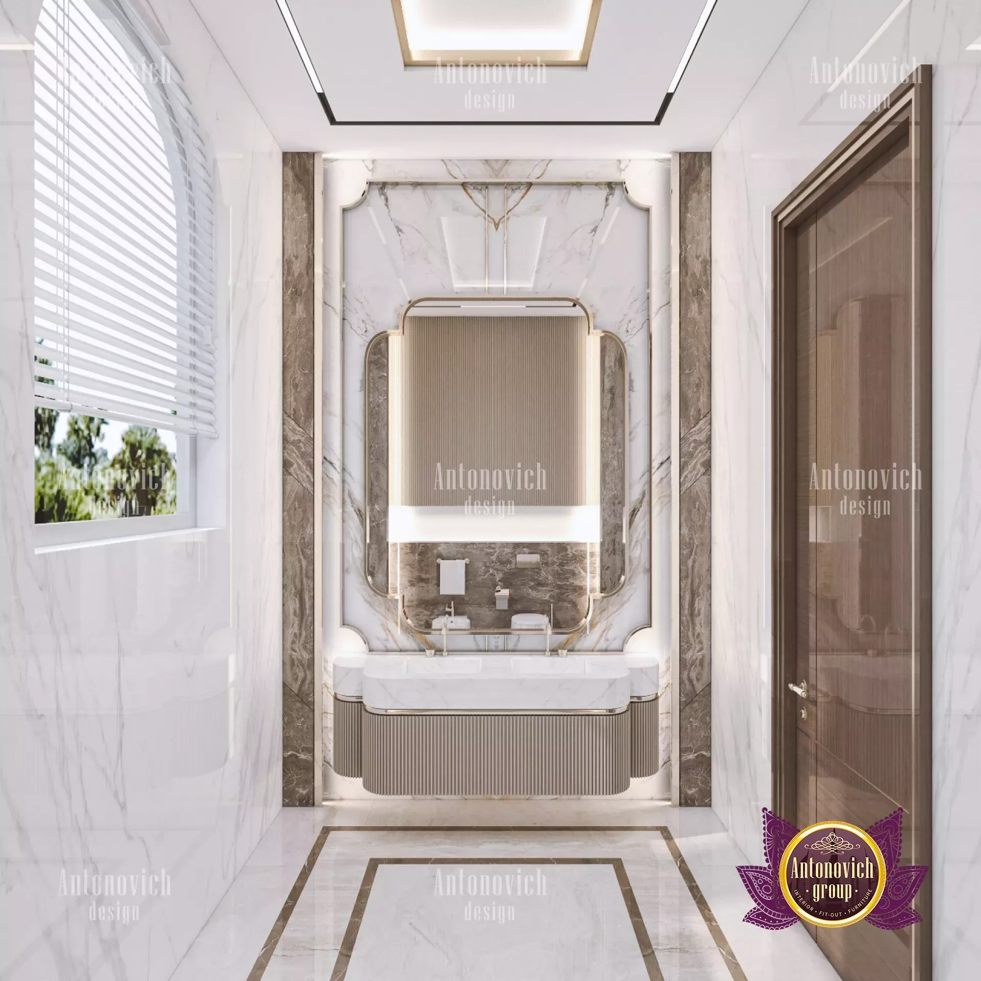 كُن جريئًا إن توافرت المساحة. هذا الحمام الرئيسي في دبي يمتلك حجمًا فائقًا من الفخامة. يبدو كأنه مشهد سينمائي عند وجود بانيو مستقل من الرخام يطل بجانب نافذة كبيرة. لكن تصميم هذا الحمام يتجاوز الحجم؛ يجب أن يتماشى مع بقية المنزل، بما في ذلك تصميم واجهة منزل فخم لضمان أناقة متكاملة. التصميم النظيف والنوافذ تجعل الحمام يبدو أكبر مما هو عليه. توجد عدة نوافذ كبيرة وبعض الحمامات متواضعة في دبي. ومع ذلك، إن كان لديك حمام بنوافذ واسعة فاستثمر المنظر. التشطيبات والمواد أساسية في التصميم؛ فاختيار مواد فاخرة لتشطيبات الحمام يحدد الطابع العام. هنا، خلفية حائط ذات نسيج يشبه الحجر تتباين مع تجهيزات مطلية بالكروم. حتى لو كانت المساحة صغيرة أو لا تمتد النوافذ من الأرض إلى السقف، بعض العناصر الزخرفية تمنح الحمام انطباعًا بالغًا. المواد المناسبة تعطي مظهرًا فاخرًا. اسمح لنفسك بأن تغمر بالفخامة أثناء المشي على بلاط لامع، وسجادة مميزة، وستائر ناعمة مثل الستائر المخملية، أو كما نقول هنا: ستائر مخملية للحمام الفاخر. يؤثر الضوء على أجواء الحمام بطريقتين؛ وجود ضوء طبيعي يُعد رفاهية، بينما إضاءة حمامات فاخرة خافتة موضوعة بعناية حول المساحة قد تمنح تأثيرًا مماثلًا. اطلع على نصائح تصميم حمامات دبي للمزيد من حلول التنفيذ.