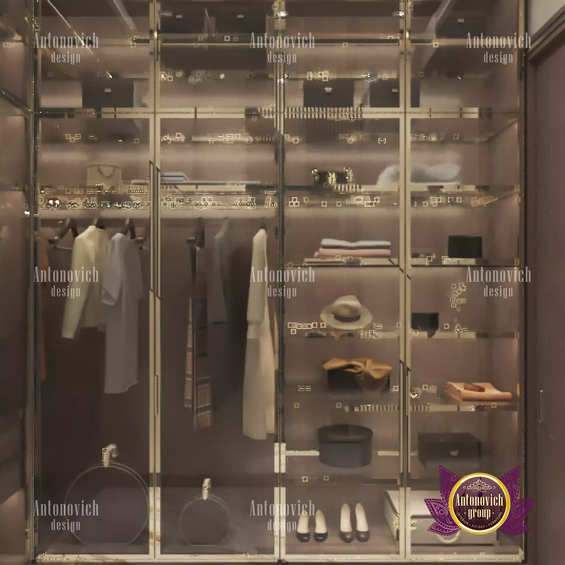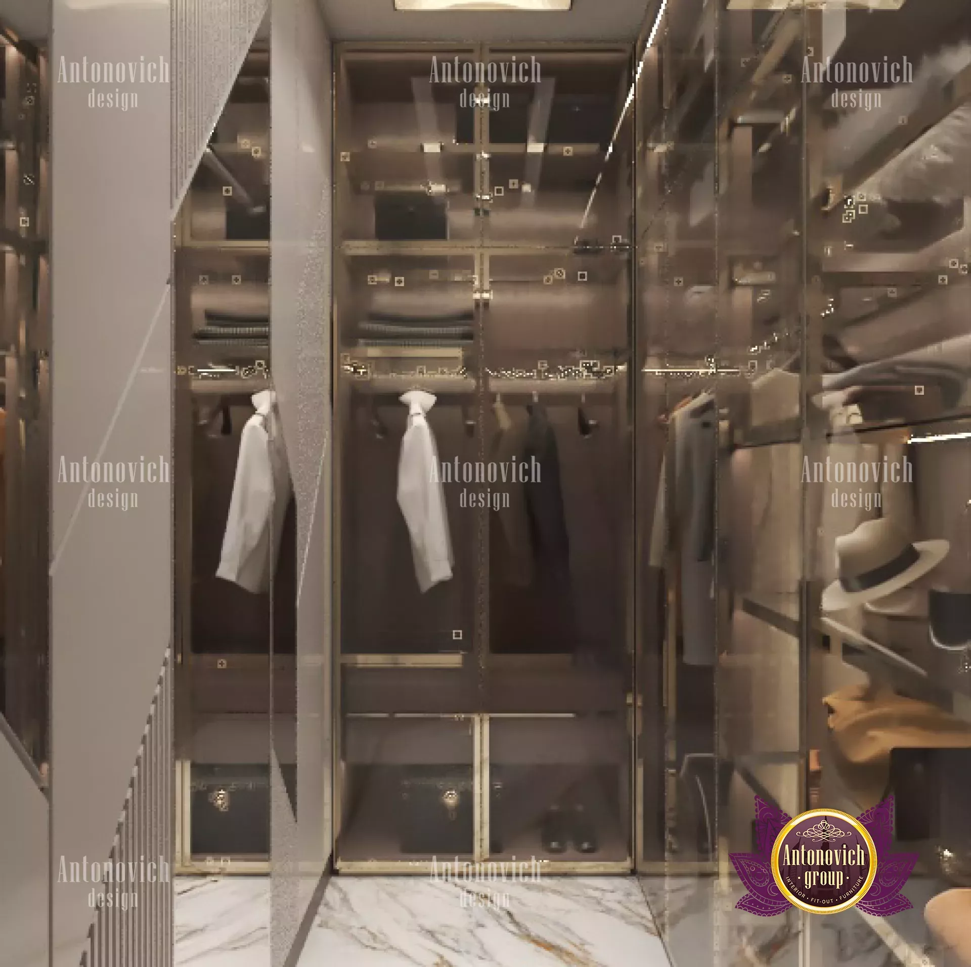 عناصر مثل رفوف وسلال للخزانة، منظمات الأدراج، علاقات مخصصة للأحزمة والريجات والأوشحة، وصناديق منظمة تضيف غاية وتنظيماً لمساحة الخزانة وتجعل ارتداء الملابس أمراً سهلاً وممتعاً. لمظهر متناسق بين الغرف، فكر بمطابقة خزانة ملابسك مع دليل ألوان غرفة النوم الفاخرة ومراعاة اختيار الأرضيات أو تصميم السجاد المناسب.